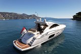 This 40-knot speedster is as much about performance as it is about comfort. A high performance hull belies the space onboard, where accommodation is optimised. Both open and hard top versions are available. And as well as a choice of engines, there's also an option in drive systems. The more compact pod drive saves engine room space enabling an enlarged master suite. Luxury is extended throughout with a large main deck area providing ample space for dining and entertaining. Large sunpads are positioned fore and aft and the garage provides ample storage for tender or jet ski. Down below the saloon and three guest cabins all offer a typically high level of comfort and feature their own entertainment systems.