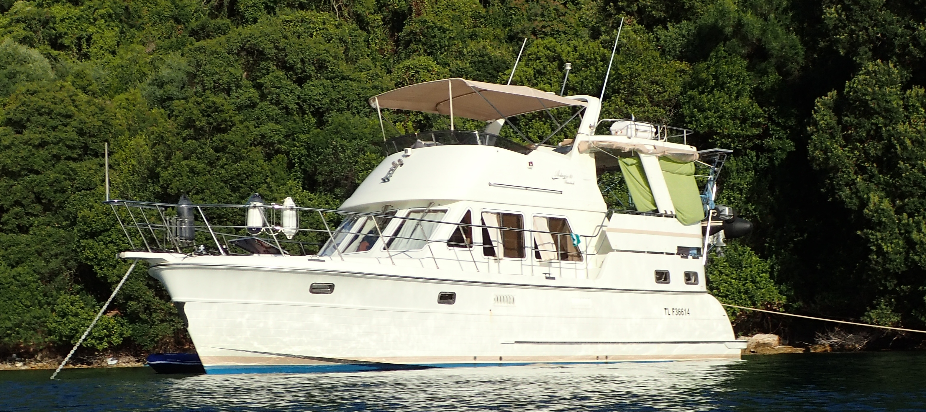 For sale ADAGIO 40 built in 2008. Equipped with a VOLVO PENTA D4 260Hp, she's ready for family cruising : bow thruster, stern thruster, RAYMARINE electronics, dish washer, washing / drying machine, TV, dinghy.