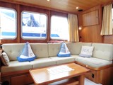 2000 Aquanaut Drifter 1150 - 'Ina May' is in her second ownership since new and has been used exactly for her intended purpose, comfortable cruising along the coast and through inland waterways. Laid out with two cabins, the large aft master with central island bed and the forward guest cabin with offset double. The saloon is spacious and light with access to the large aft deck, both of which offer ample space for relaxing. Both helms have all controls for engine, thrusters and instrumentation. Her inventory includes Yanmar engine, generator, washing machine, induction hob and full electronics suite. Ideal for a couple who like to cruise in comfort.