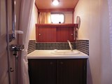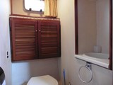 Starboard cubicle with Jabsco electric toilet and basin with mixer tap