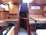 Dining area opposite with two facing bench seats and table, converts to double berth