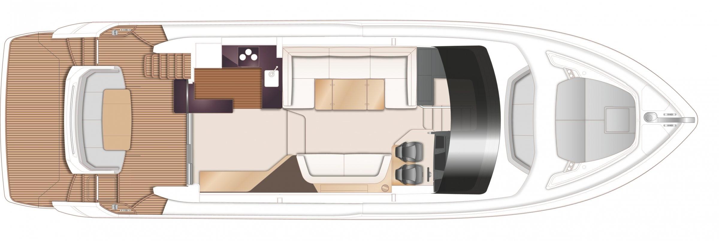 Dual station instrumentation, controls and alarm system including VHF/RT, speed and distance log, echo sounder with alarm and autopilot U-shaped seating area with folding teak table Forward L-shaped seating (converts to sunbed) Radio/MP3 with waterproof speakers Top loading coolbox adjacent to helm Wetbar including sink, stowage and optional electric barbecue Liferaft stowage Console and seat coversLower Helm Position