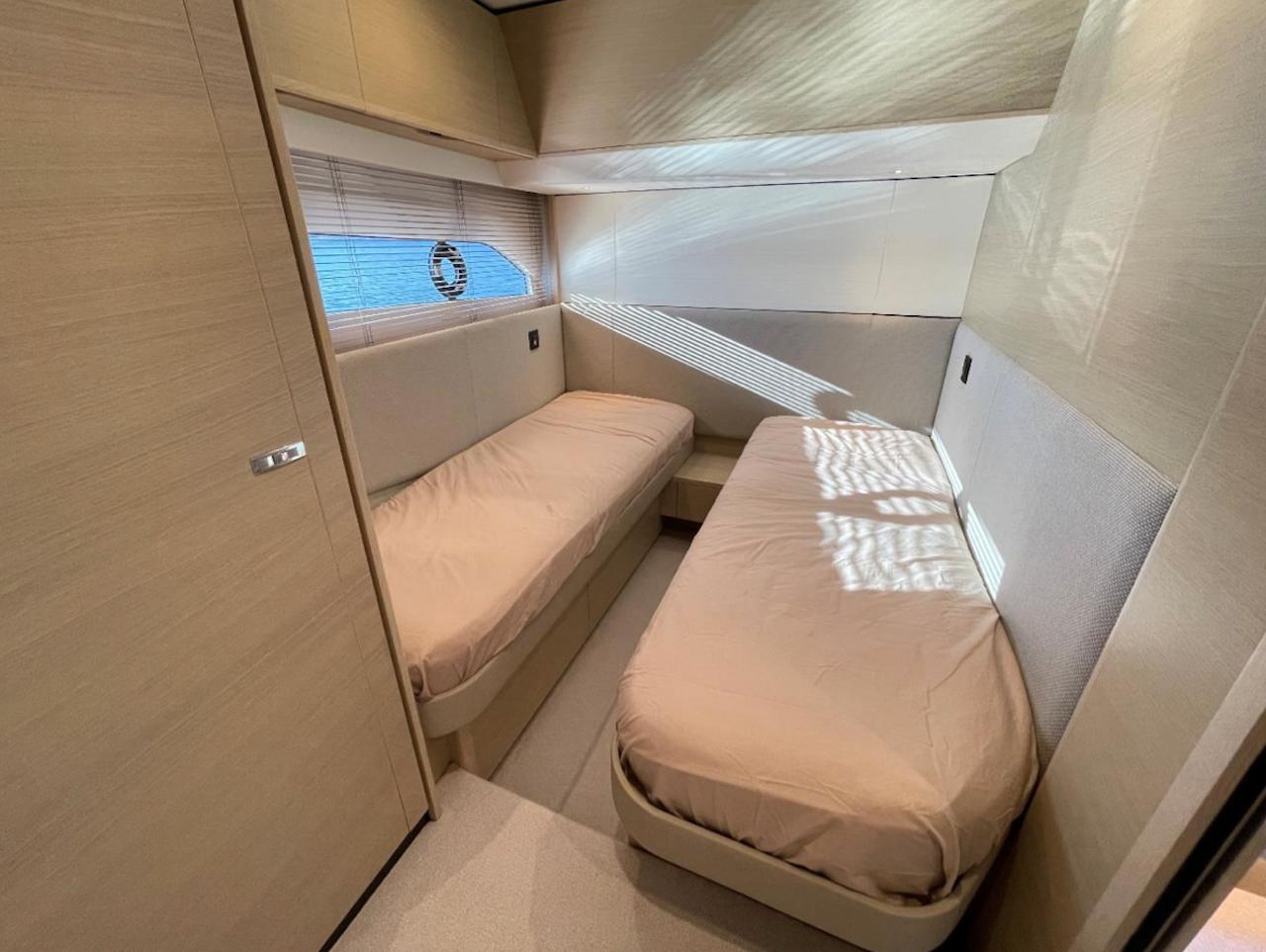 Two single beds with drawers below (with option of sliding berths) Wardrobe with shelves Storage lockers and drawers Overhead and individual berth lights USB connection pointGalley