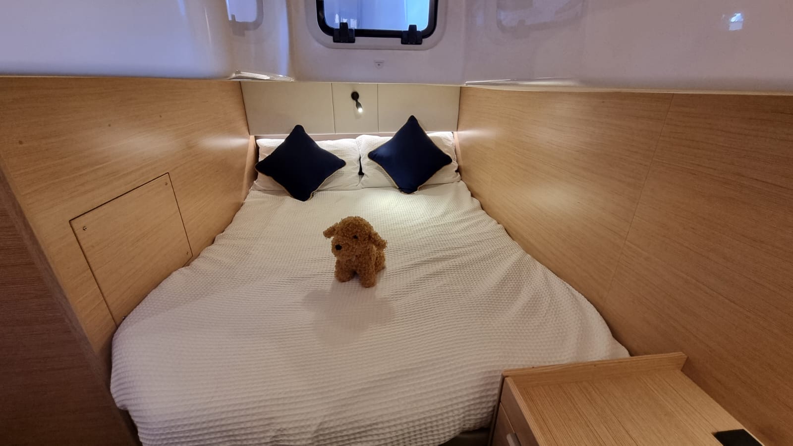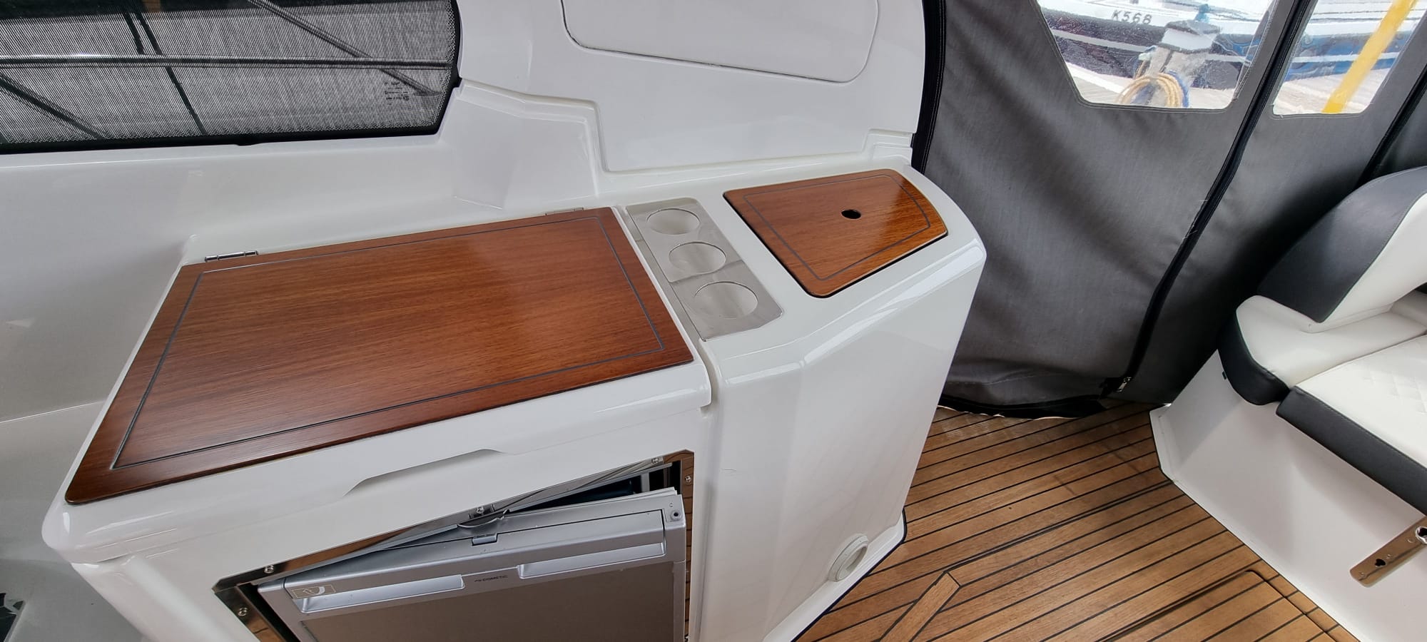 Below deck, the thoughtfully designed interior boasts a modern galley, a cozy saloon, and comfortable sleeping accommodations for up to four, making overnight stays a pleasure. High-quality finishes and smart use of space ensure a welcoming and elegant atmosphere.