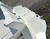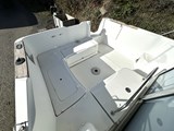 STEERING STATION: (to starboard): Pilot console, 12v socket, glove box, 2 USB sockets, 2 padded pilot seats mounted on slide rails, PVC upholstery, pilot footrests/ engine access trapdoor under pilot seats, battery access trapdoor and ceiling light.