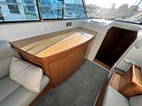 through patio style doors brings you into the self draining cockpit. This has a full teak deck and has the option to