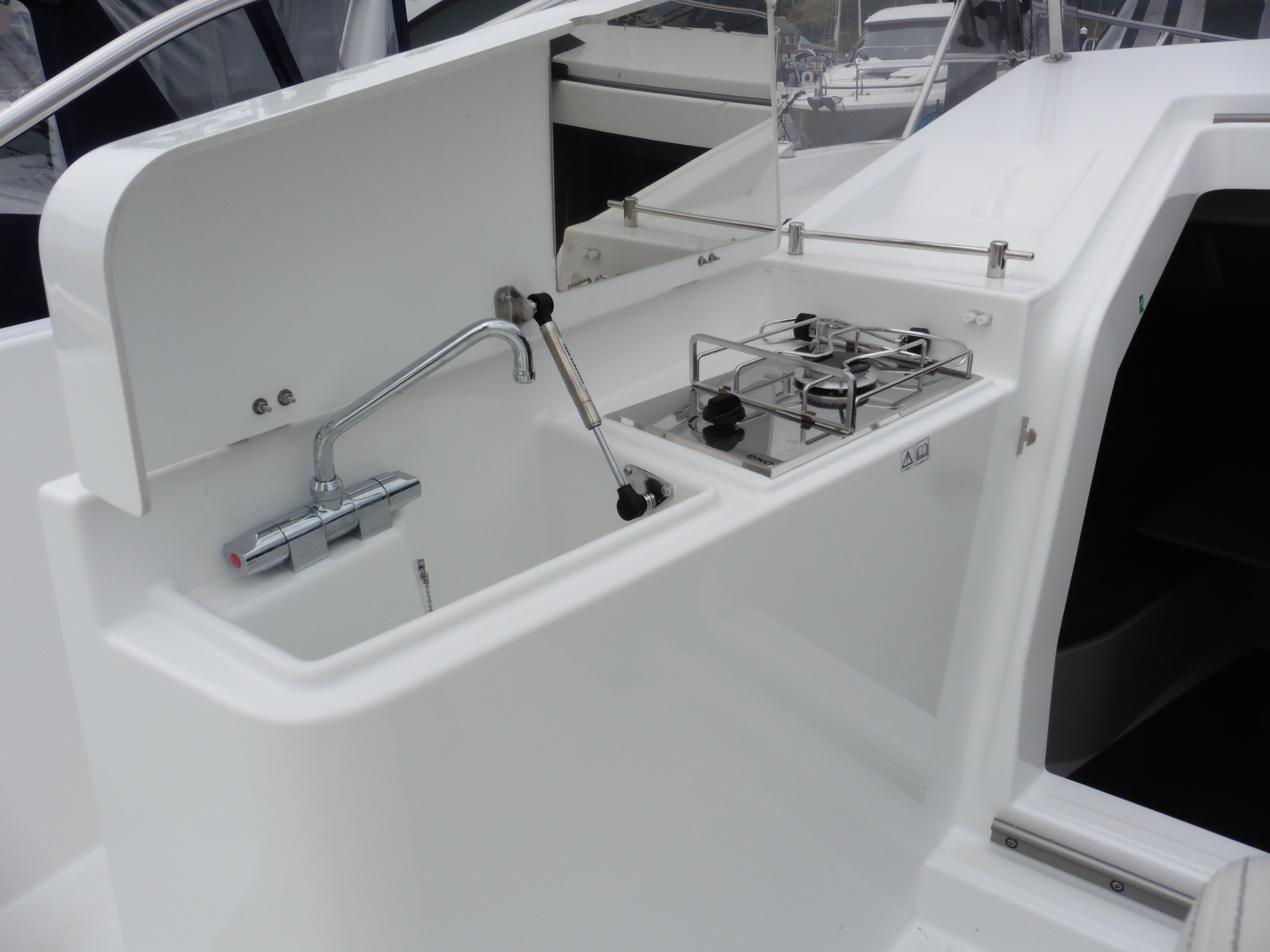 Gas cooker and sink in cockpit