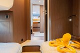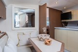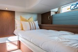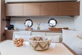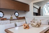 4 person 'L' shaped sofa port side, converts to double berth using saloon table and infill cushion