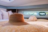 2 panoramic windows with opening portlights, opening deck hatch with mosquito blind