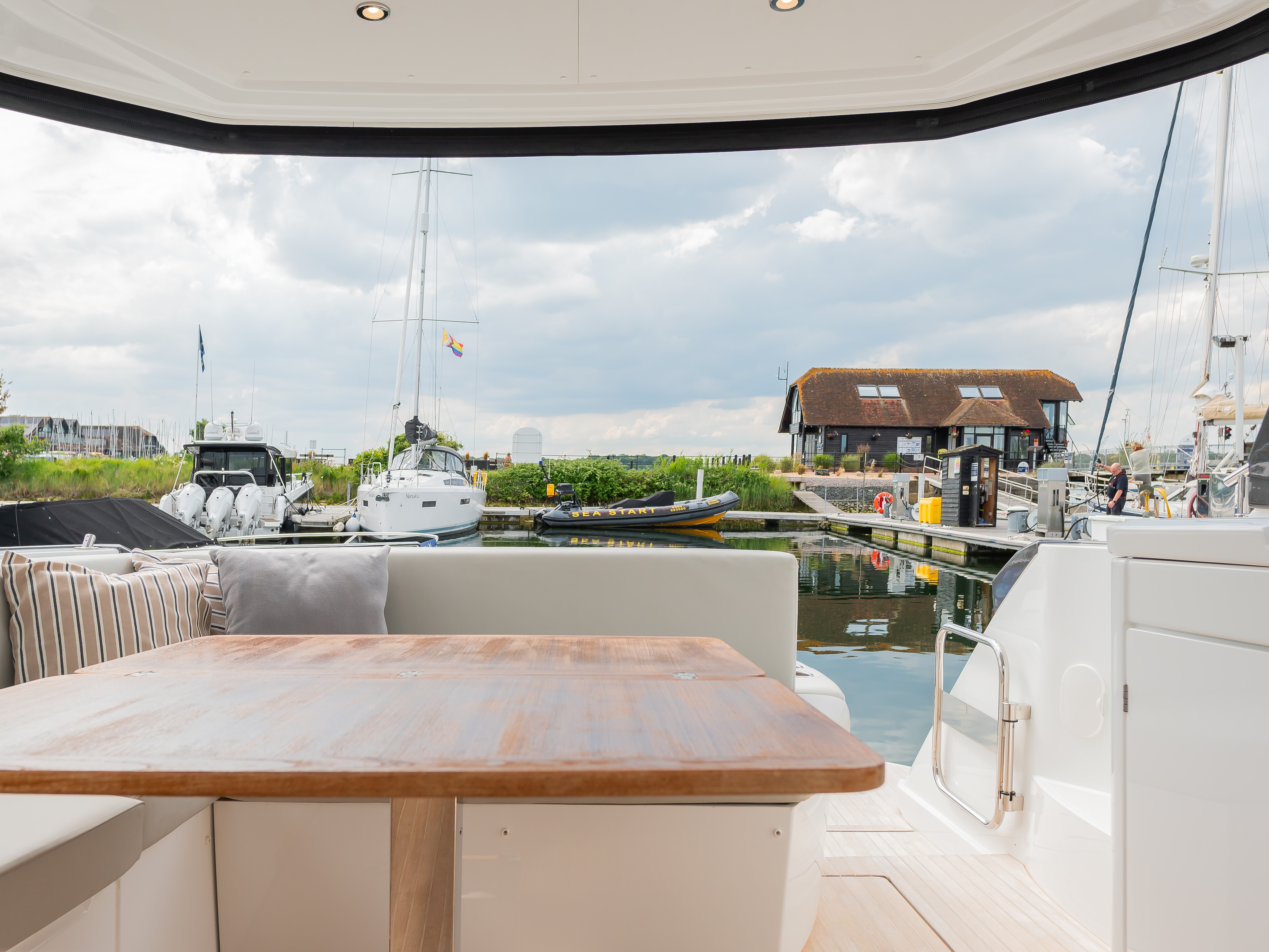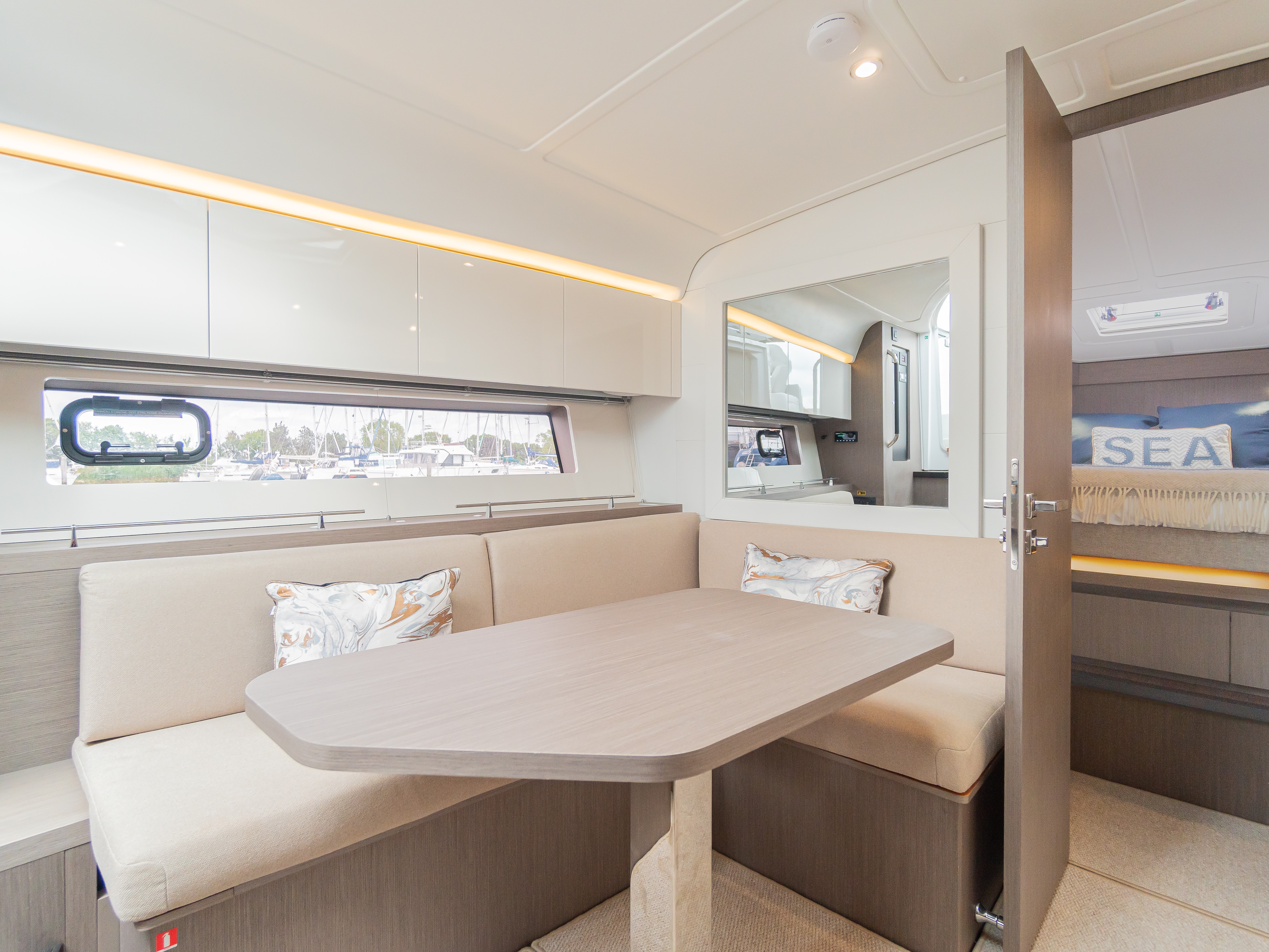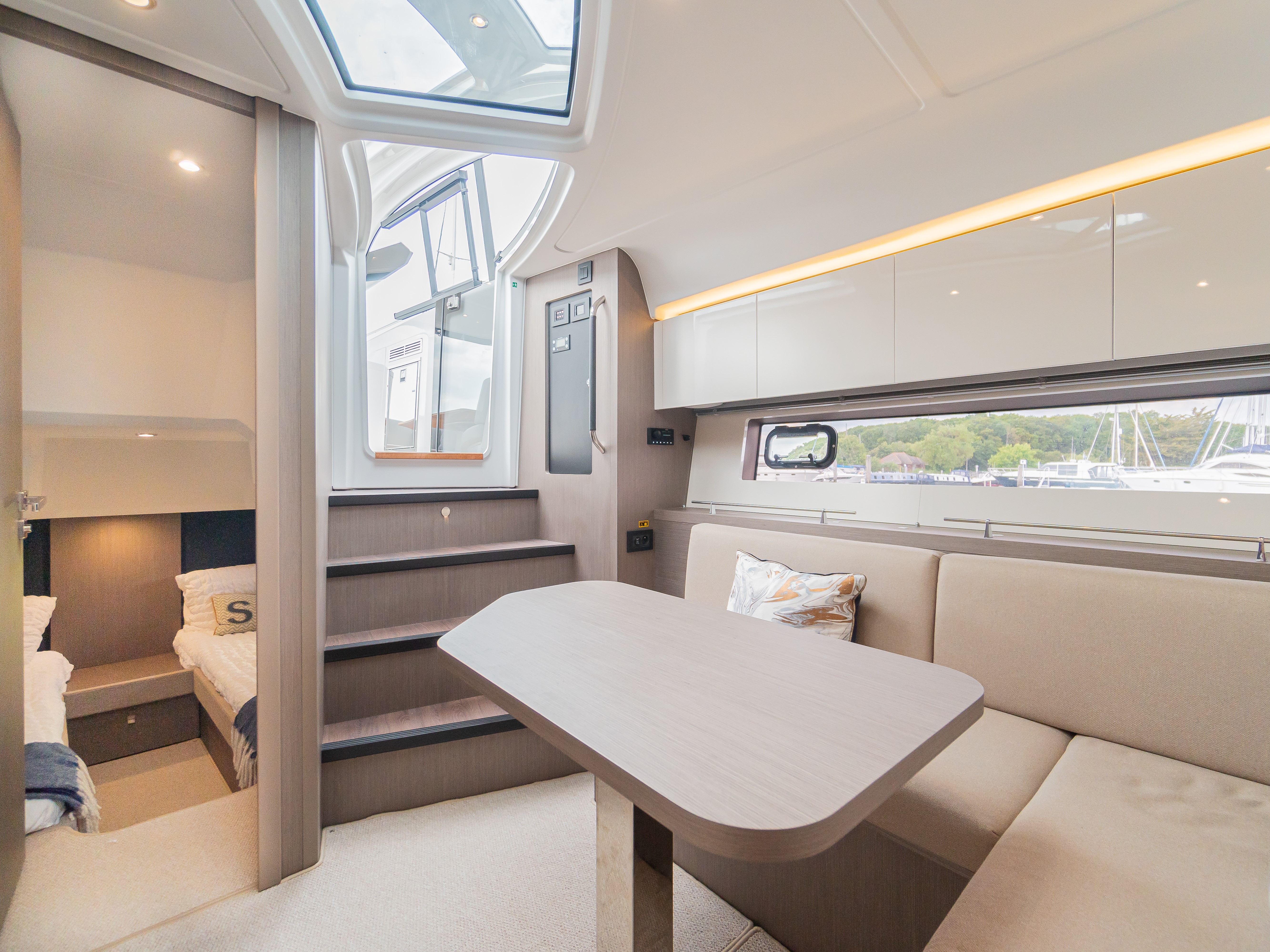 6 person saloon with solid wood cockpit table (convertible to sun pad)