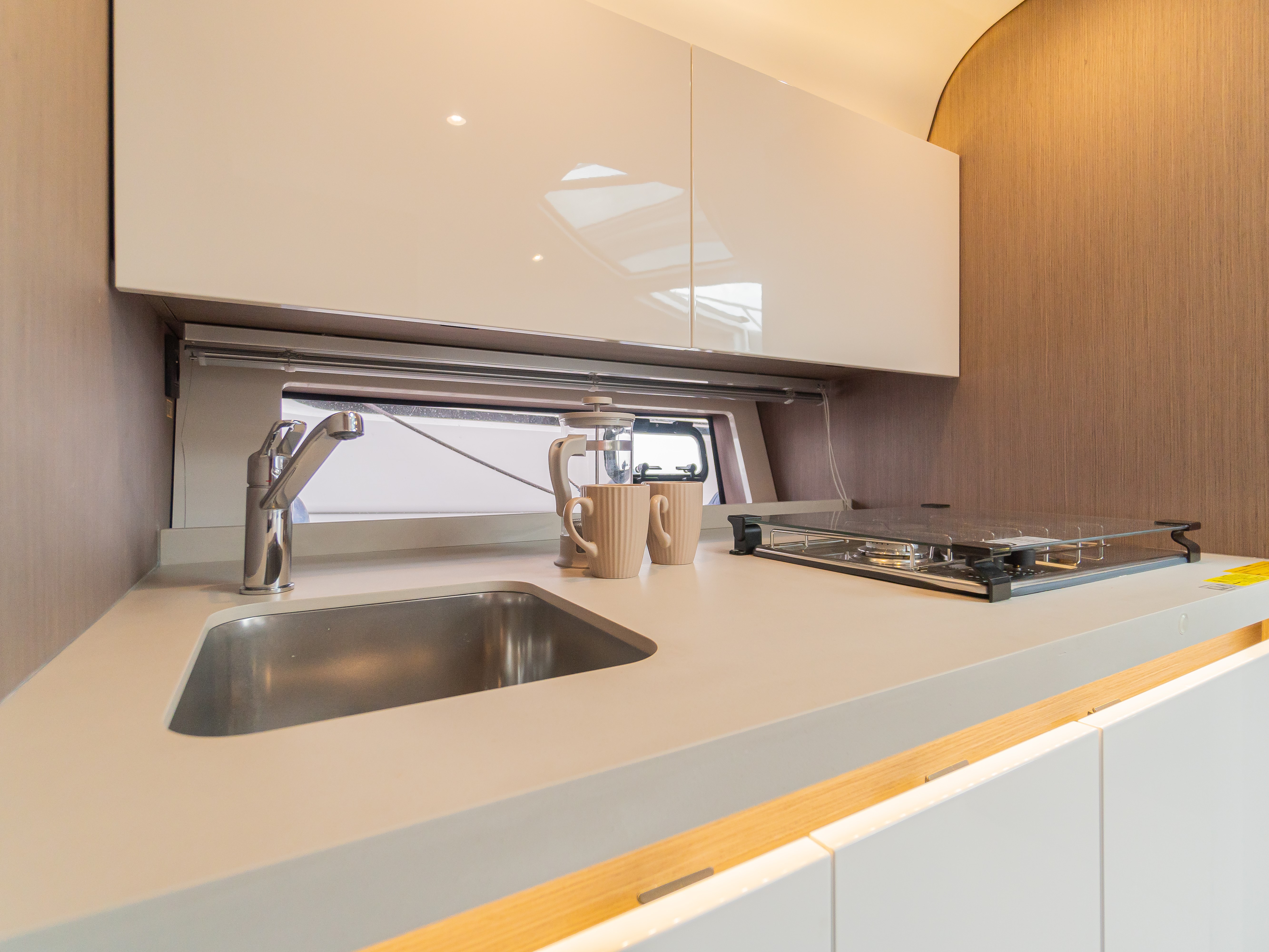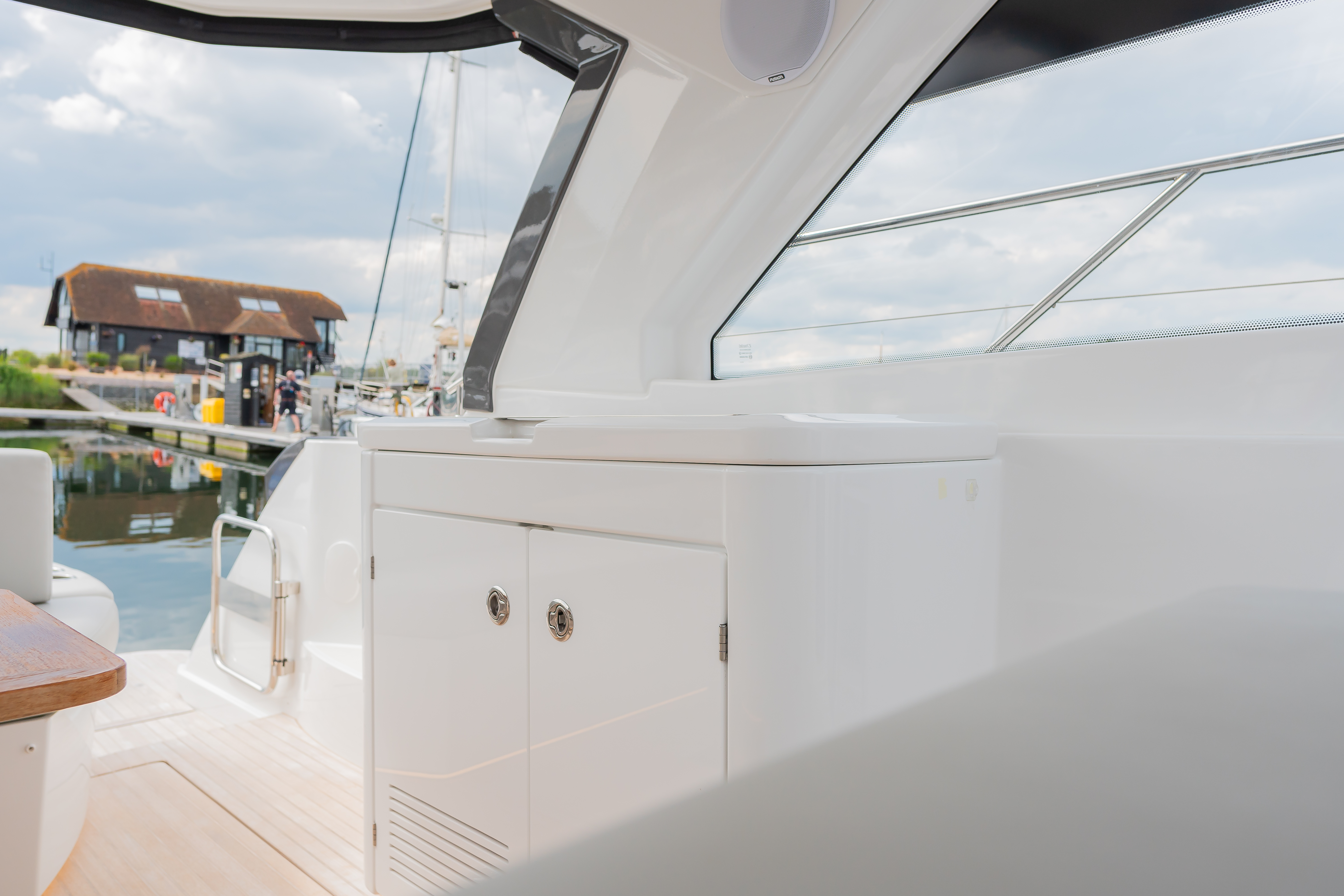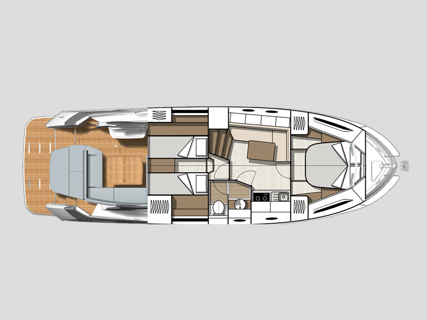 Air Step® technology increases the Gran Turismo 41’s speed and stability, by increasing the volume of air inflow under the hull. She accelerates faster, optimising speeds and reducing fuel consumption. This patent has stood the test of time and offers excellent seakeeping, simpler passage through the waves, linear acceleration and easily handling in the turns.