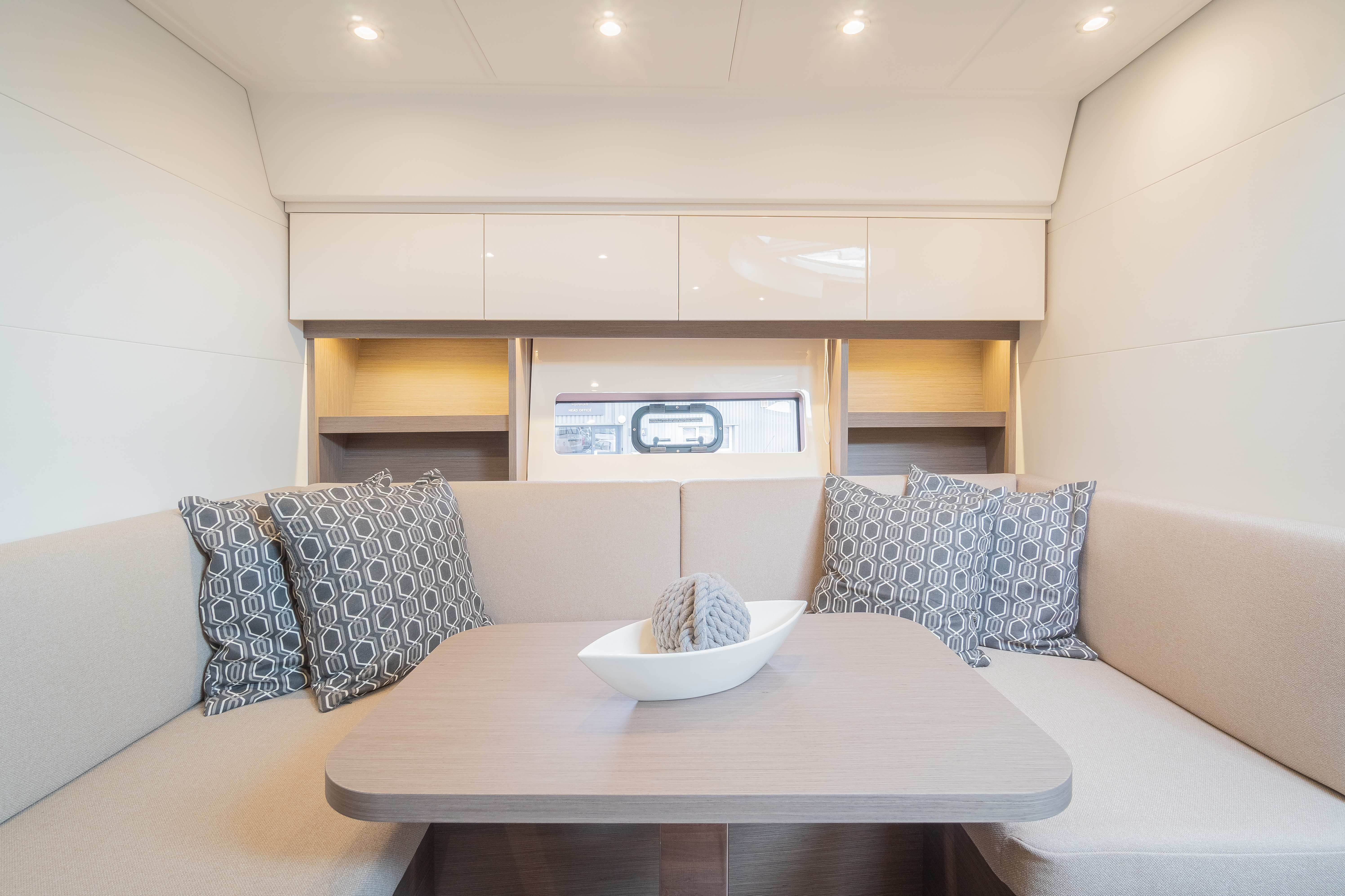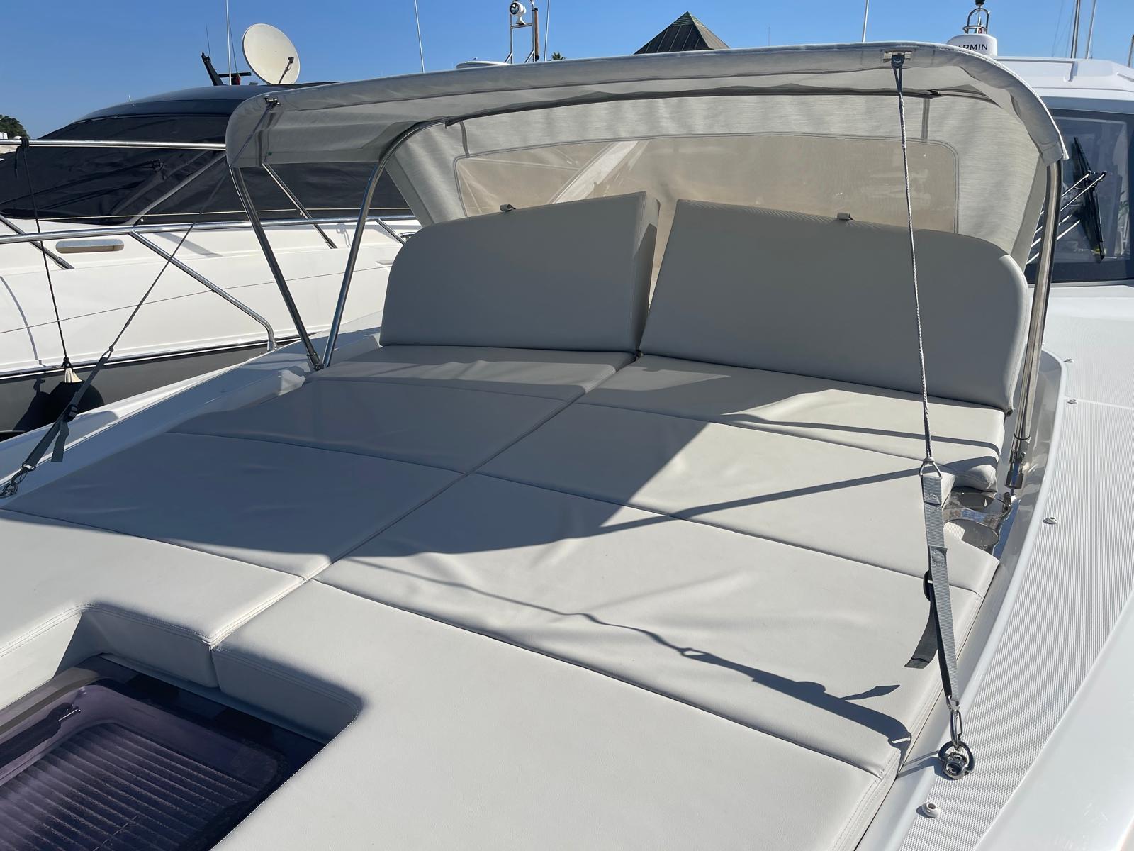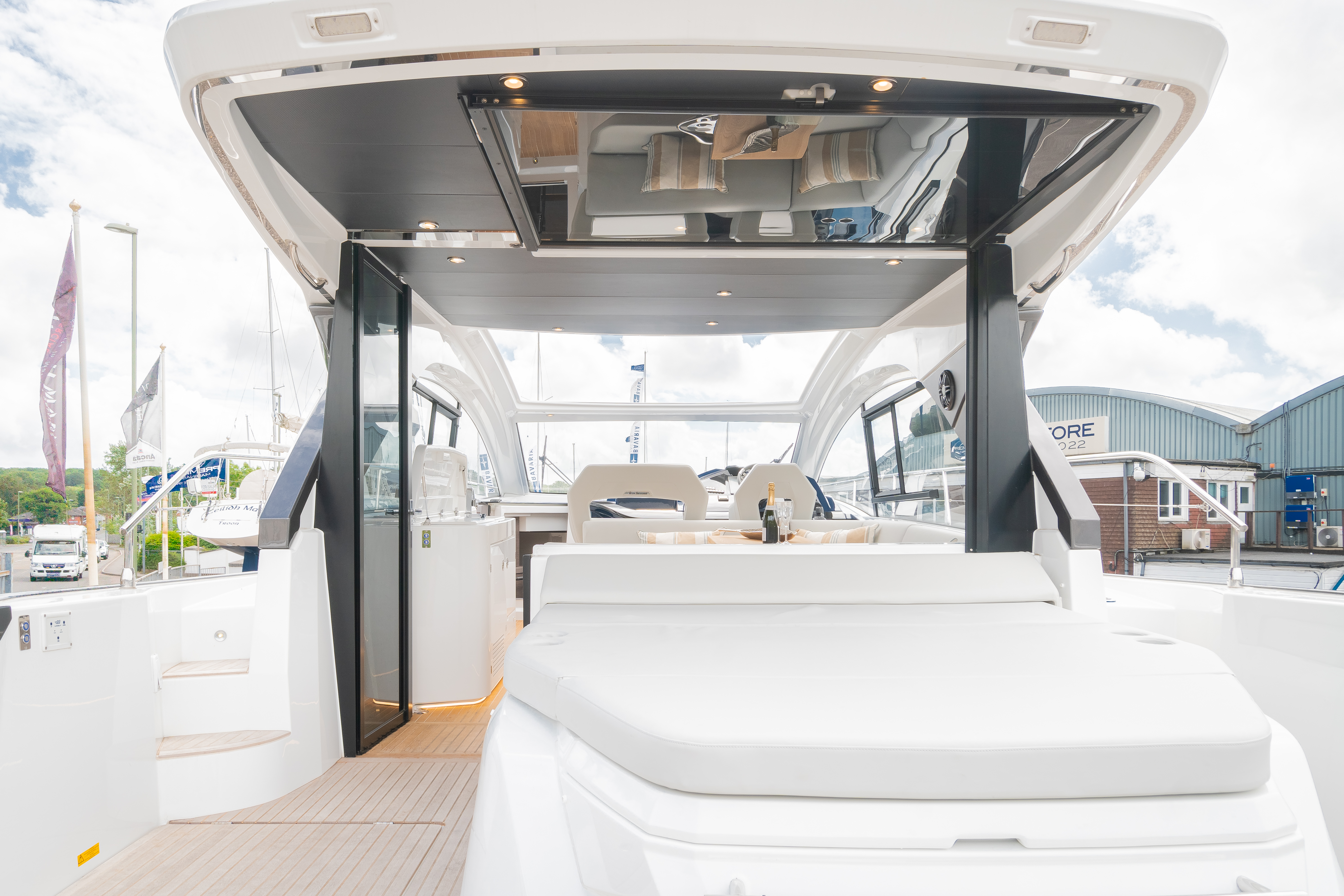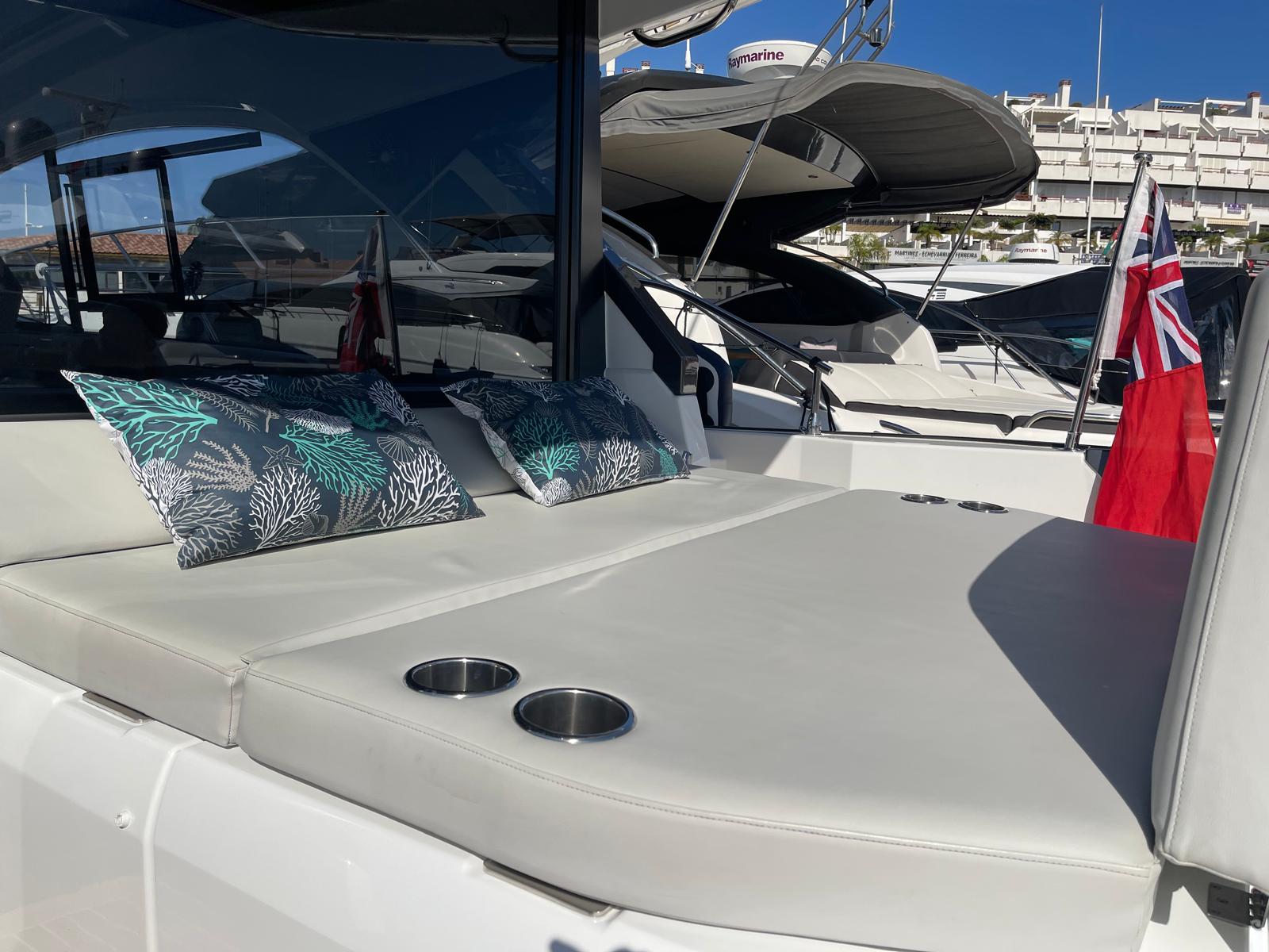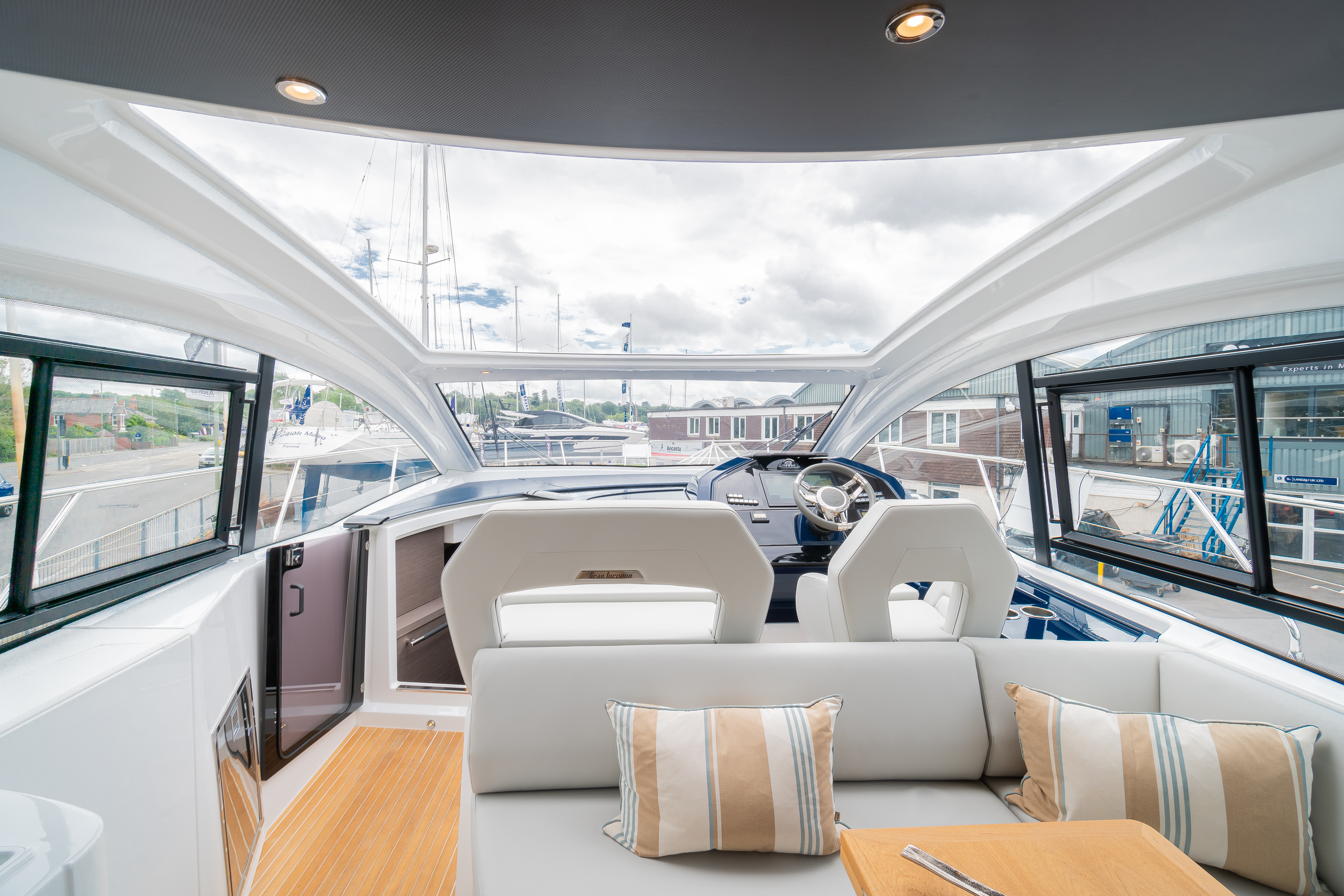 She offers comfortable accommodation for 4 in 2 spacious cabins. A large cockpit area which can be opened or fully enclosed as desired courtesy of her opening hard top, side windows and opening window / door astern. Large sunbathing areas fore and aft make for great entertaining.