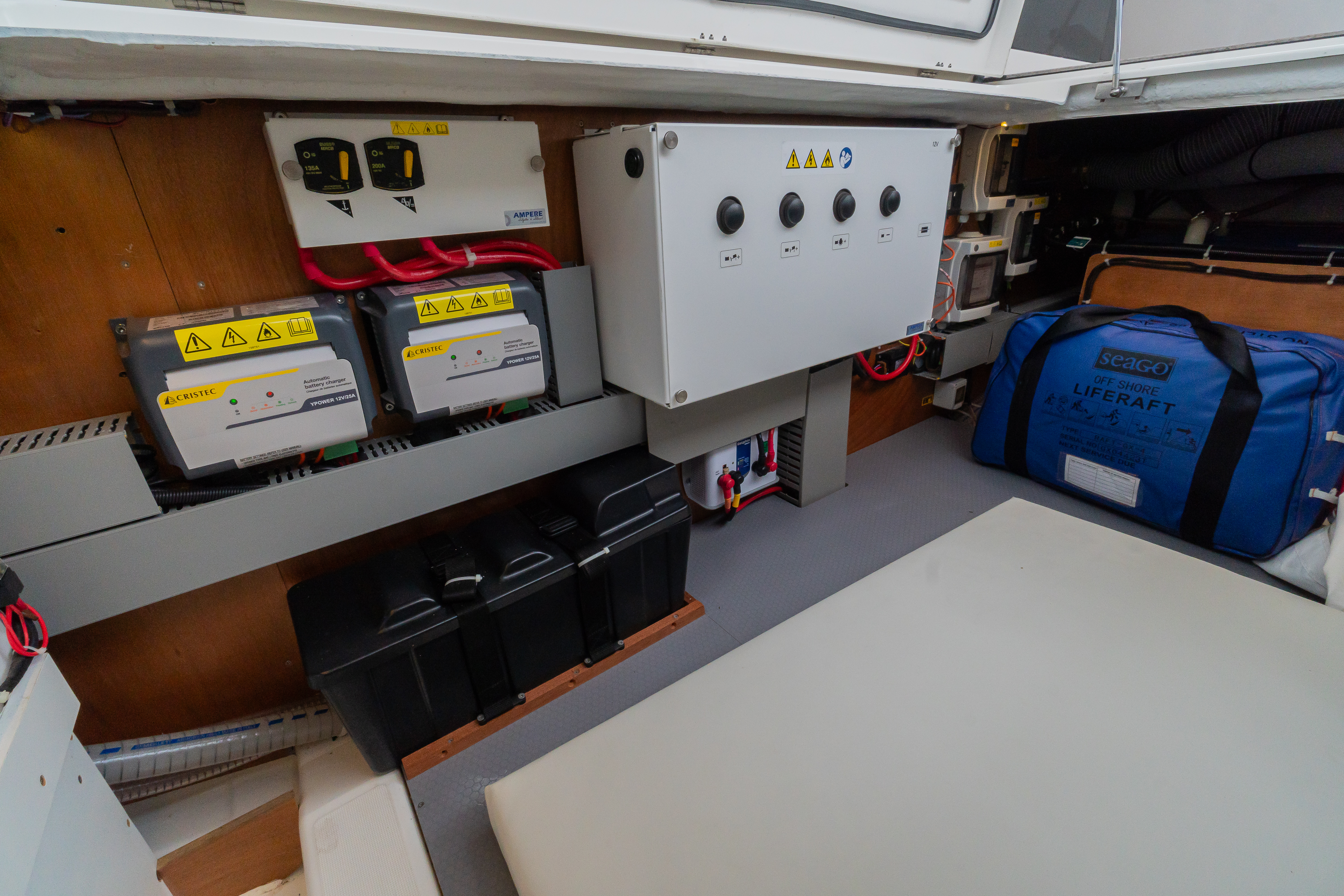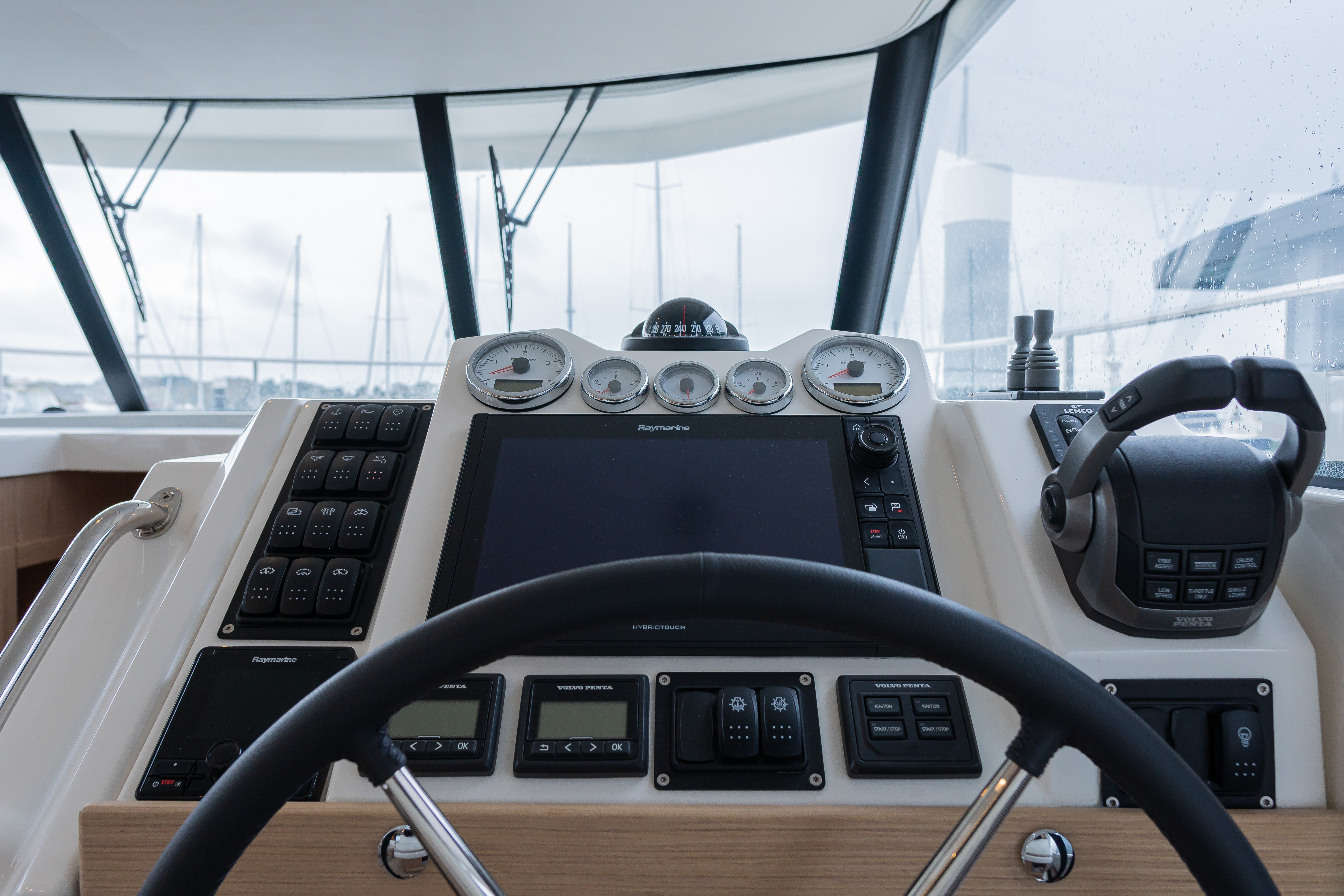 Controls for electric windlass, bow & stern thruster, navigation lights, electric windscreen wipers, fog horn, electric dual engine control.
