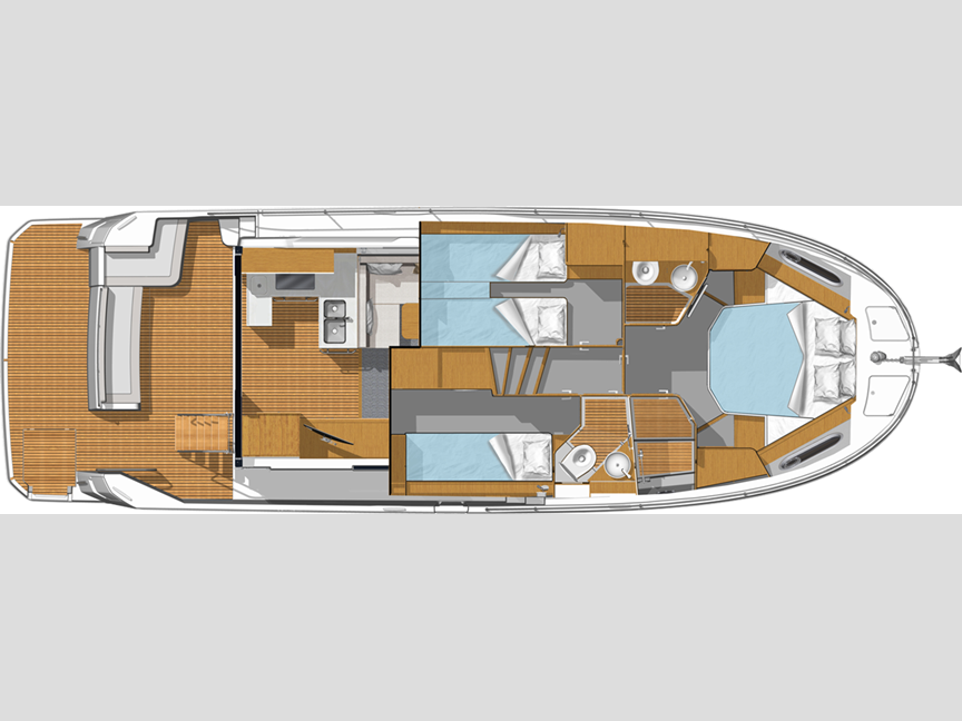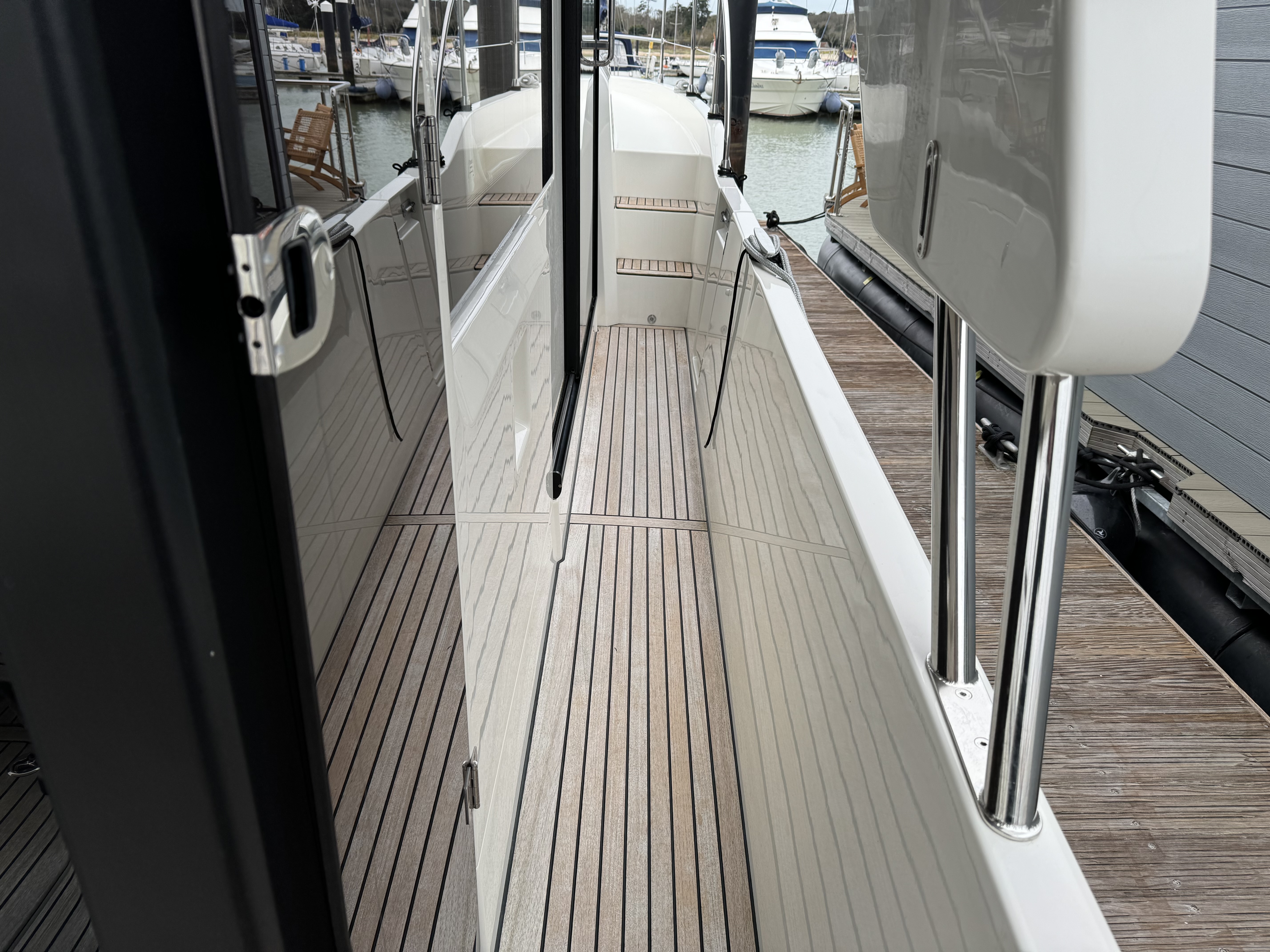 Solid wood slatted cockpit floor, bathing platform and starboard side deck