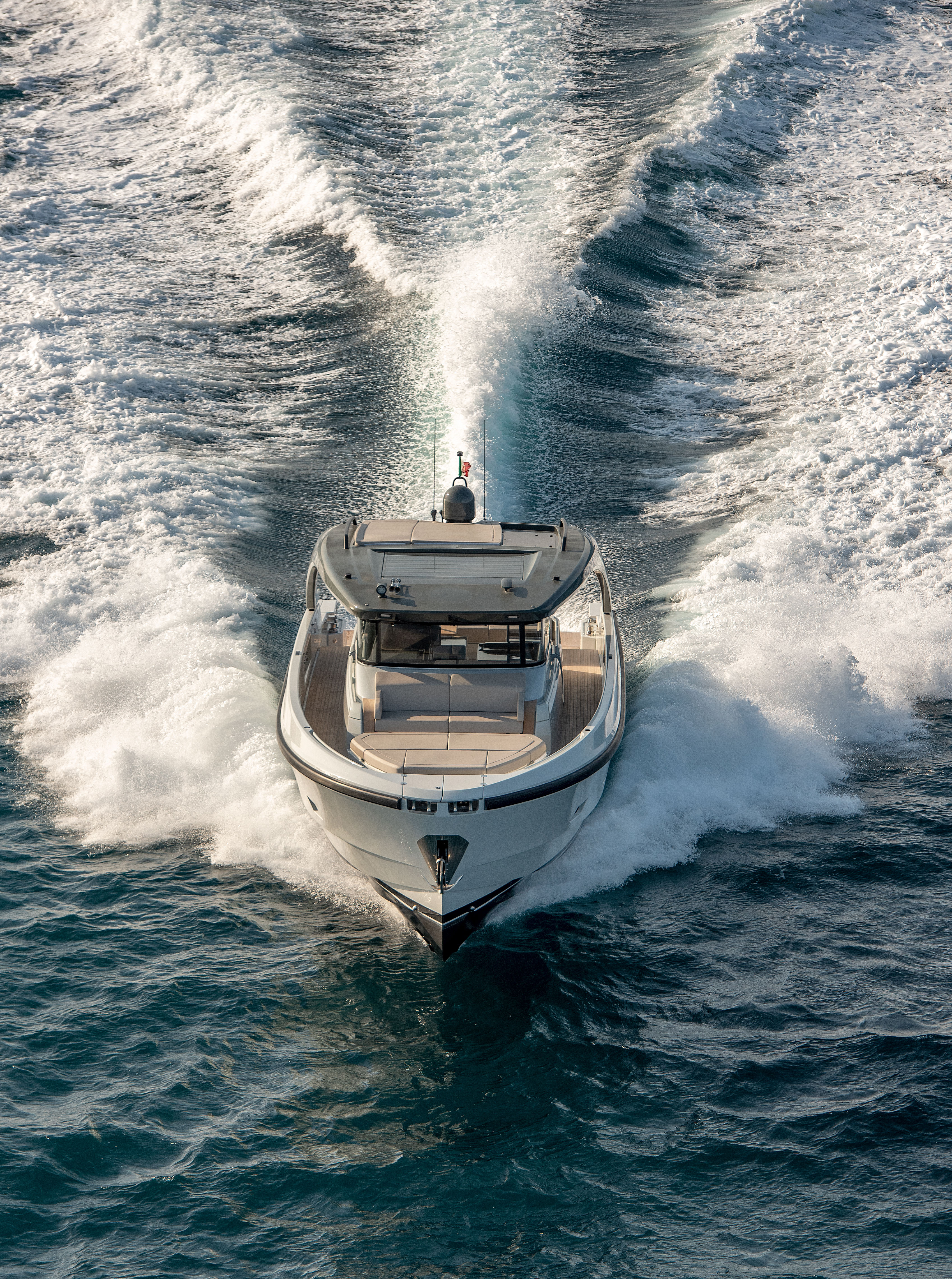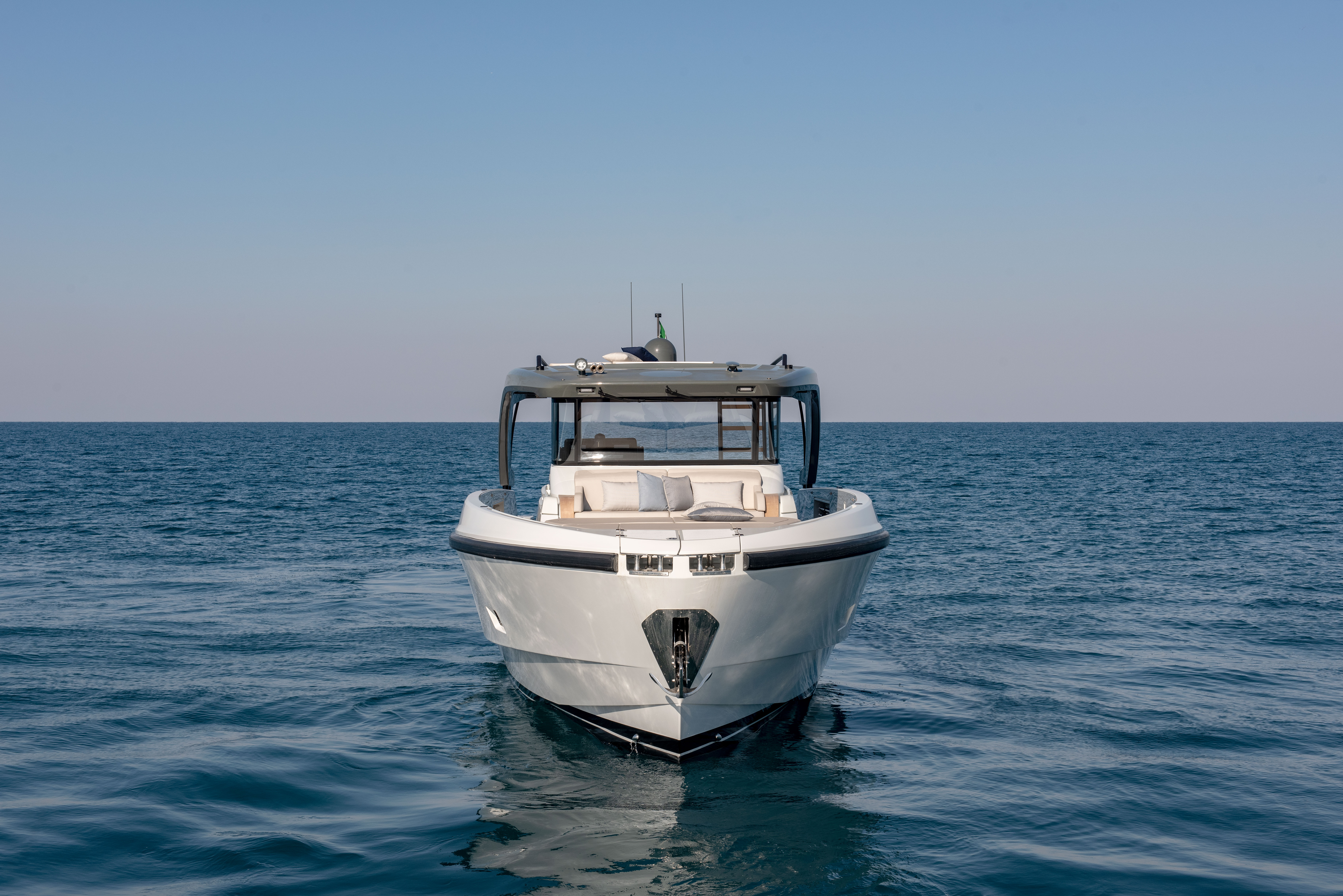 The BG54 is the first in a new generation of the BG range. With a design in line with technical evolutions, the BG54 boasts improved ergonomics and functionality. The large and spacious beach club leads to a platform that can be used for a tender or as an immersed swimming area. Designed to be a unique and extraordinary, the bow features a lounge area with seating and sunpad.