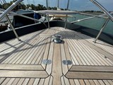 Panneaux de cagnard intégrés dans la rambarde arrière avec 2 passages vers la plateforme de baignade