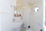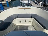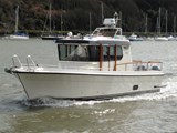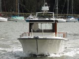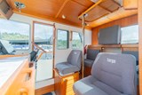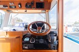 The Botnia Targas have been in build since the mid seventies and have a strong following with people who like a comfortable, solid boat to venture out in all types of weather. The Targa 25.1 GT is the first ever to be built specifically for outboard engines and the whole aft section and transom of the 25.1 were redesigned for this purpose. For a boat of only 27 feet overall, the use of space is very well thought out, even with the sizable space around the deck there is seating for 5 in the wheelhouse, a cabin with two pipe berths and a large aft locker. The interior is well appointed with lots of teak complimented by a plush grey upholstery. For a couple looking to speed around their local area this would be a fine choice with the added benefit of overnight accommodation should you decide to stay away.