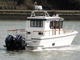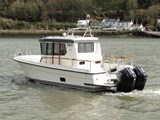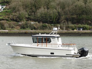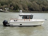 2018 Botnia Targa 25.1 GT (Commissioned and launched in 2019) - the self-proclaimed '4x4 of the Sea', the Targa range is built in Finland and there is a well earned reputation of being tough, commuter boats designed to be used all year round. 'Fin' is a wonderful example of this with the solid wheelhouse offering good all round vision from the helm and ample seating, a lower cabin with two berths, easy access to the side decks and a spacious walk round deck giving an additional feel of safety. Powered by twin Mercury V6 200hp outboards on low hours, there are bow and stern thrusters, heating, Simrad electronics and toilet all onboard. This is a perfect boat for adventuring around the coastline in comfort.