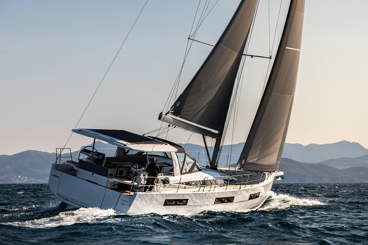 Her sleek and elegant lines, combined with the versatility of an ingenious layout, enable her to suit all cruising styles. The JEANNEAU YACHTS 60 has been designed to be tailored to satisfy all preferences and cruising lifestyles. She allows numerous choices, such as an arch, a hardtop, an exterior galley, releasable forestay, furling mast, with which you would transform her from a sporty “Mediterranean” yacht to a fully-fledged offshore cruiser for longer voyages.