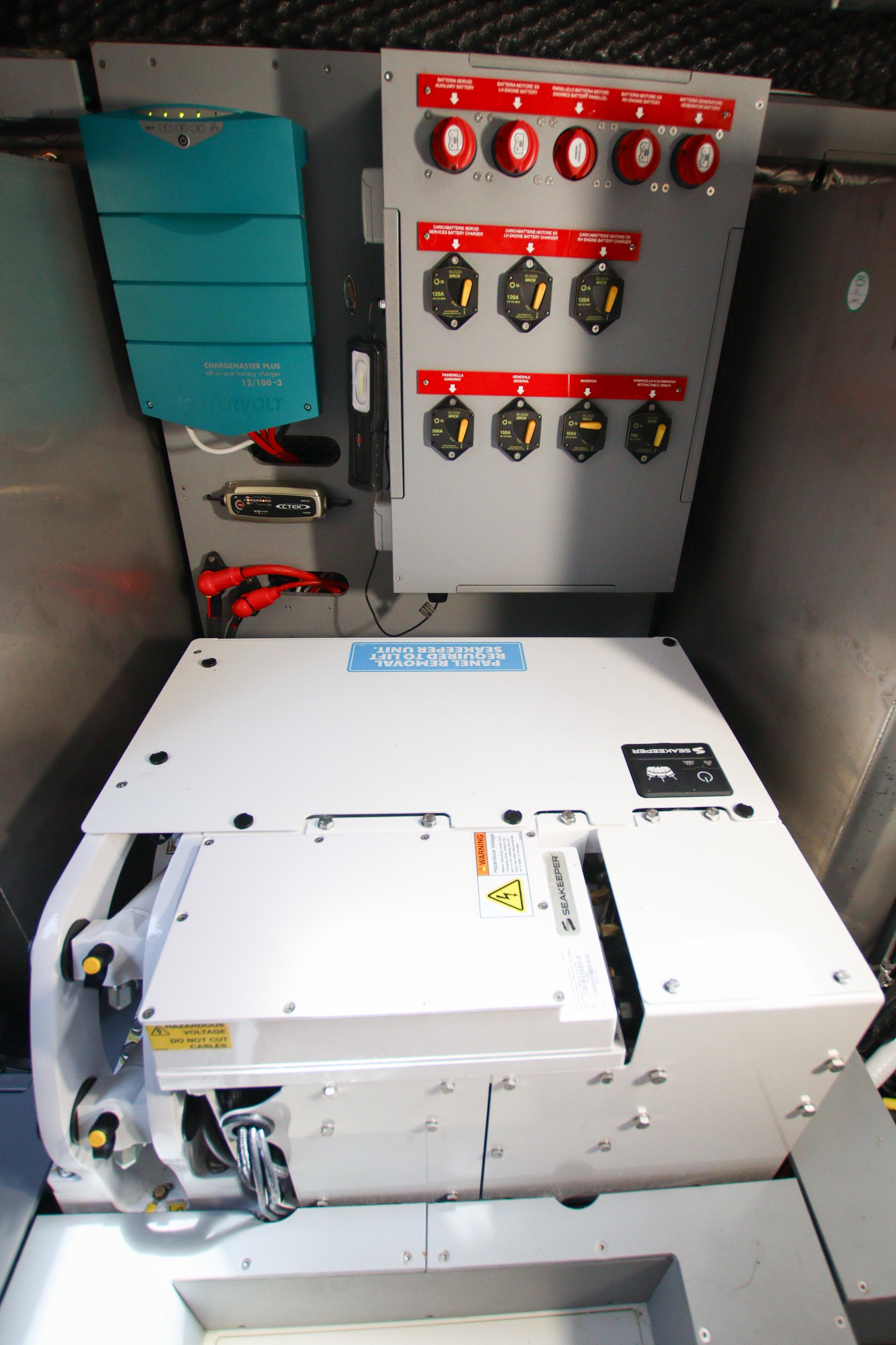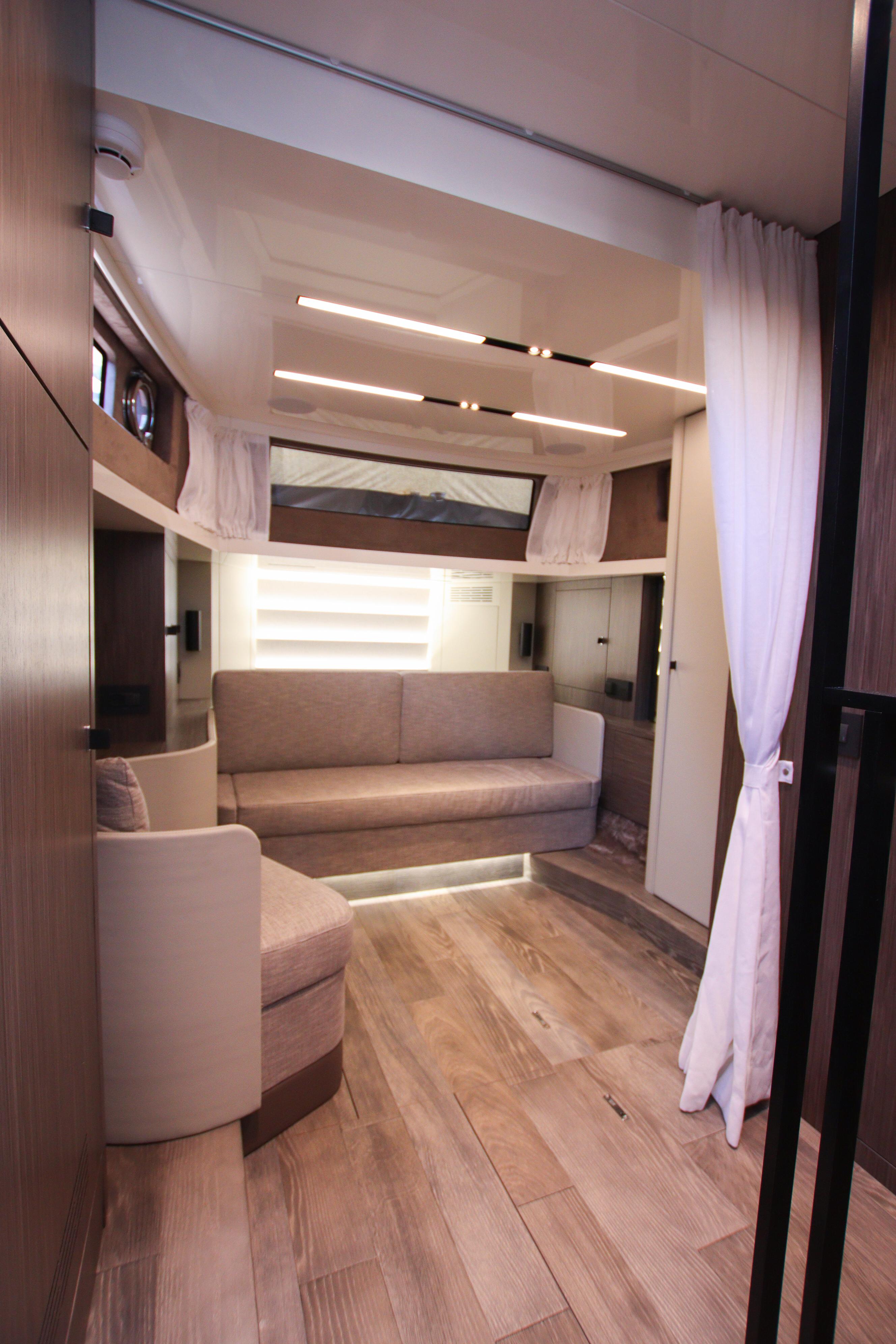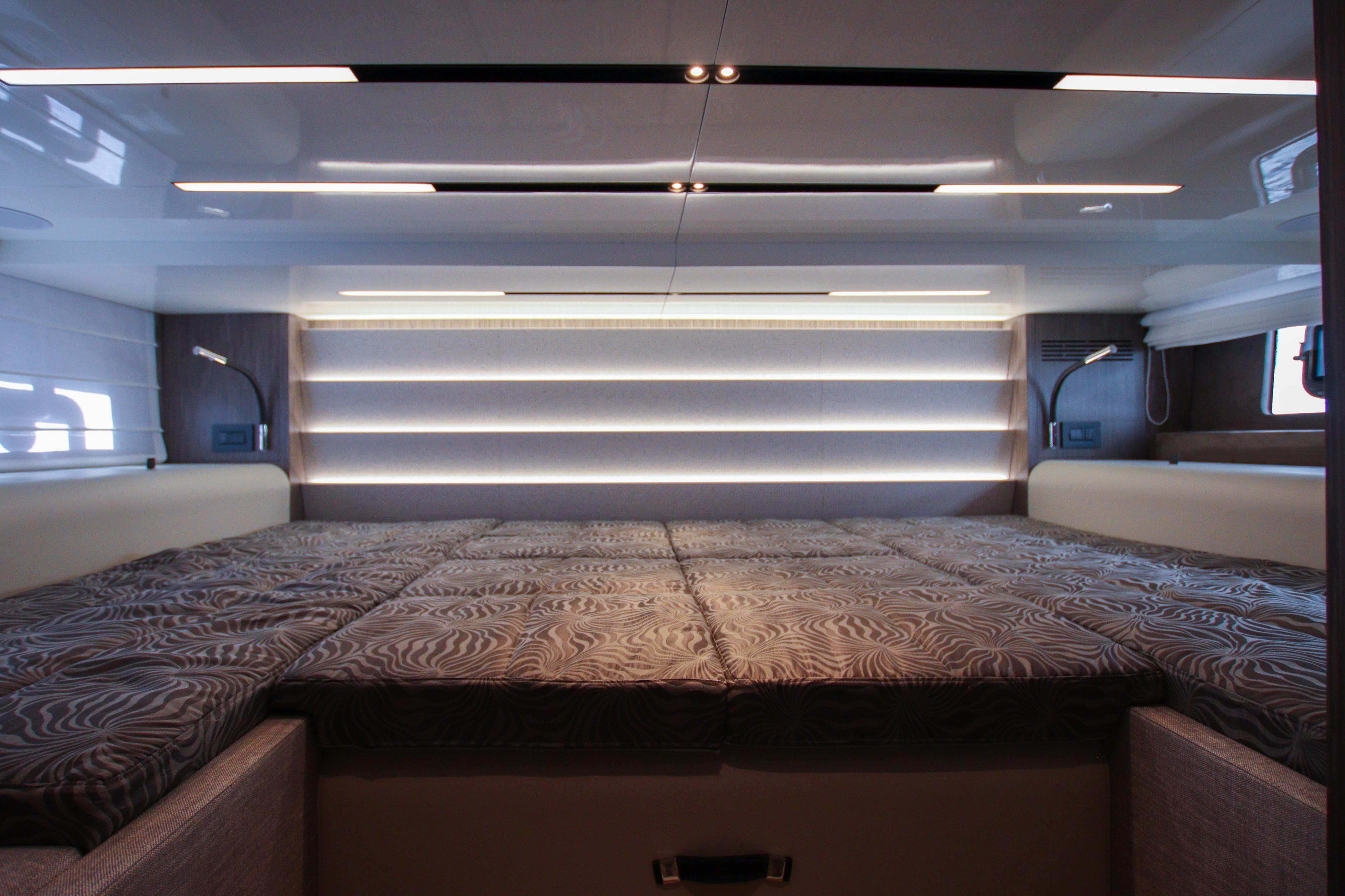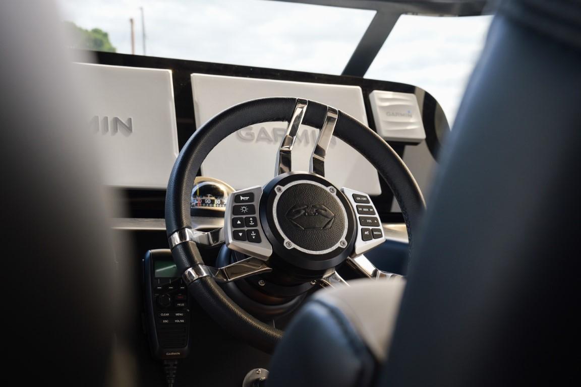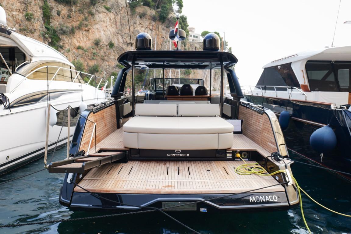Radar (colour) Data receiver/transmitter AIS system class B (required VHF and Plotter/GPS) n.2 plotter screen 16" (in place of 12") Set of CRANCHI® crockery, cutlery and glasses (6 settings) Boat tracking system with alarms bilge water, dock line disconnected, moving boat, engine activation. Traffic for 2 years included. Gyroscopic stabilizer Seakeeper 6 Surround view camera System Garmin Teak laid cockpit + Teak on aft lowering Bulkwarks Solid teak coverings on lateral stringers Bilge micro suction system Proportionale Bow thruster, with automatic fire extinguisher Search light Cockpit fridge 8 KW Generator