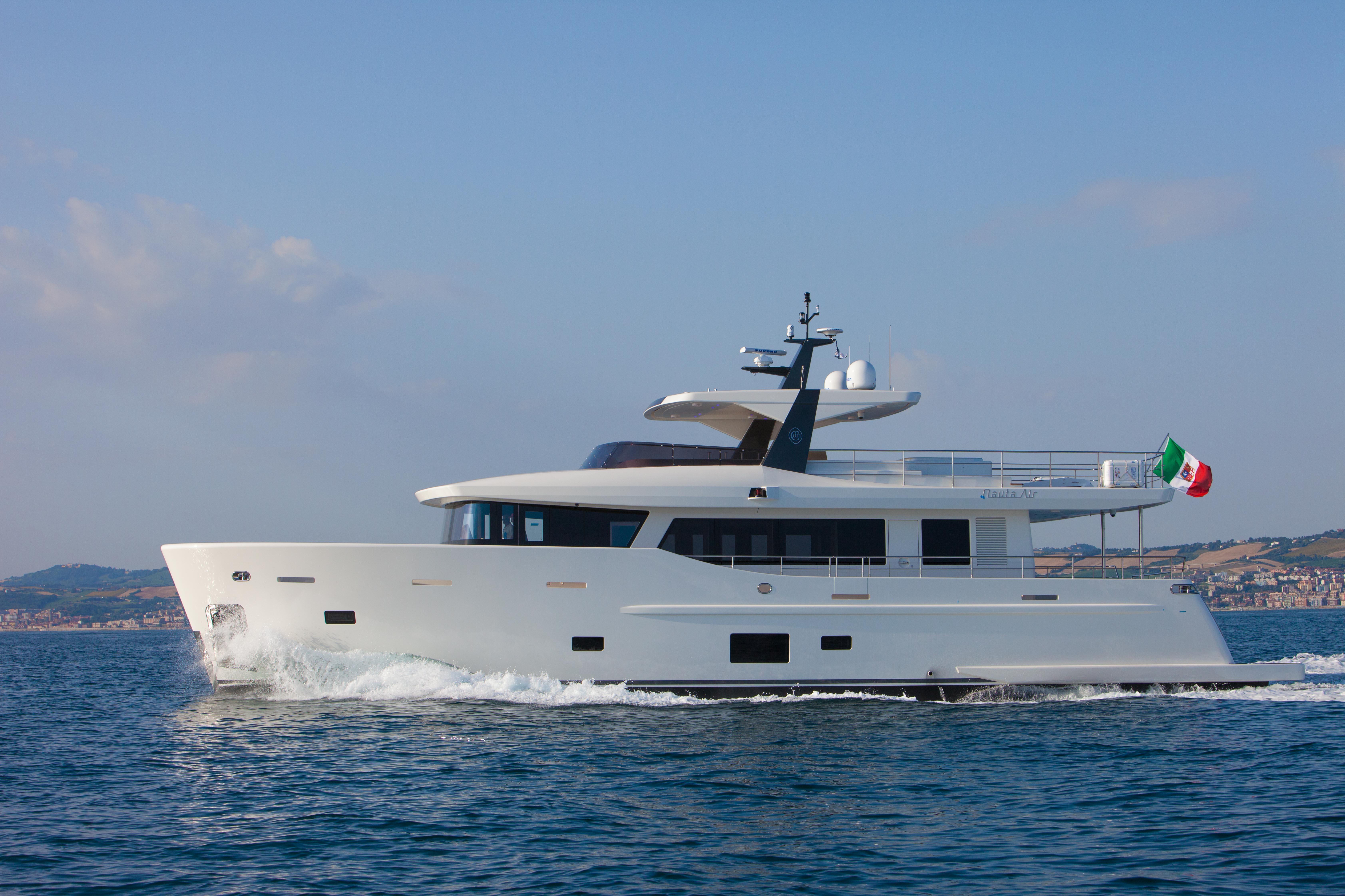 M/Y YES was the first yacht in the Cantiere delle Marche Nauta Air line, with Explorer Yacht characteristics that offer the perfect blend of superyacht style with the sturdy substance that characterises CdM’s Explorer Yachts. This NAUTA AIR 90 is an all aluminium explorer yacht featuring elegant and airy design, huge interior spaces, long range and low fuel consumption, allowing her owners to sail far and wide with maximum comfort.