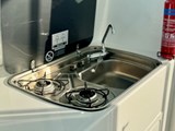 Starboard side moulded galley with sink, fresh water supply and 2 x burner gas hob