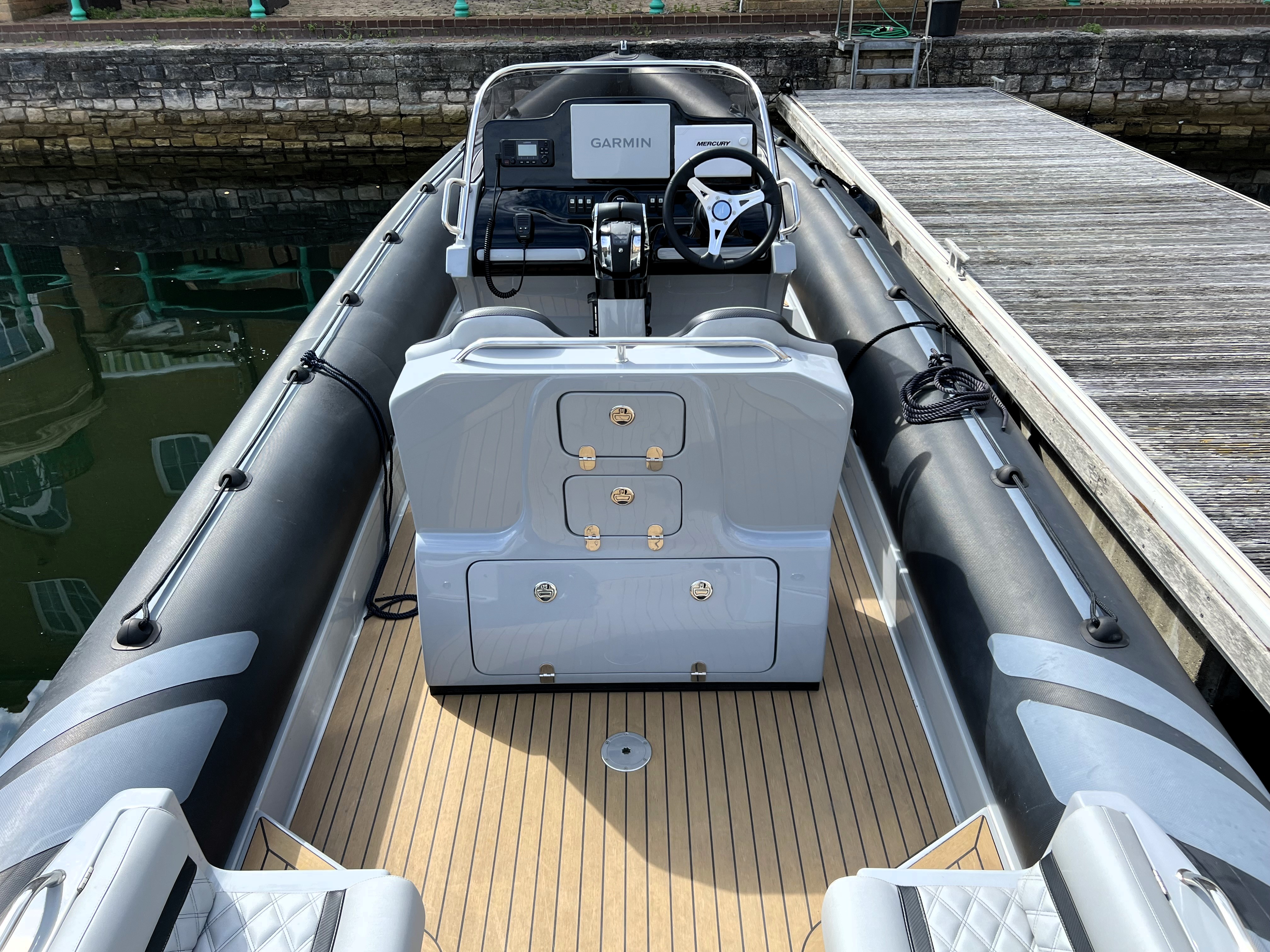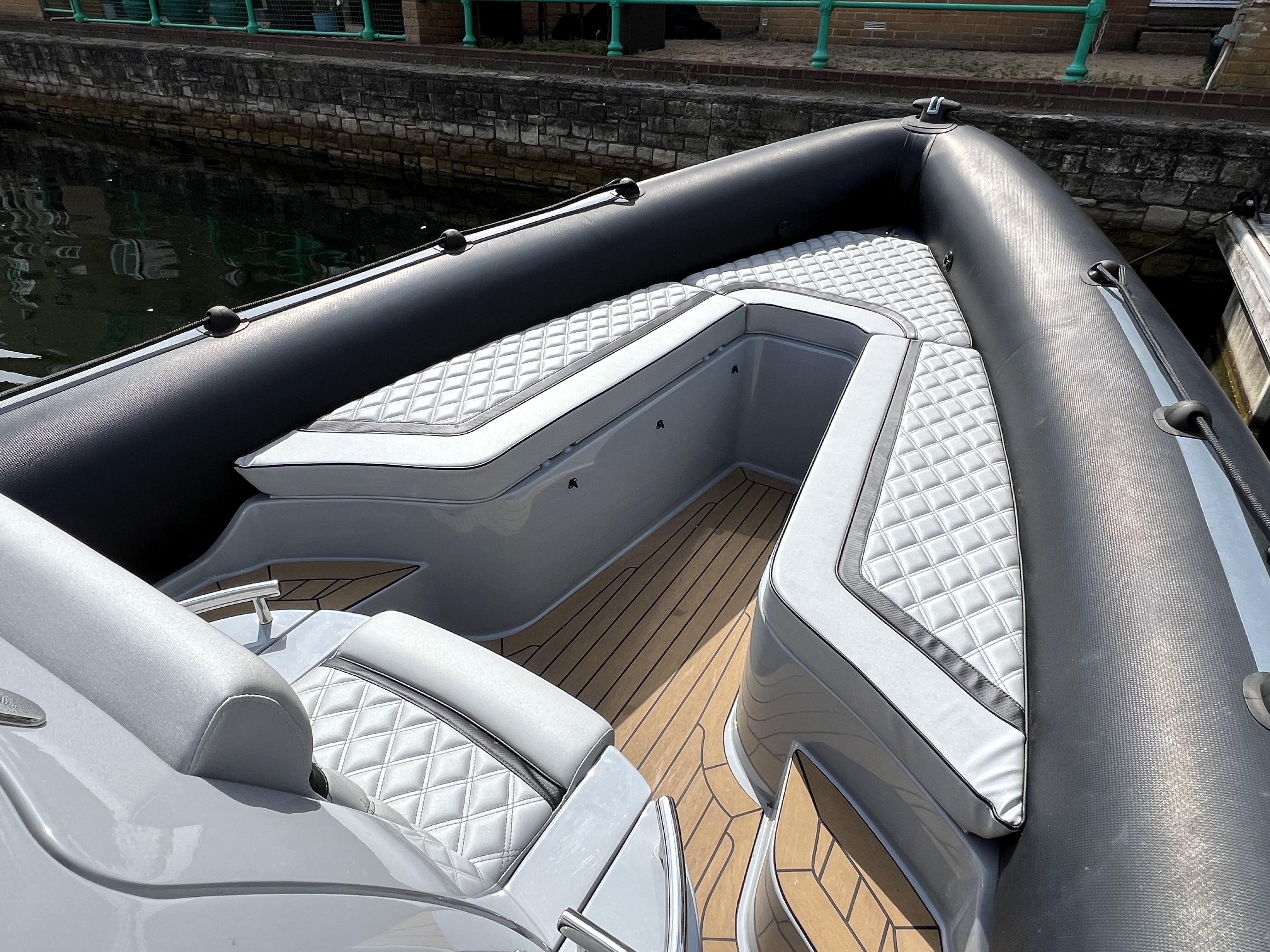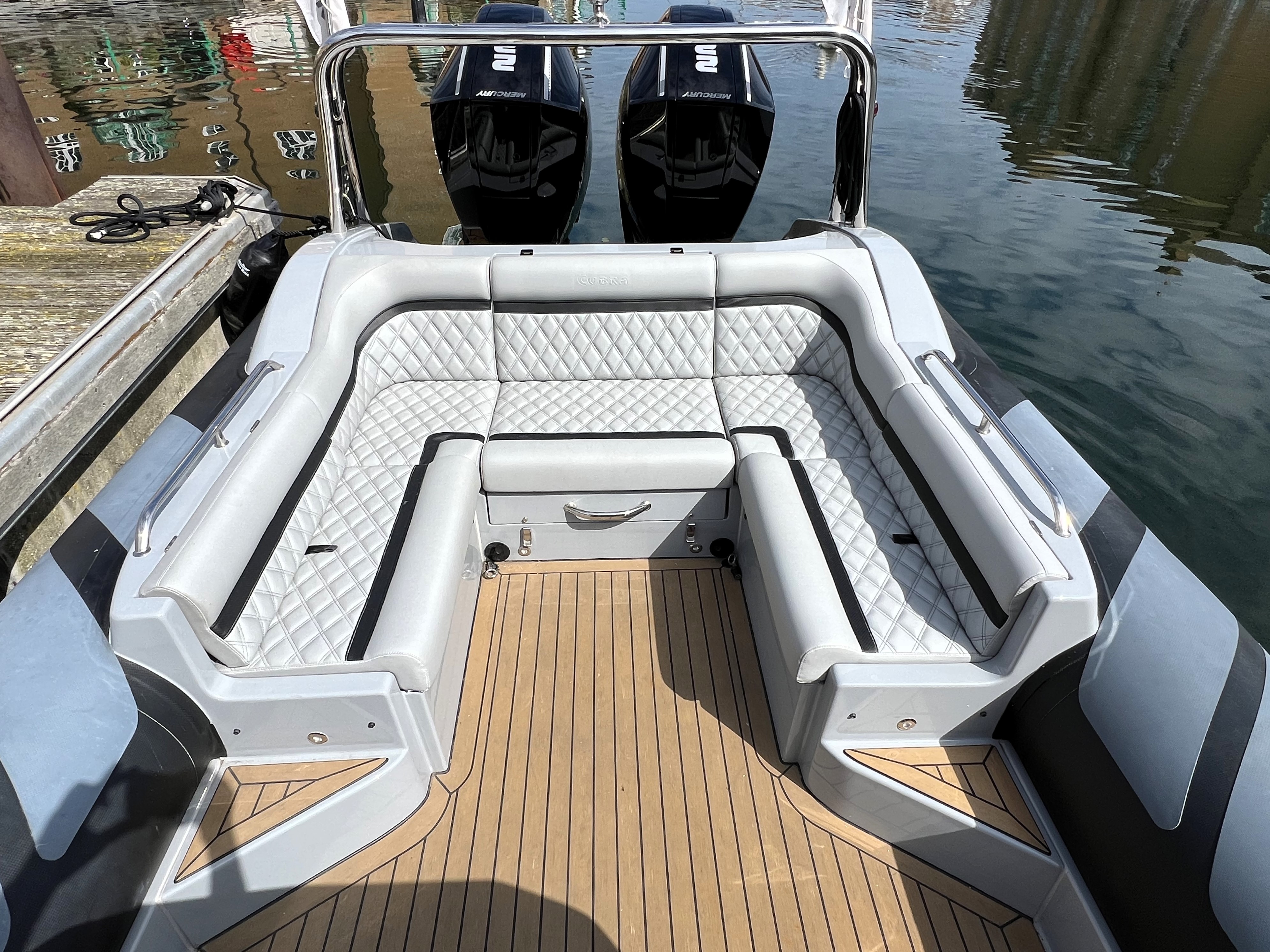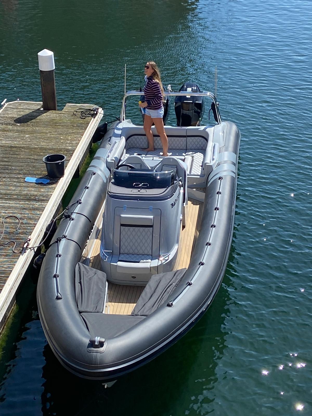 One owner from new. 2023 launch, '22 model; Cobra Nautique 8.7m fitted with Twin Mercury 225hp V6 Outboards. Speeds up to 50 knots and handling only expected from Cobra! Stylish finishings such as Black Carbon Hypalon tubes, grey grp and black accents, she is sure to stand out from the crowd. 'Banksy' is packed full of extras with suppression seats, 12" Garmin plotter, AIS, wireless phone charging, low hours and just serviced ready for the season. We highly recommend a viewing of this performance vessel. Ashore, stored inside for winter on new twin axle SBS trailer.
