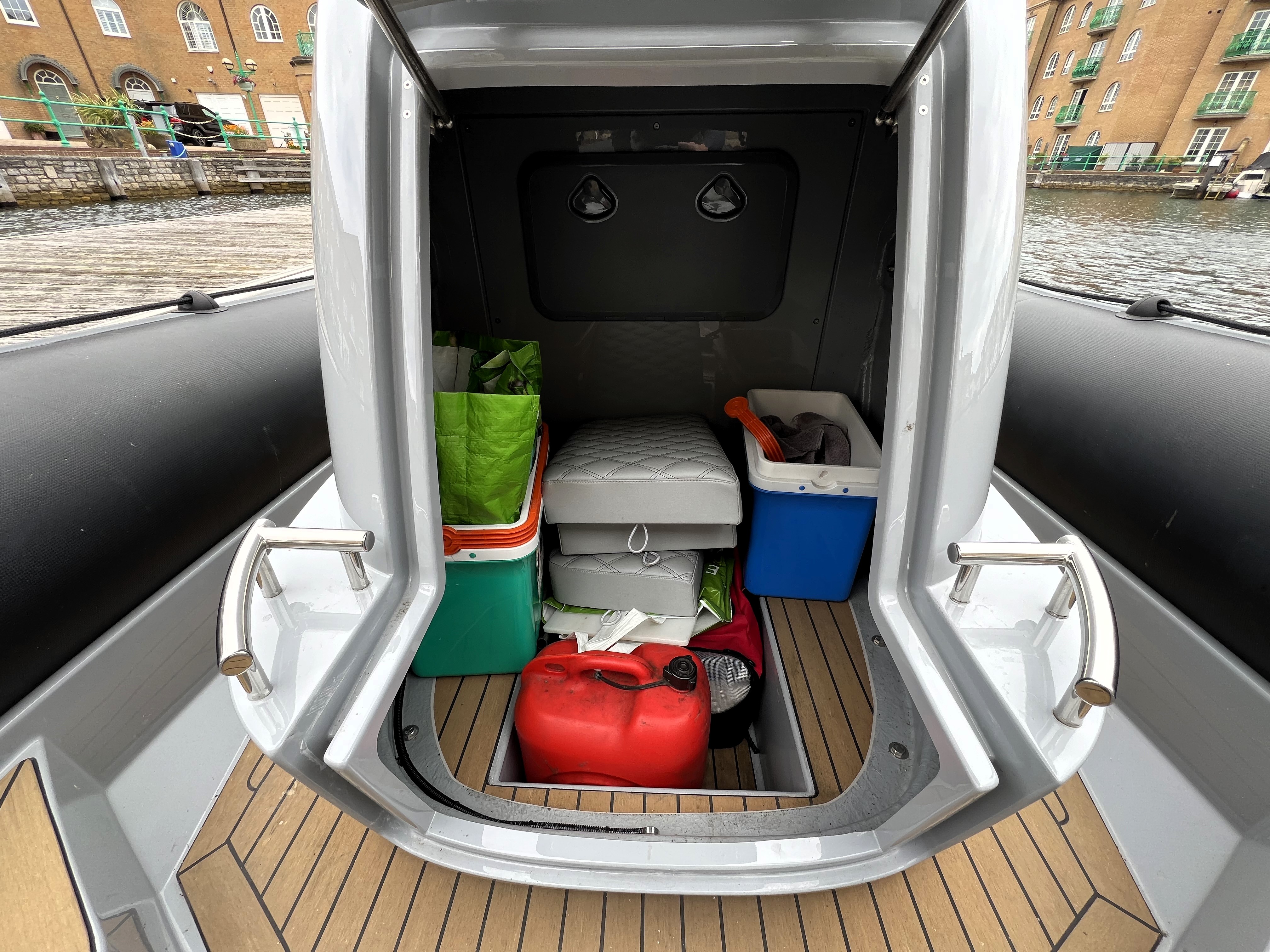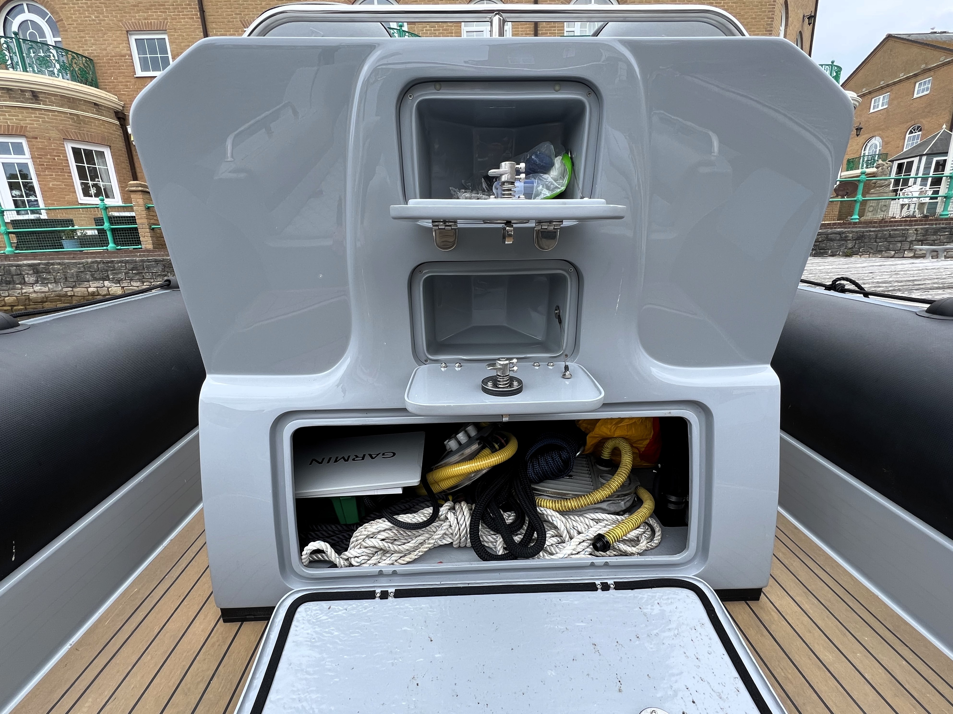 Designated bow anchor locker.