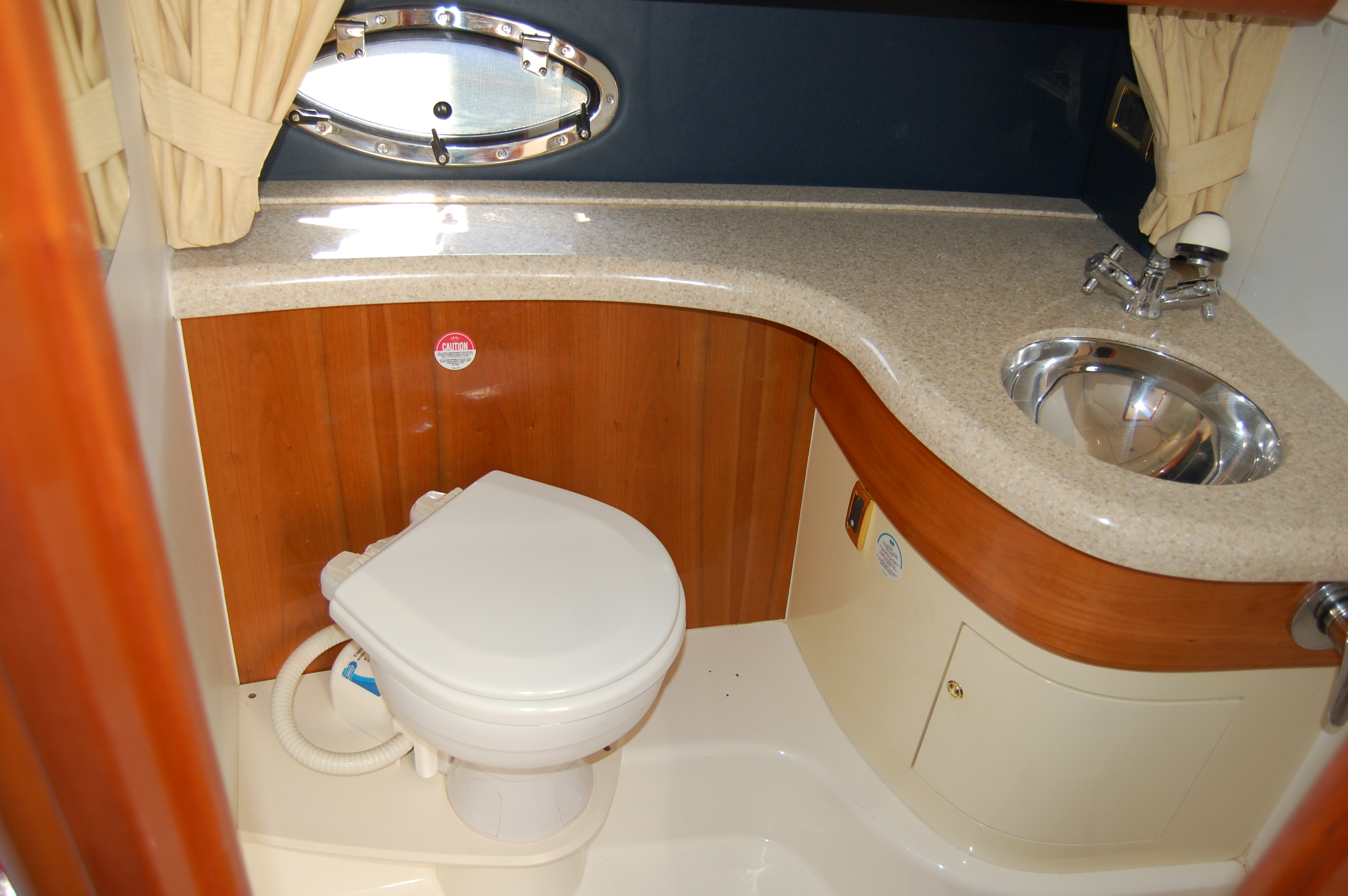 Heads compartment with electric marine w.c., shower with mixer, curtain and sink