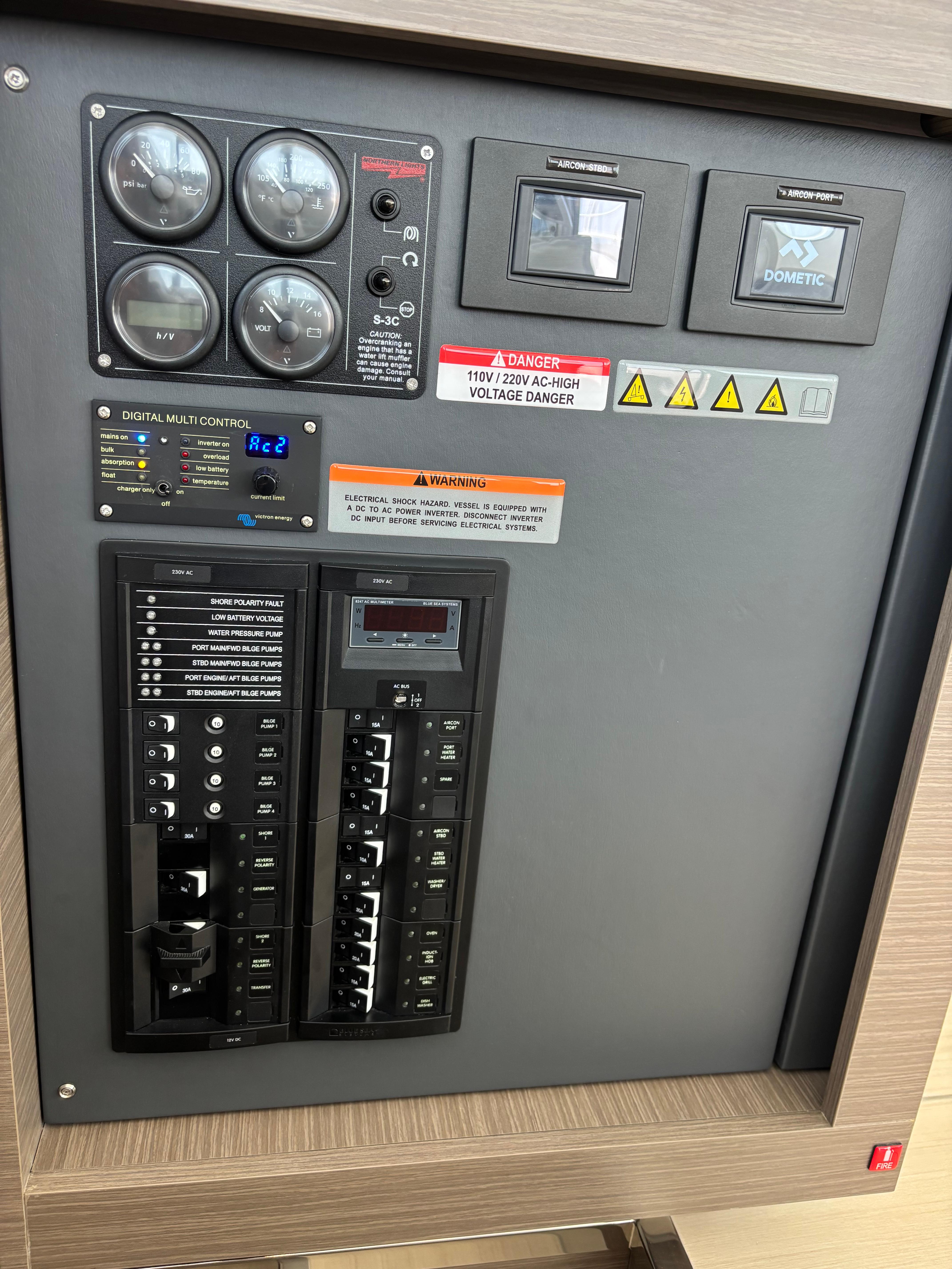 Genset - Northern Lights 9kW non USA only (60 Hz 110V) / 7kW (50Hz 220V) supplied from port fuel tank, fuel transfer ability from stbd to port tank. Analogue control panel without Auto Start/stop function
