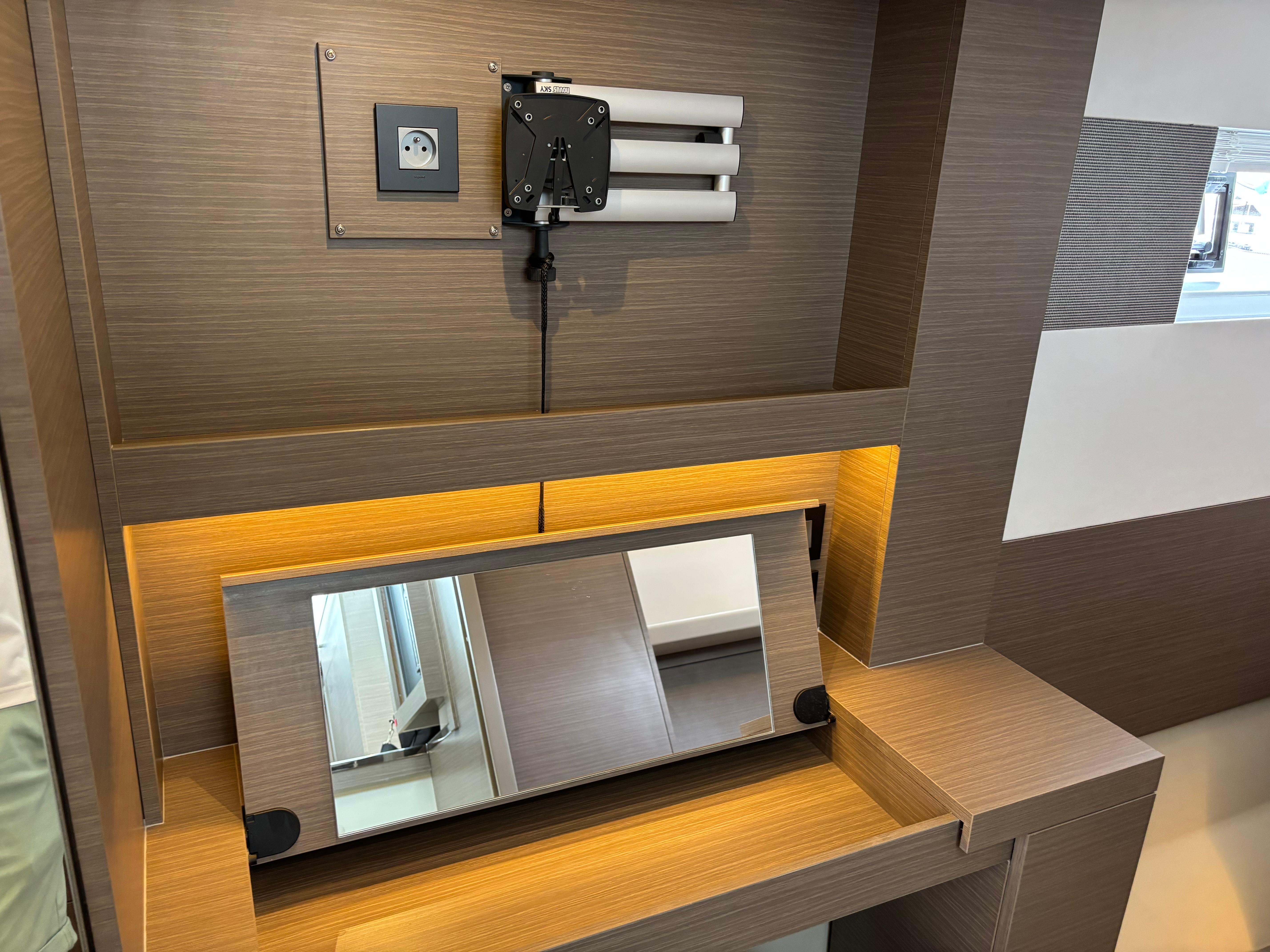 Provision for TV in owner's cabin (3-cabin layout only) - swing bracket & AC outlet.