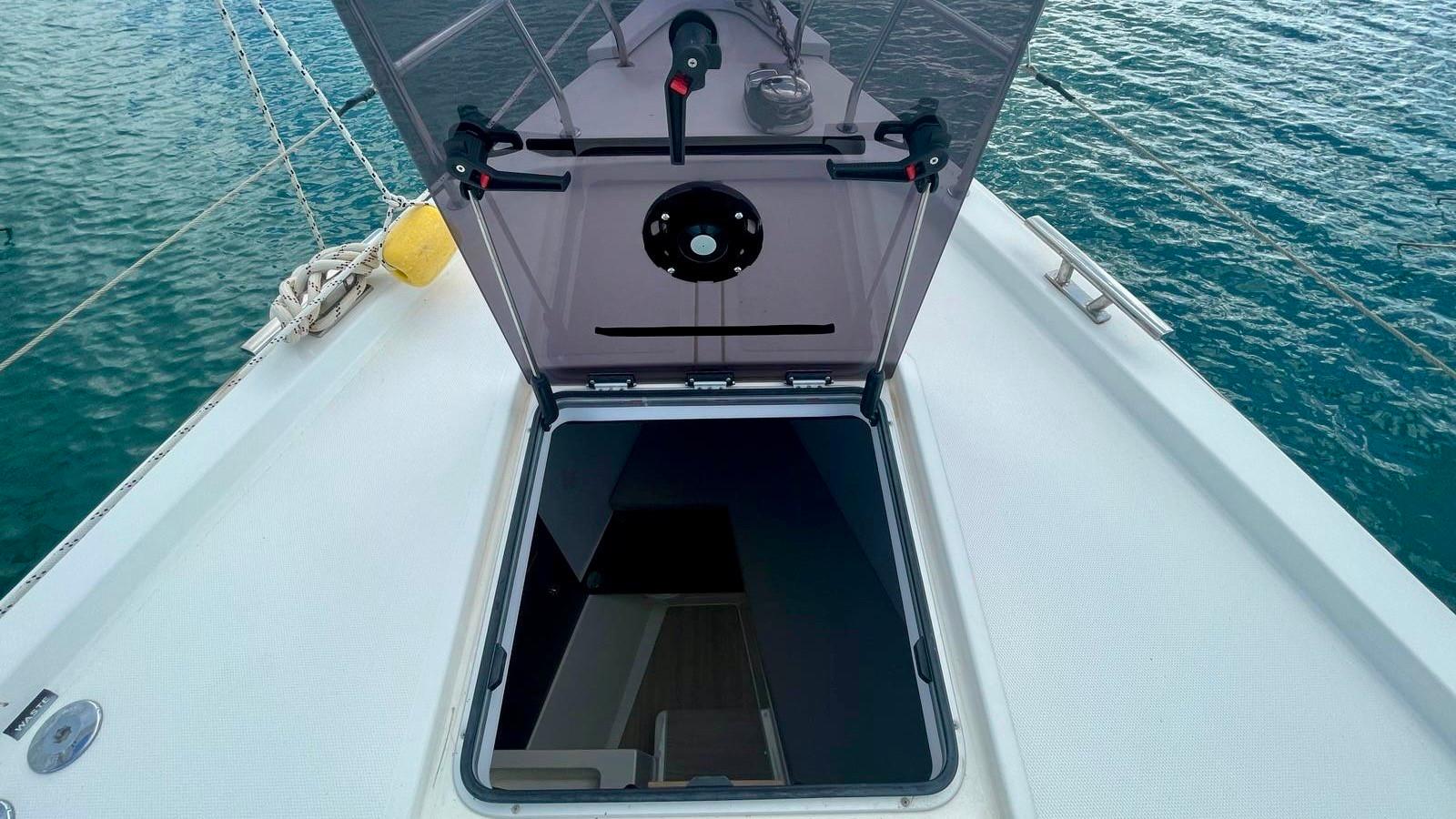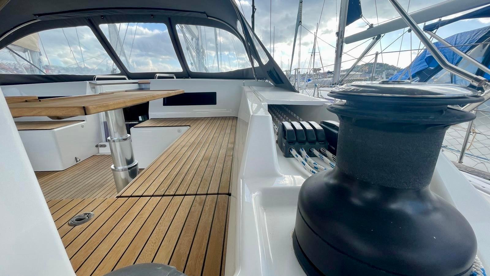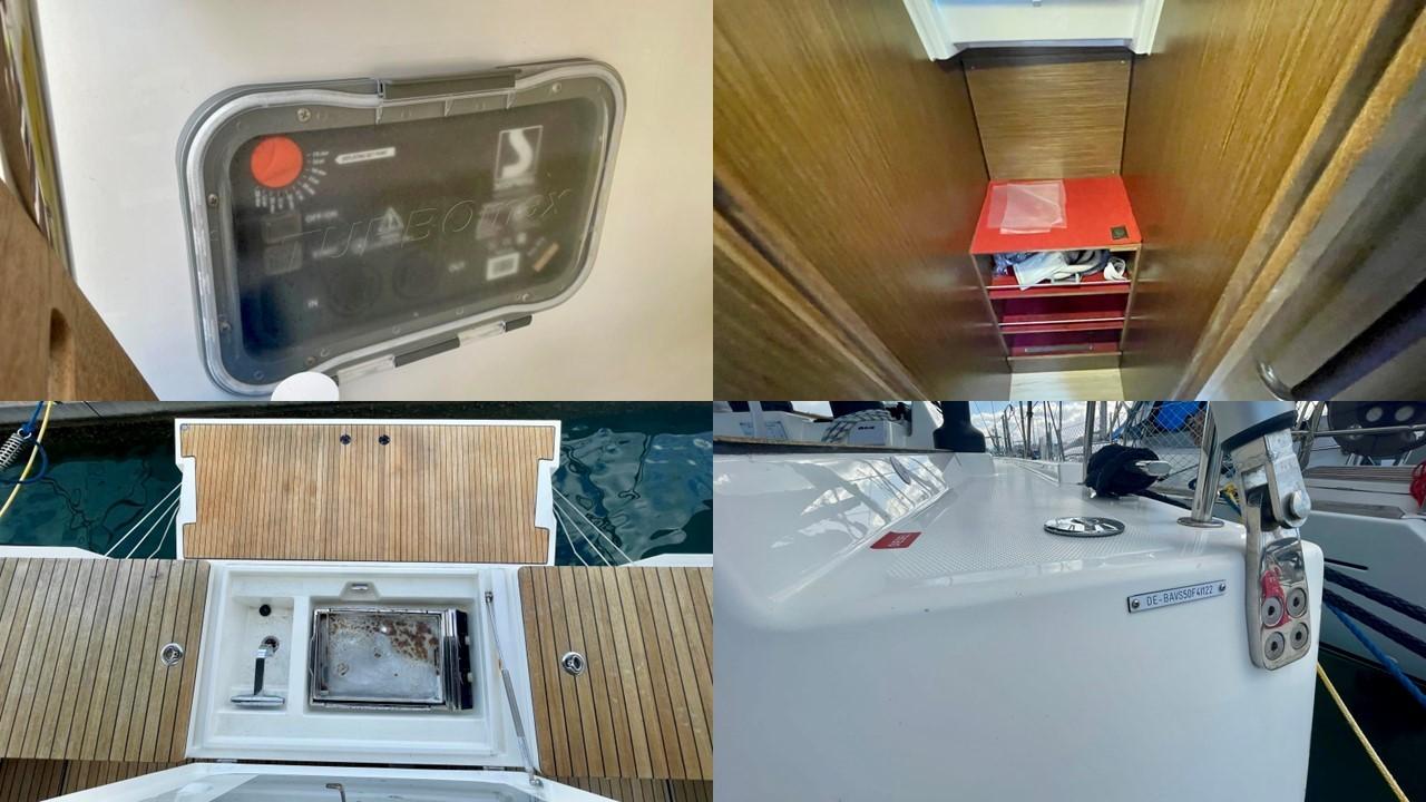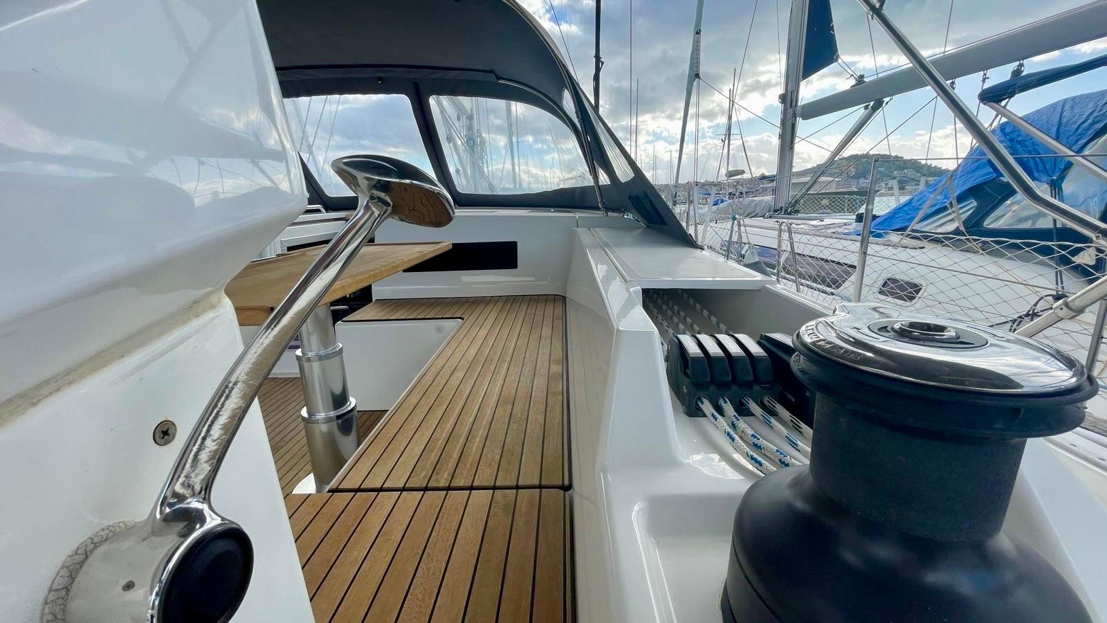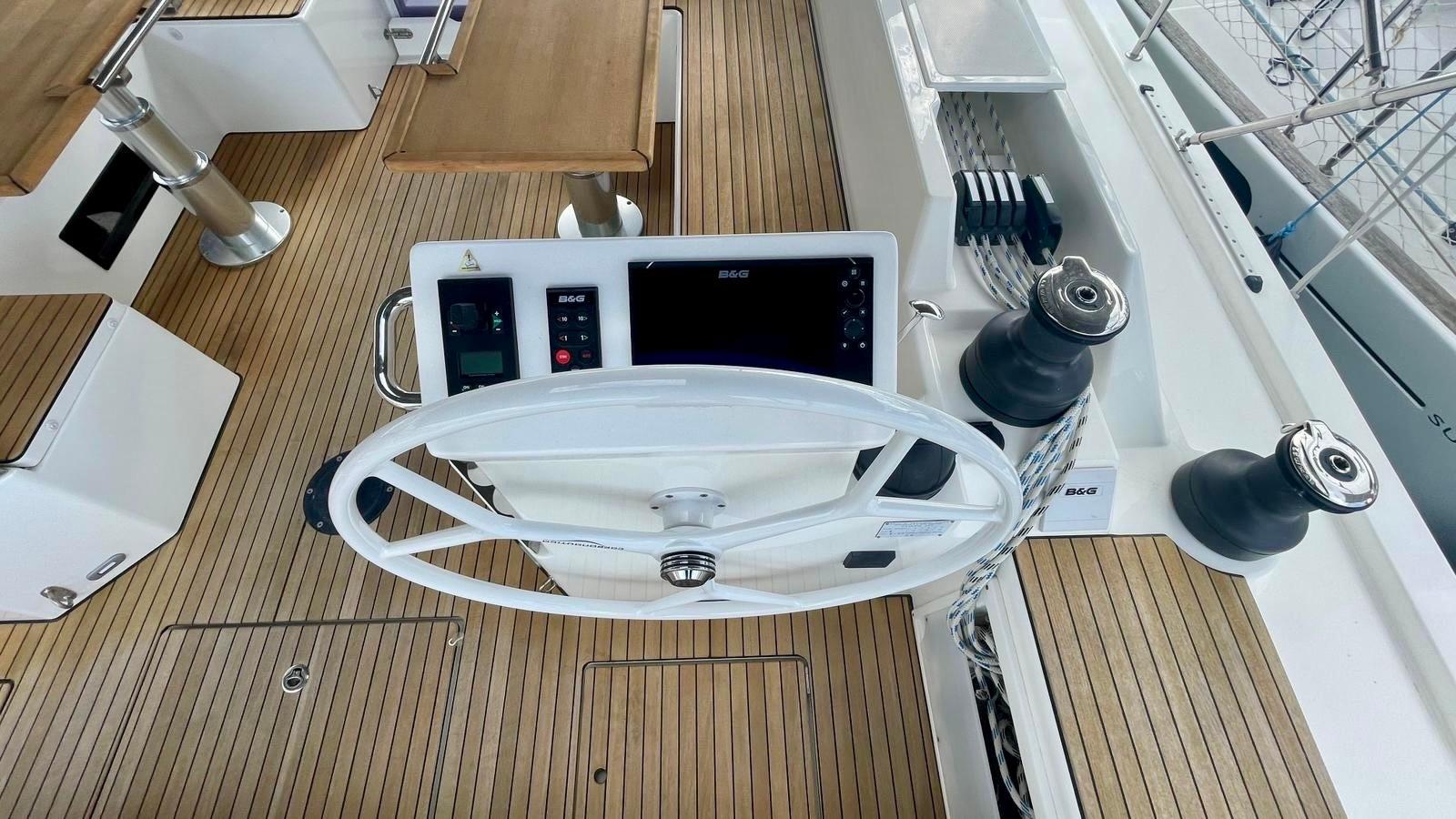 High-end navigation equipment, including dual B&G chartplotters, radar, autopilot, radio, and wind indicator, ensures safe and enjoyable sailing. An electric windlass, chrome ultra anchor, and automatic bilge pumps give you full control at anchor.