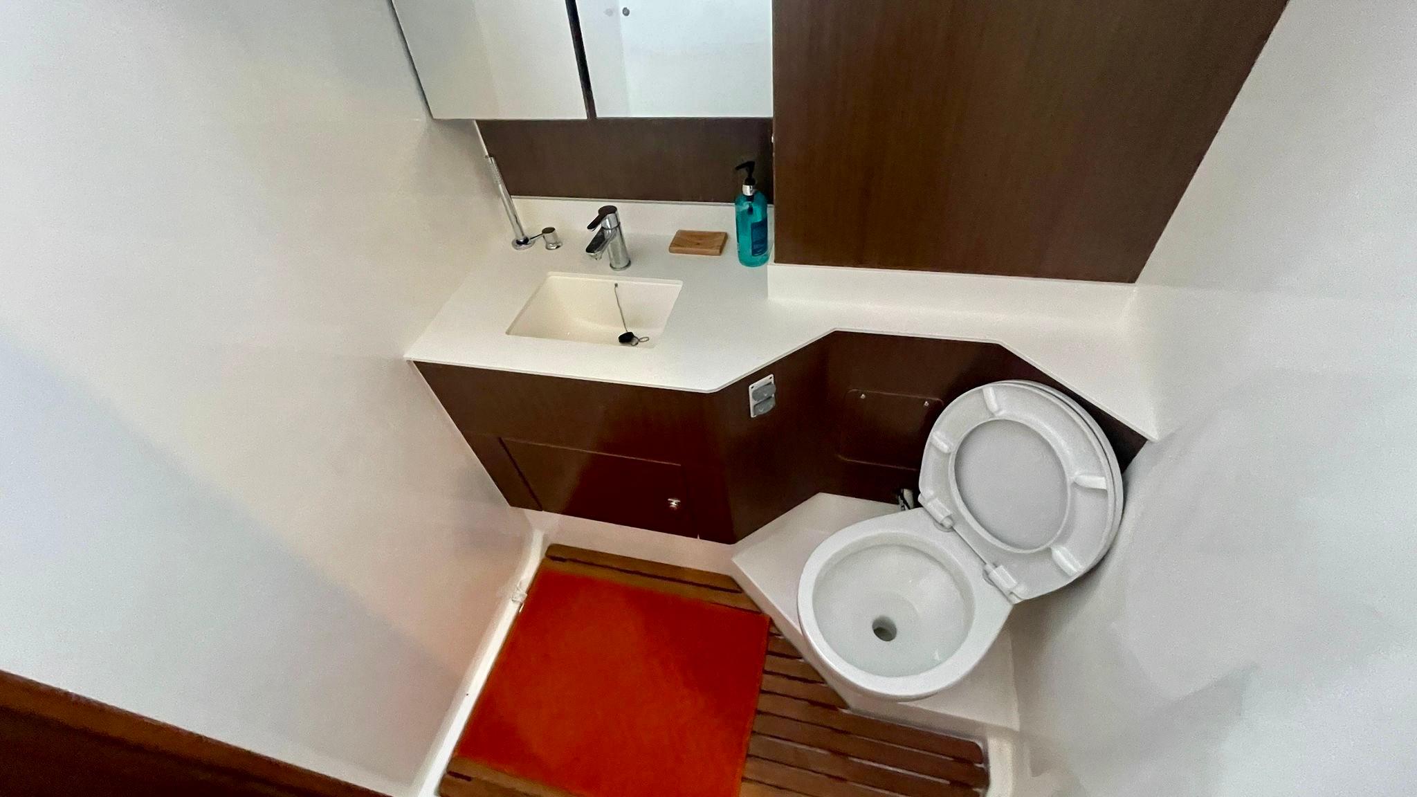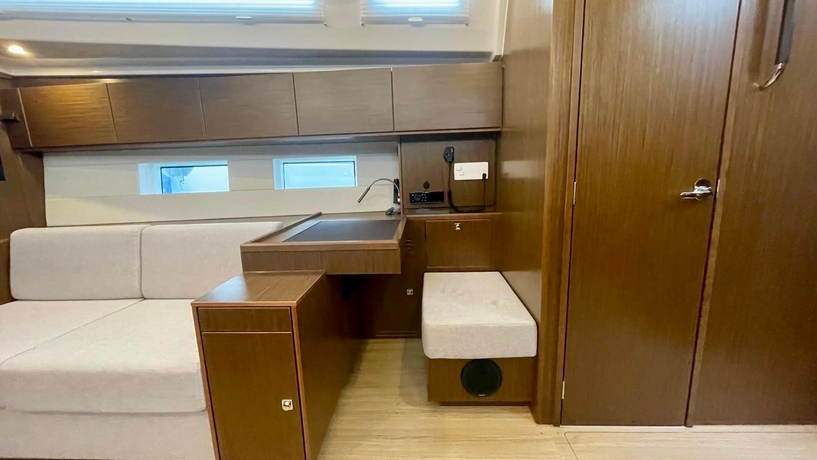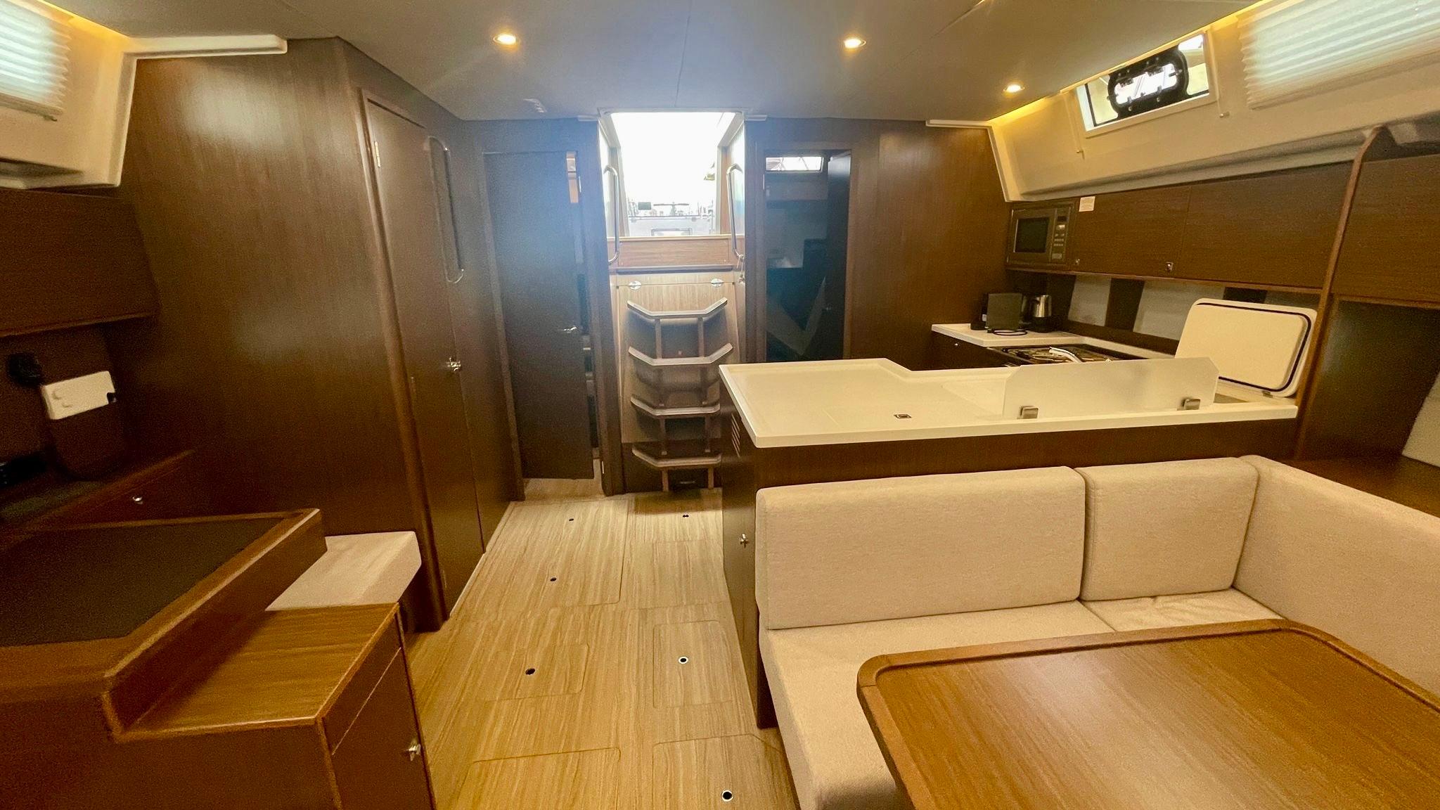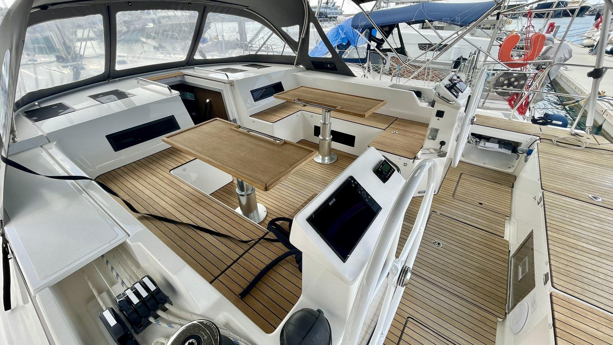 High-end navigation equipment, including dual B&G chartplotters, radar, autopilot, radio, and wind indicator, ensures safe and enjoyable sailing. An electric windlass, chrome ultra anchor, and automatic bilge pumps give you full control at anchor.