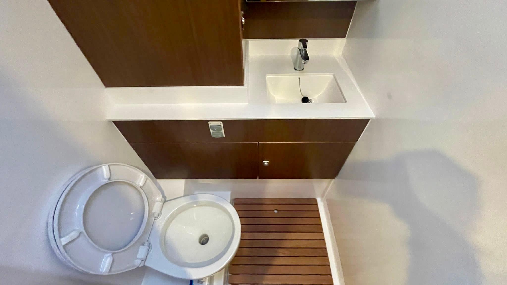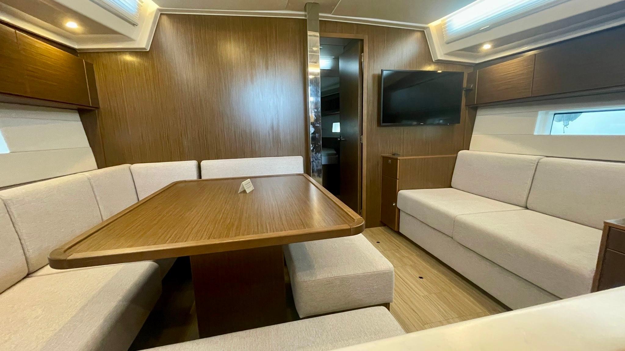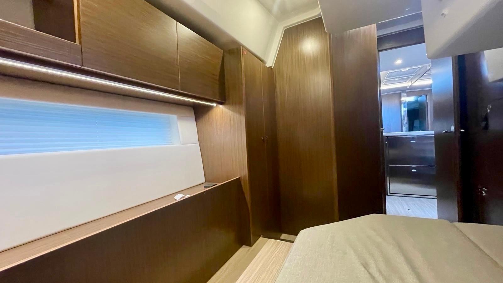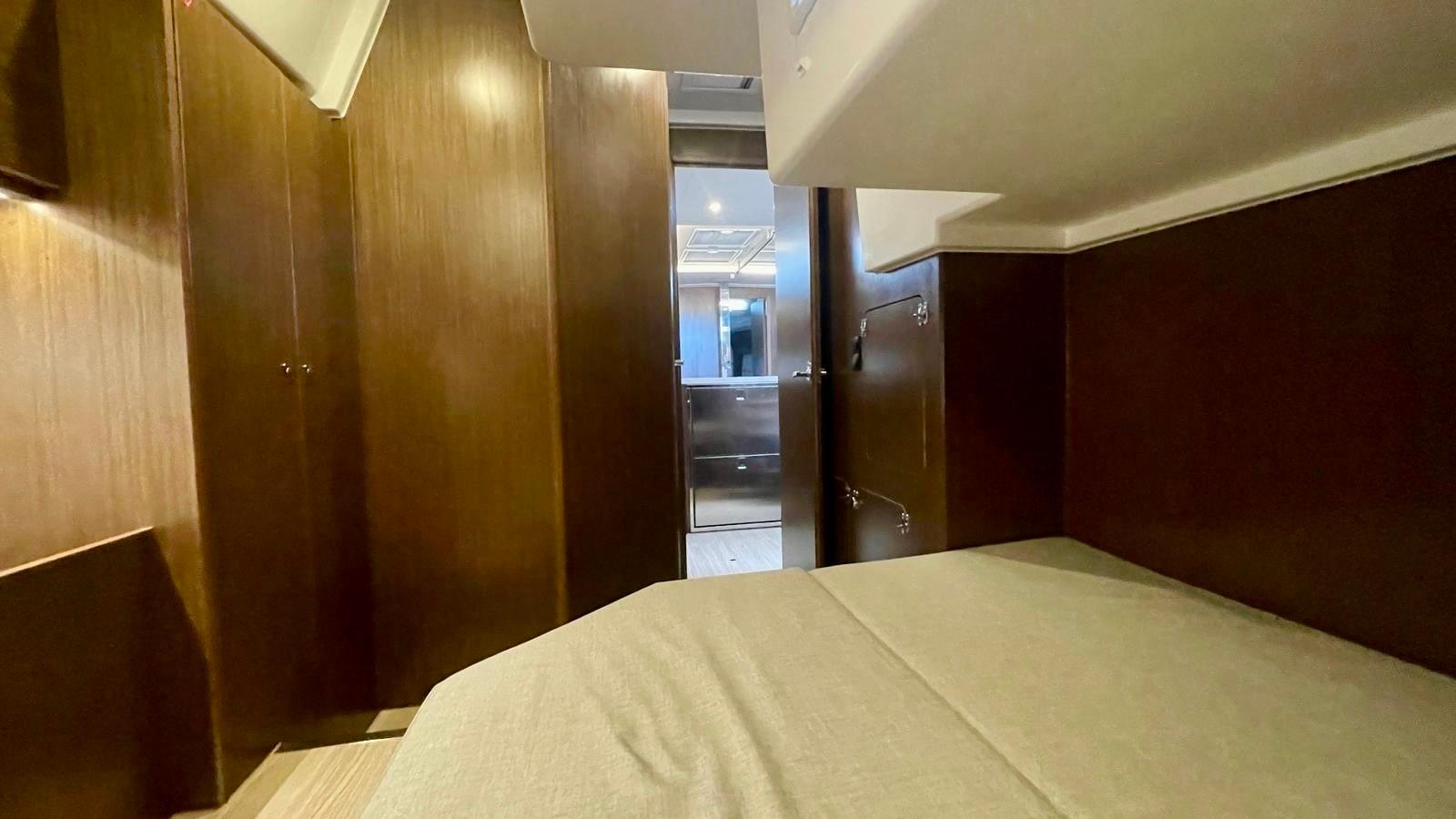 The interior welcomes you with three spacious cabins, each with a private shower/WC. There is also a separate cabin and bathroom area for crew. Details such as the electric table, hot water system, TV, Fusion sound system and a table that can be converted into a bed, which take comfort to the next level, make the boat feel like home.