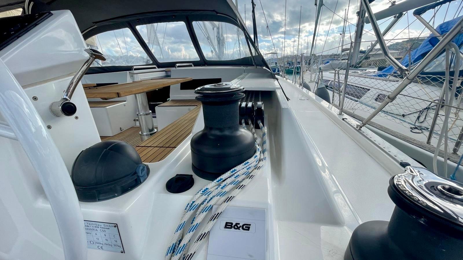 Powered by an 80 HP Yanmar engine, the Bavaria C50 can reach a 7-knot cruising speed and a 9-knot top speed. Its saildrive propulsion system offers quiet, efficient, and easy maneuverability. A 12V/220V power system, battery charger, and shore cable are included for extended cruises without the need for mains electricity.