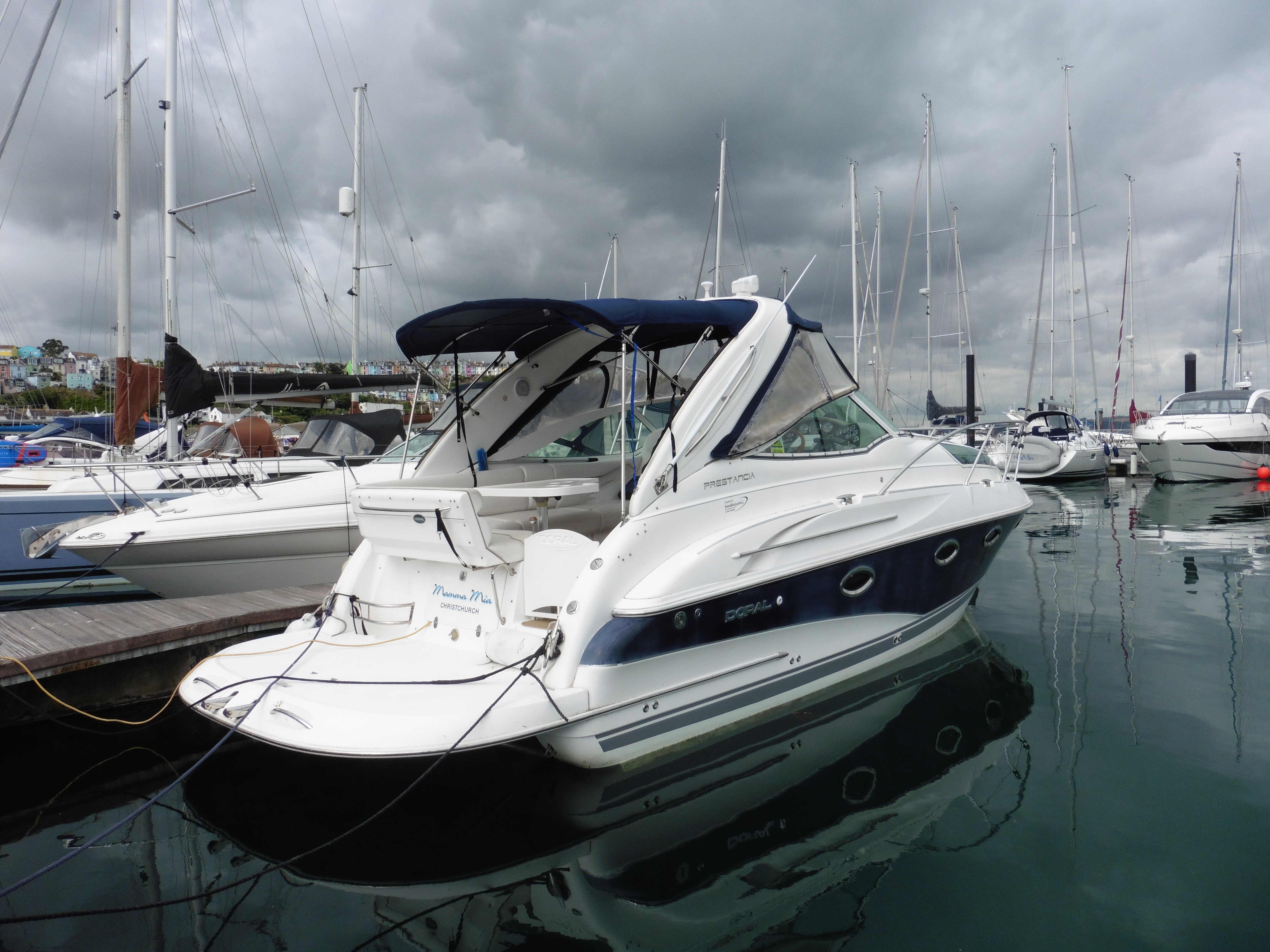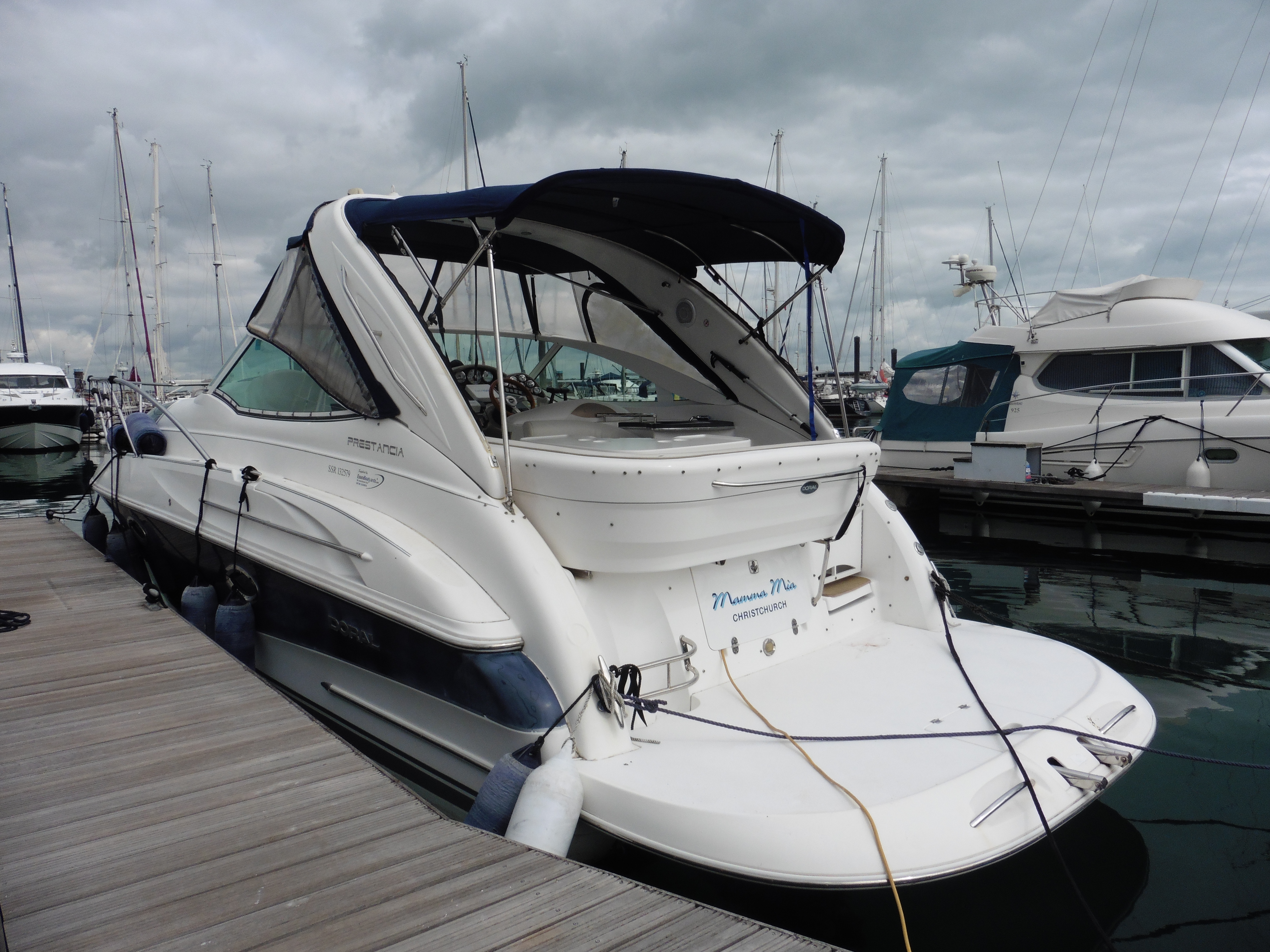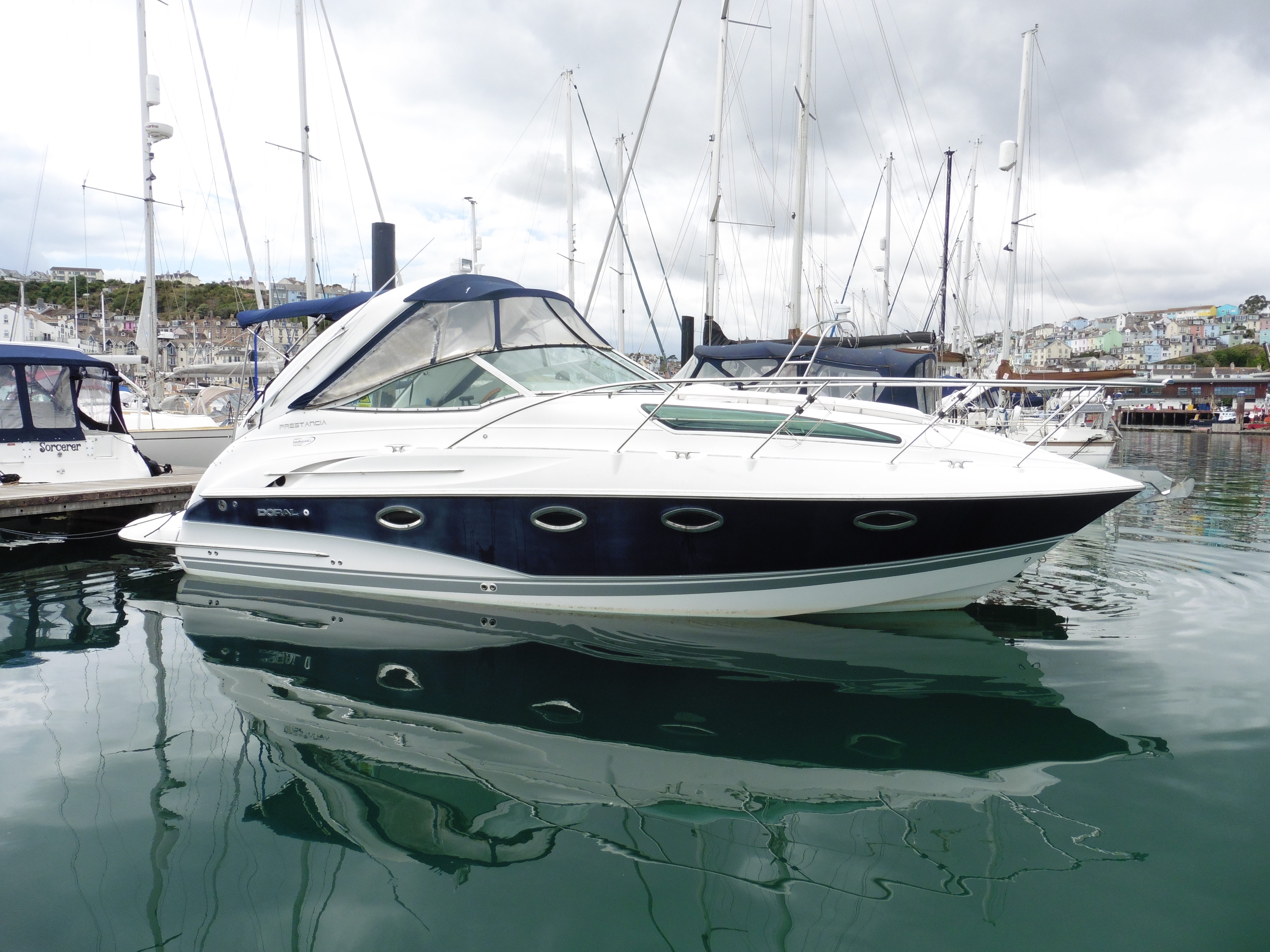 2005 Doral Prestancia - 'More than just a powerful and agile luxury cruiser.' This a fine example of these well built, elegant sports cruisers offering accommodation for five, a large and comfortable cockpit and well thought out galley. Powered by twin Volvo Penta D3-160 engines she has been lightly used since new. This is a boat that offers plenty in a neat package with everything ready to go for the season.