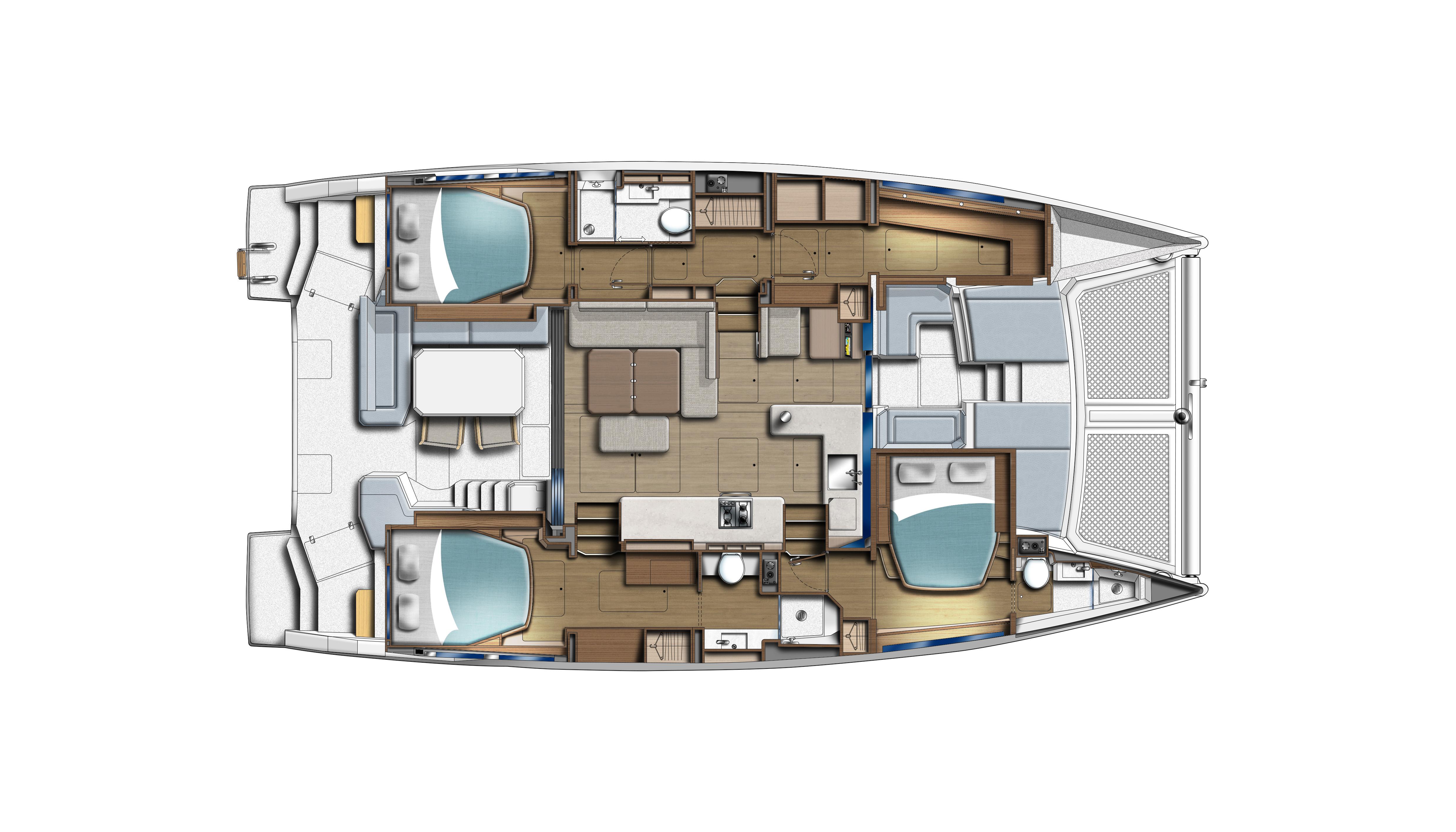 While retaining the core elements that made the Leopard 45 so popular, the Leopard 46 introduces numerous innovations to enhance comfort, convenience, and sustainability. The layout has been refined to provide a seamless integration between the aft cockpit and saloon, allowing for flexible living spaces. The elimination of the skipper cabin has made way for more spacious accommodations, including a choice of three cabins plus a utility room, a four cabin layout, or five double cabins, all with ensuite head/showers.