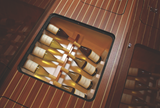 Waeco Fridge by cockpit door, perfect for drinks outside.