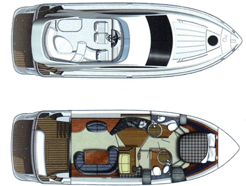 Master cabin forward has large walk-around double berth , wardrobes, cupboards, chest of drawers, mirror and en-suite access to the heads compartment