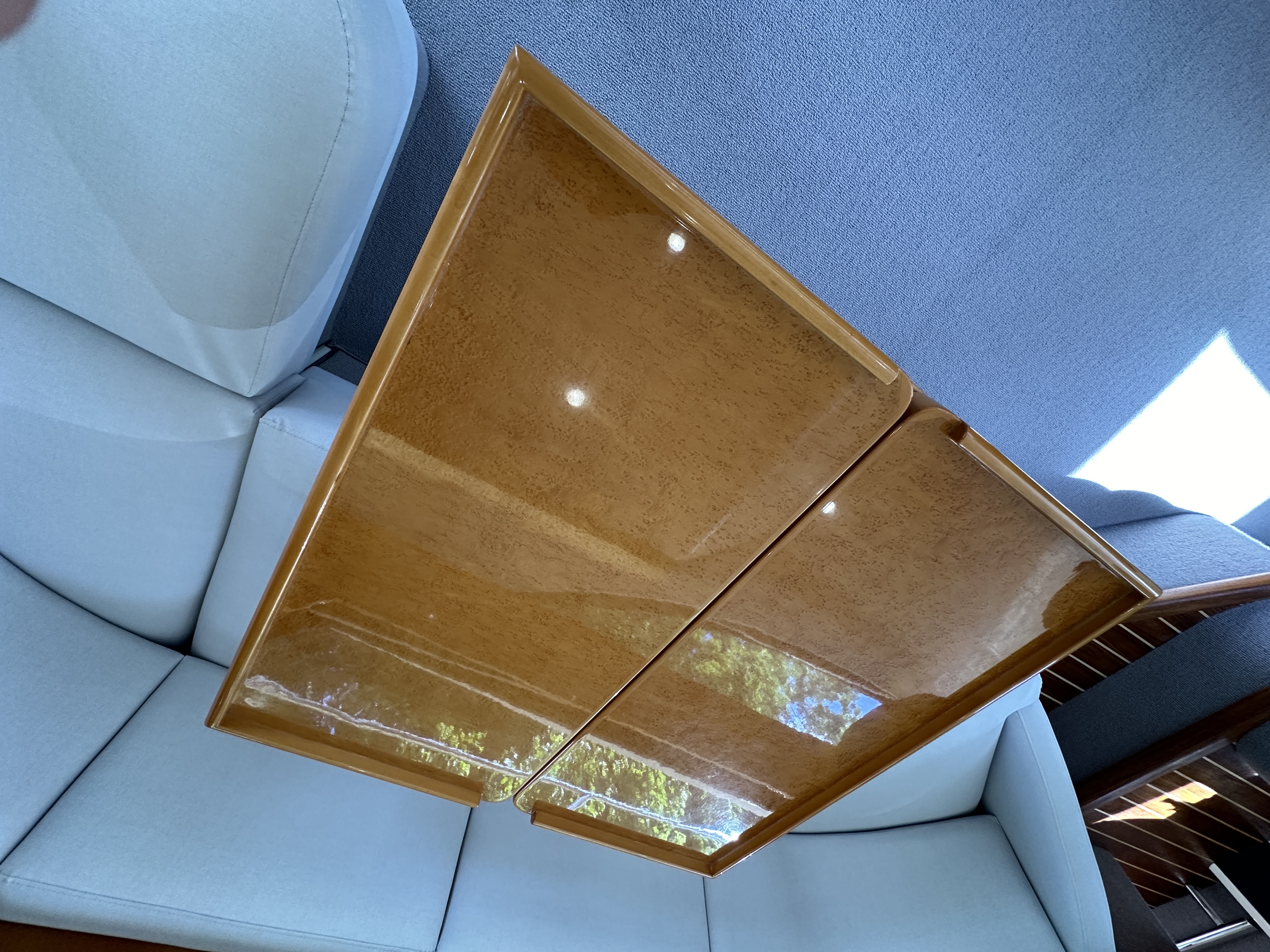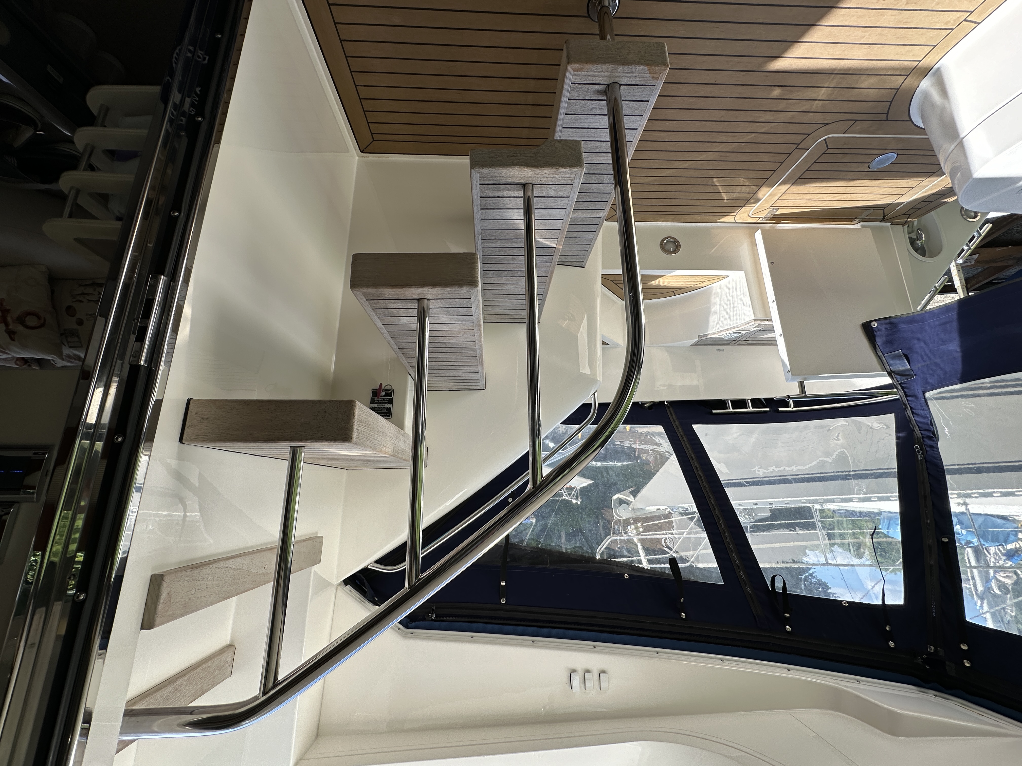 Teak-laid bathing platform, cockpit and fly-bridge steps.