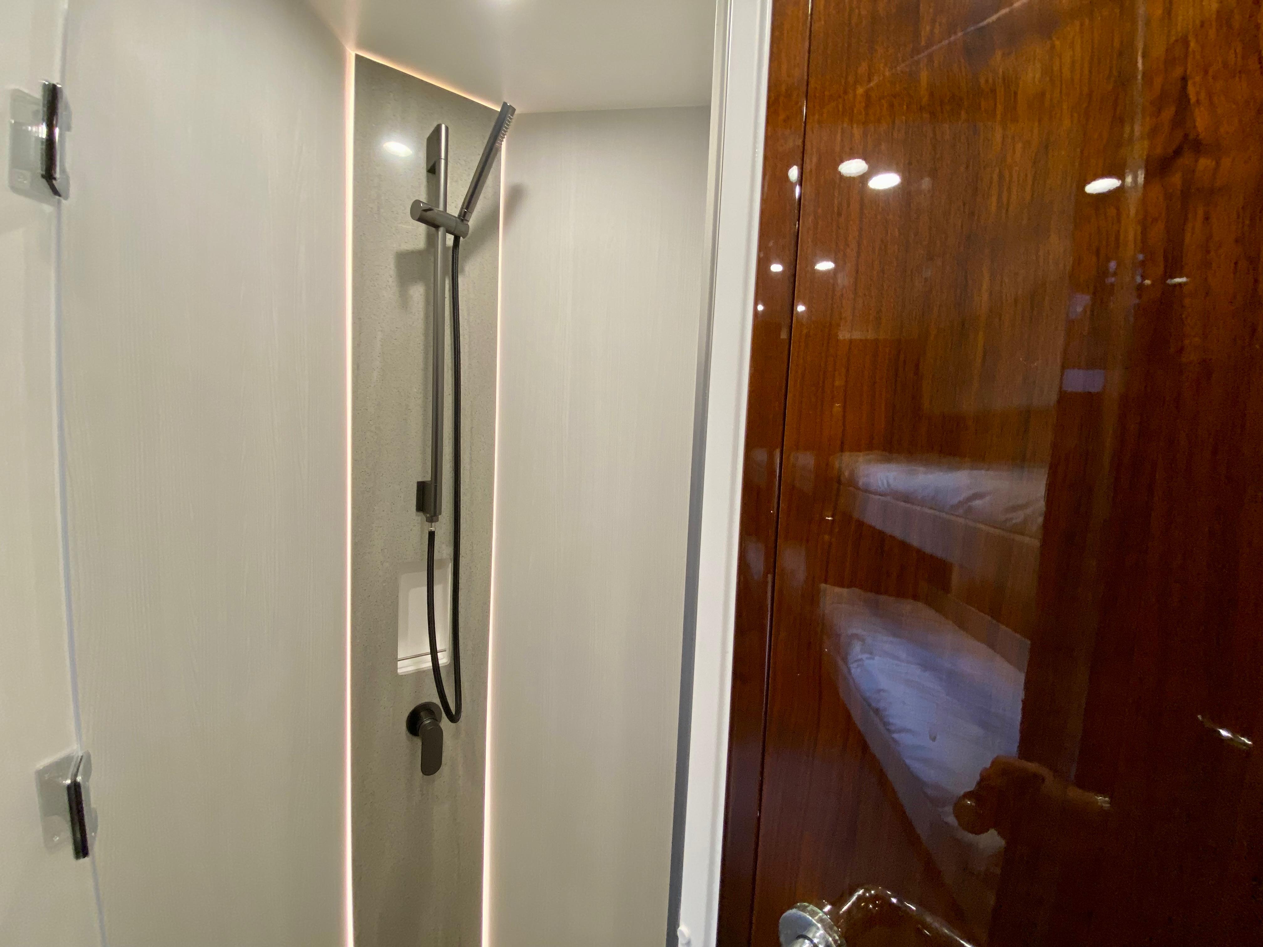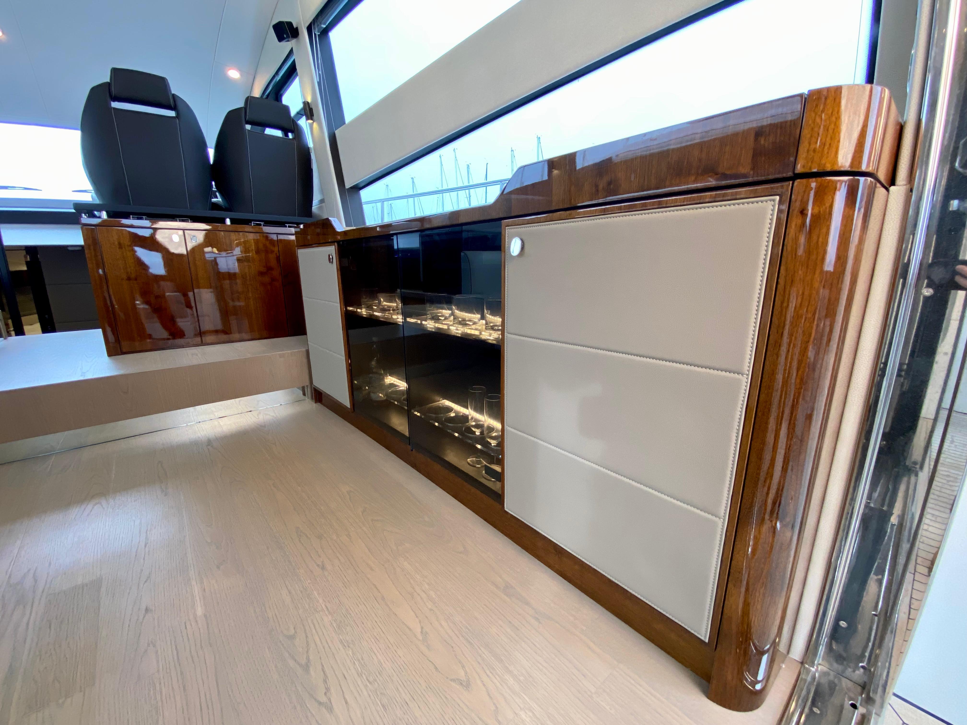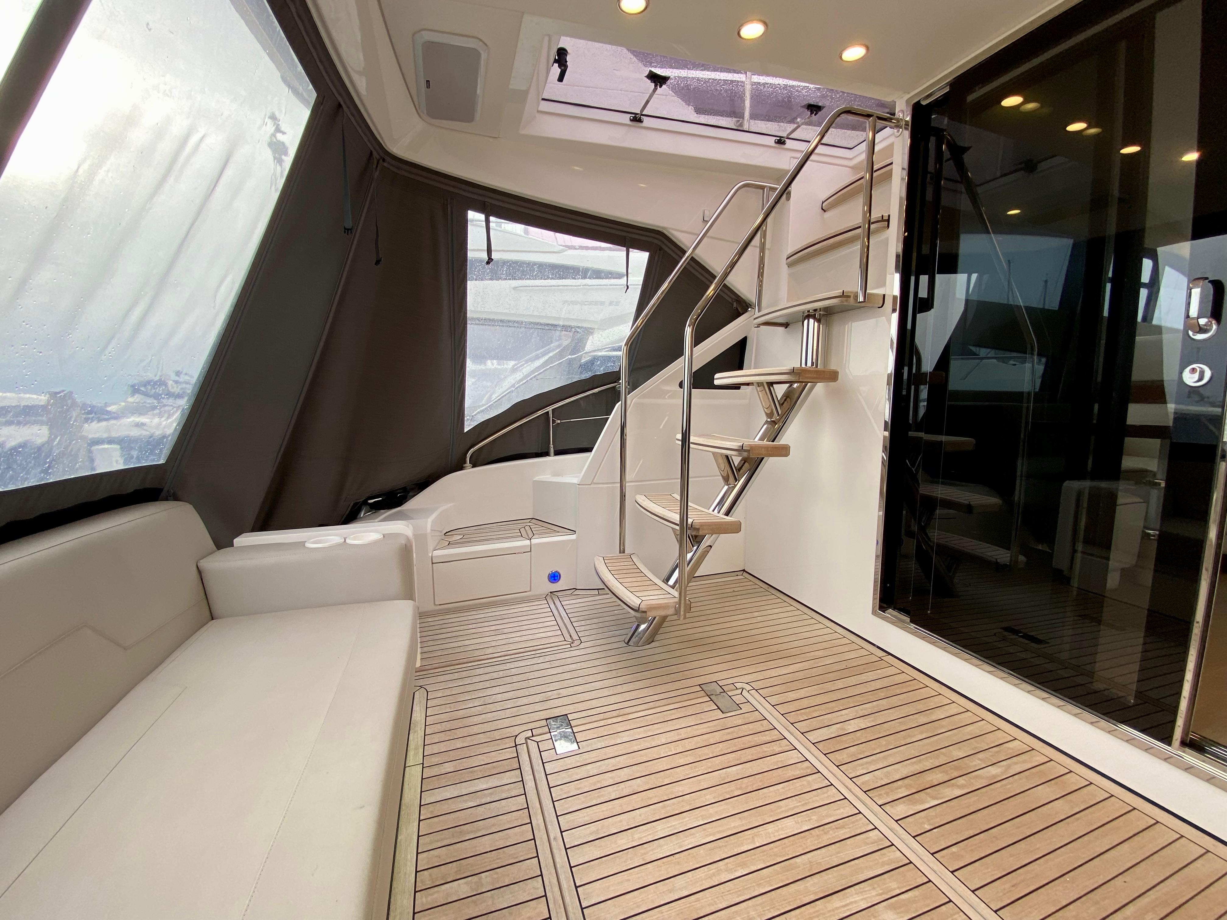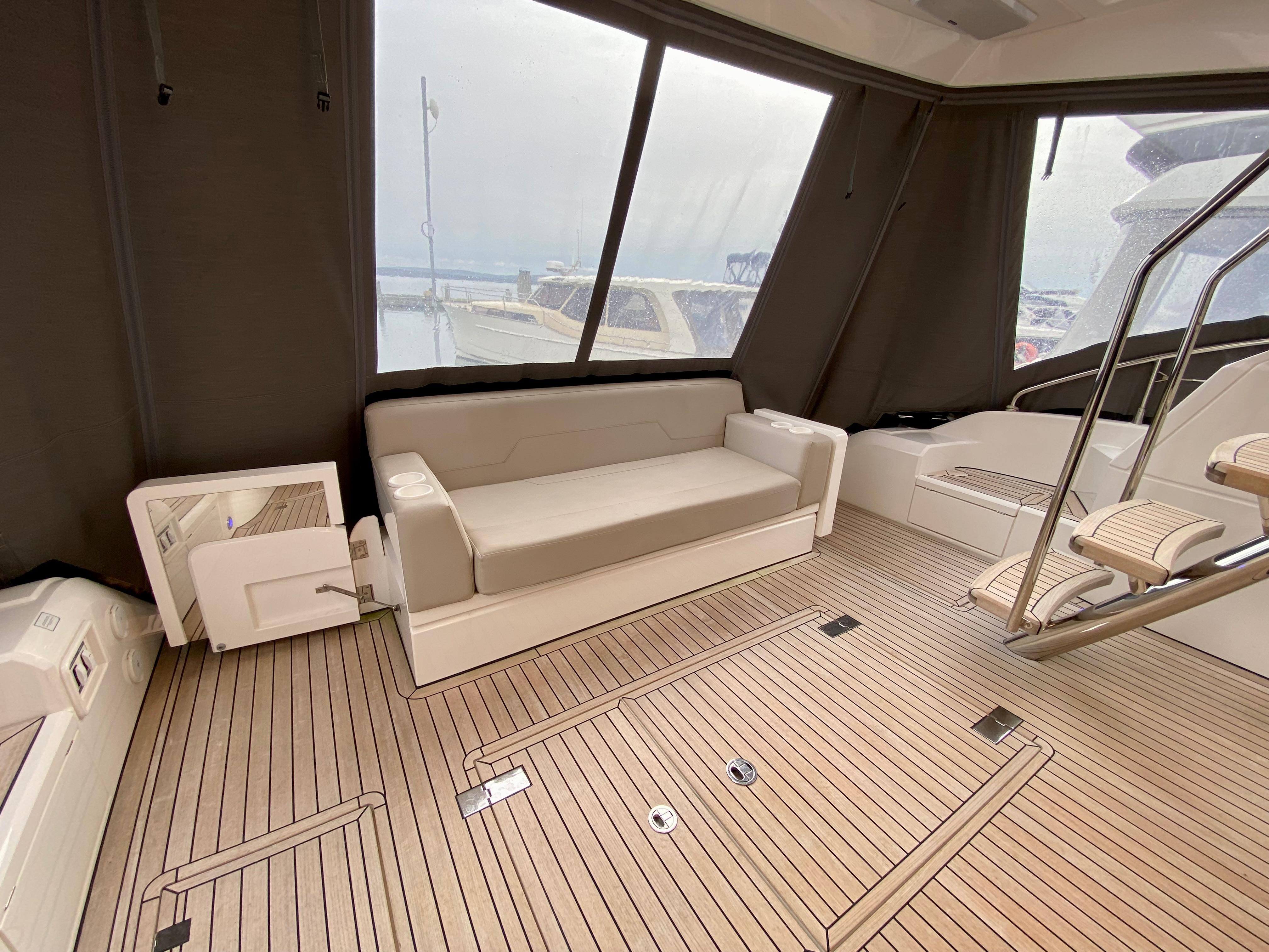 Teak-laid decks in cockpit, flybridge and bathing platform