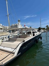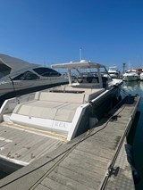 Extras: Shrink wrap transport protection, antifouling (€7,750), shore power with charger, septic tank with electric pump, windshield washer, water ski pole (x2), mooring kit (anchor, 4 ropes, 4 fenders w/ Windy socks), dashboard with Nextel finish, opening hatch in aft cabin, cover sets (instruments & harbour covers HH Lightex), scatter cushion set (SR44)
