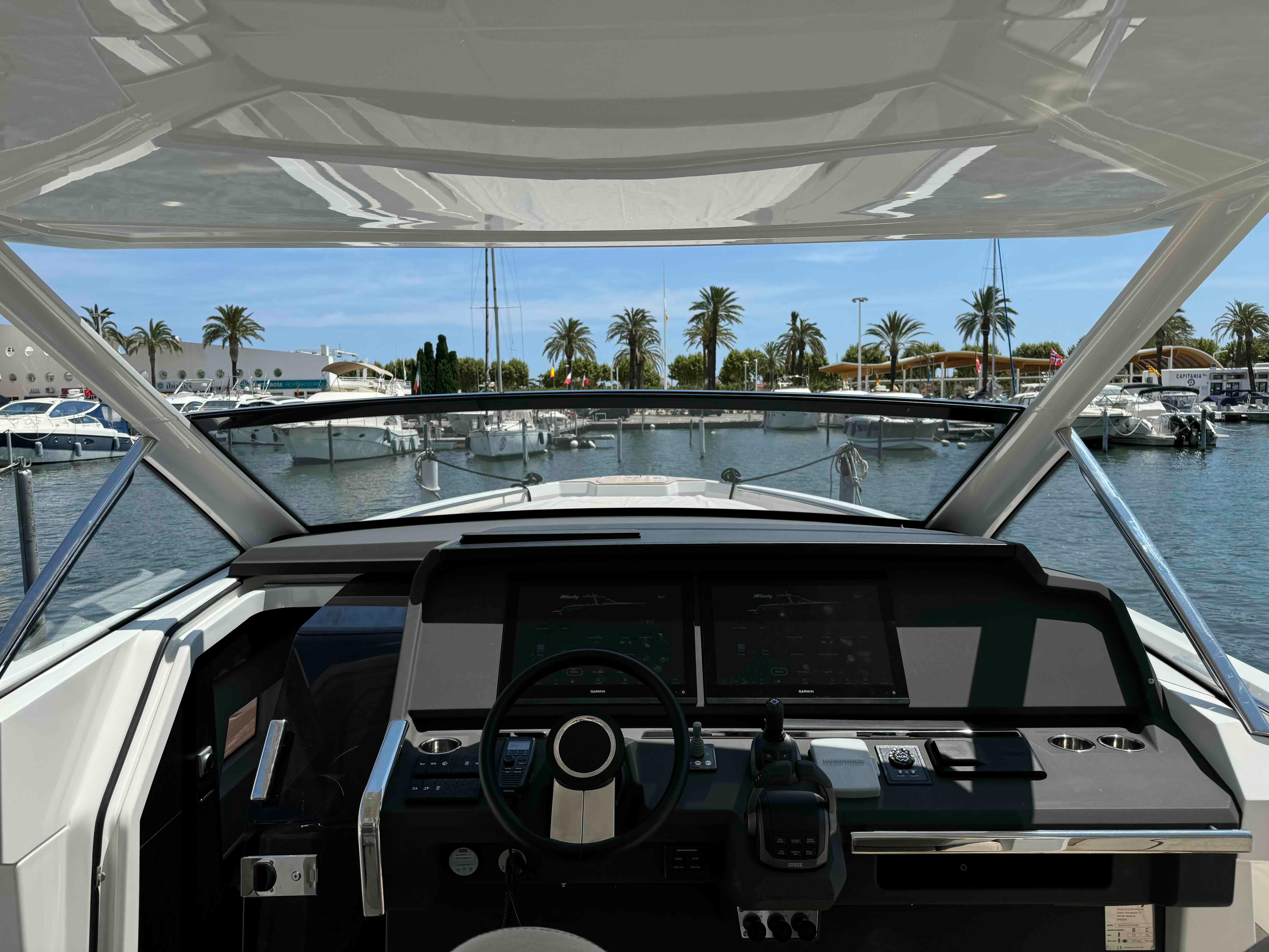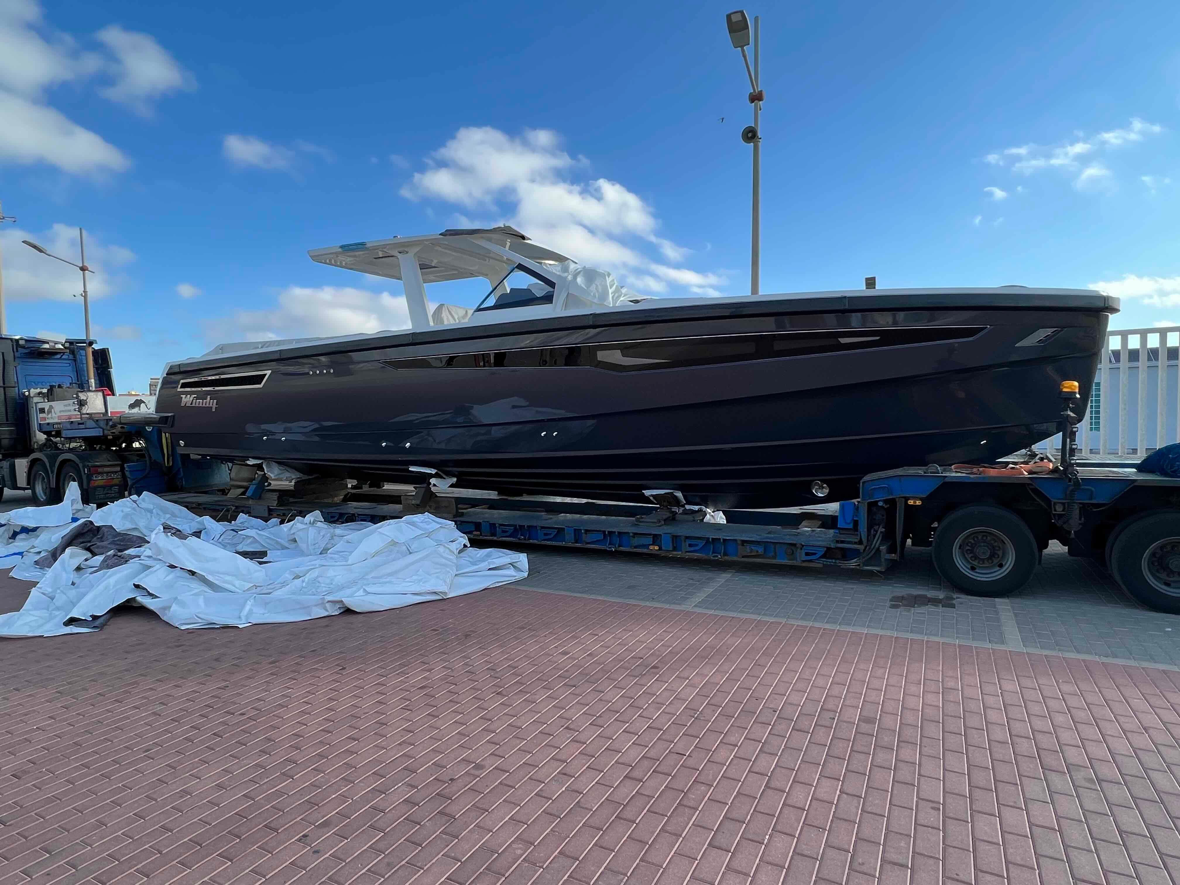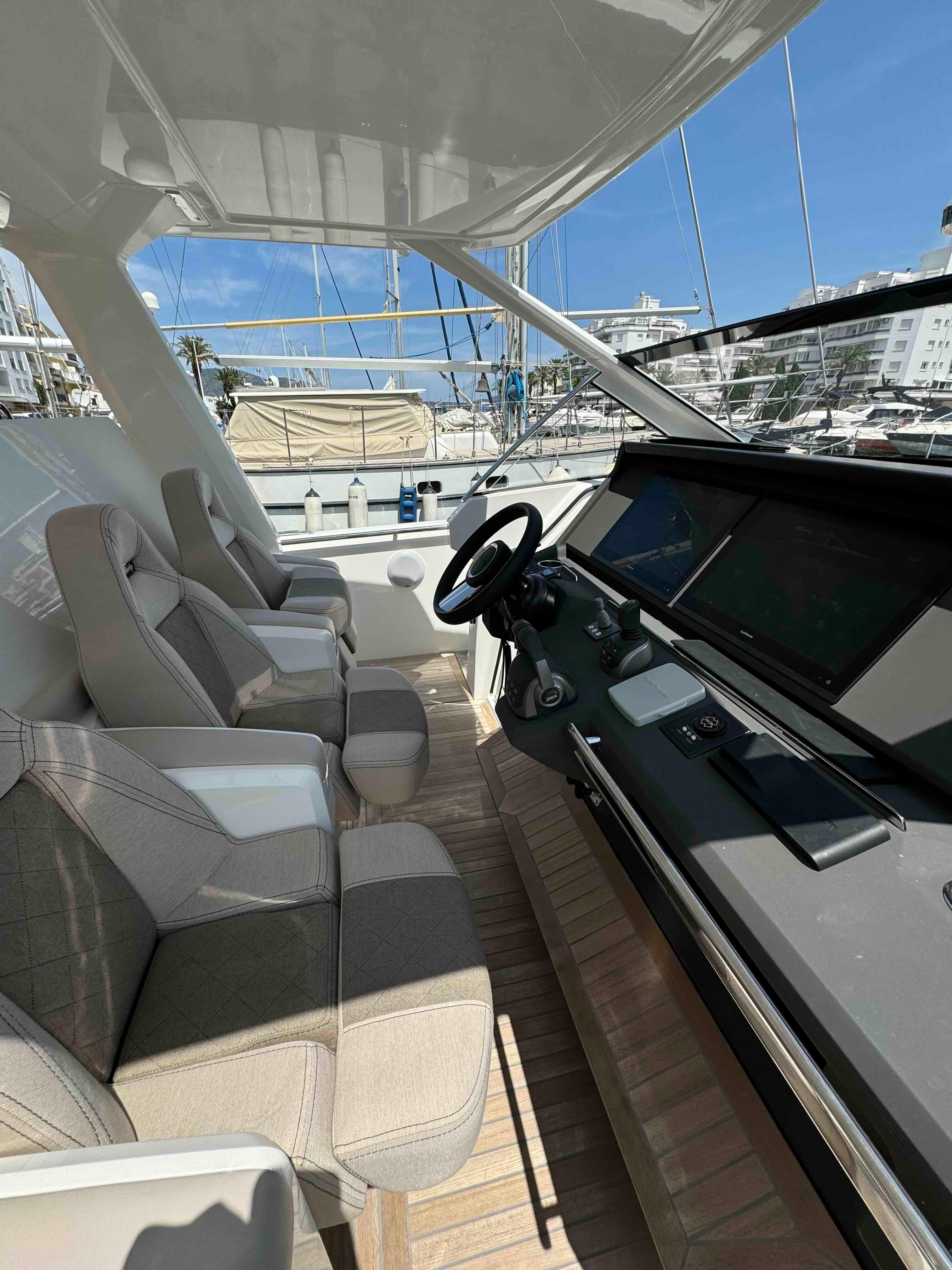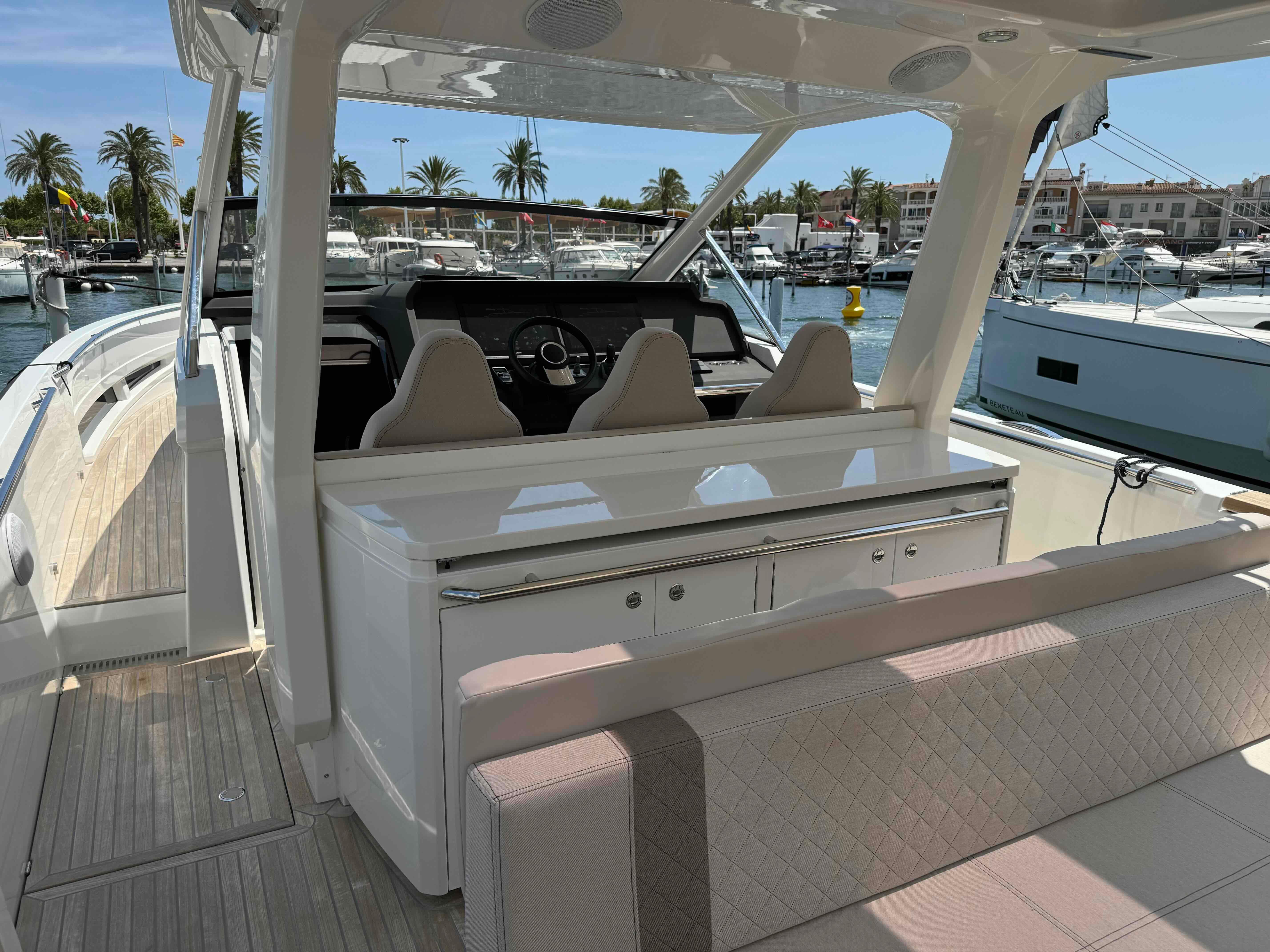 Extras: Shrink wrap transport protection, antifouling (€7,750), shore power with charger, septic tank with electric pump, windshield washer, water ski pole (x2), mooring kit (anchor, 4 ropes, 4 fenders w/ Windy socks), dashboard with Nextel finish, opening hatch in aft cabin, cover sets (instruments & harbour covers HH Lightex), scatter cushion set (SR44)