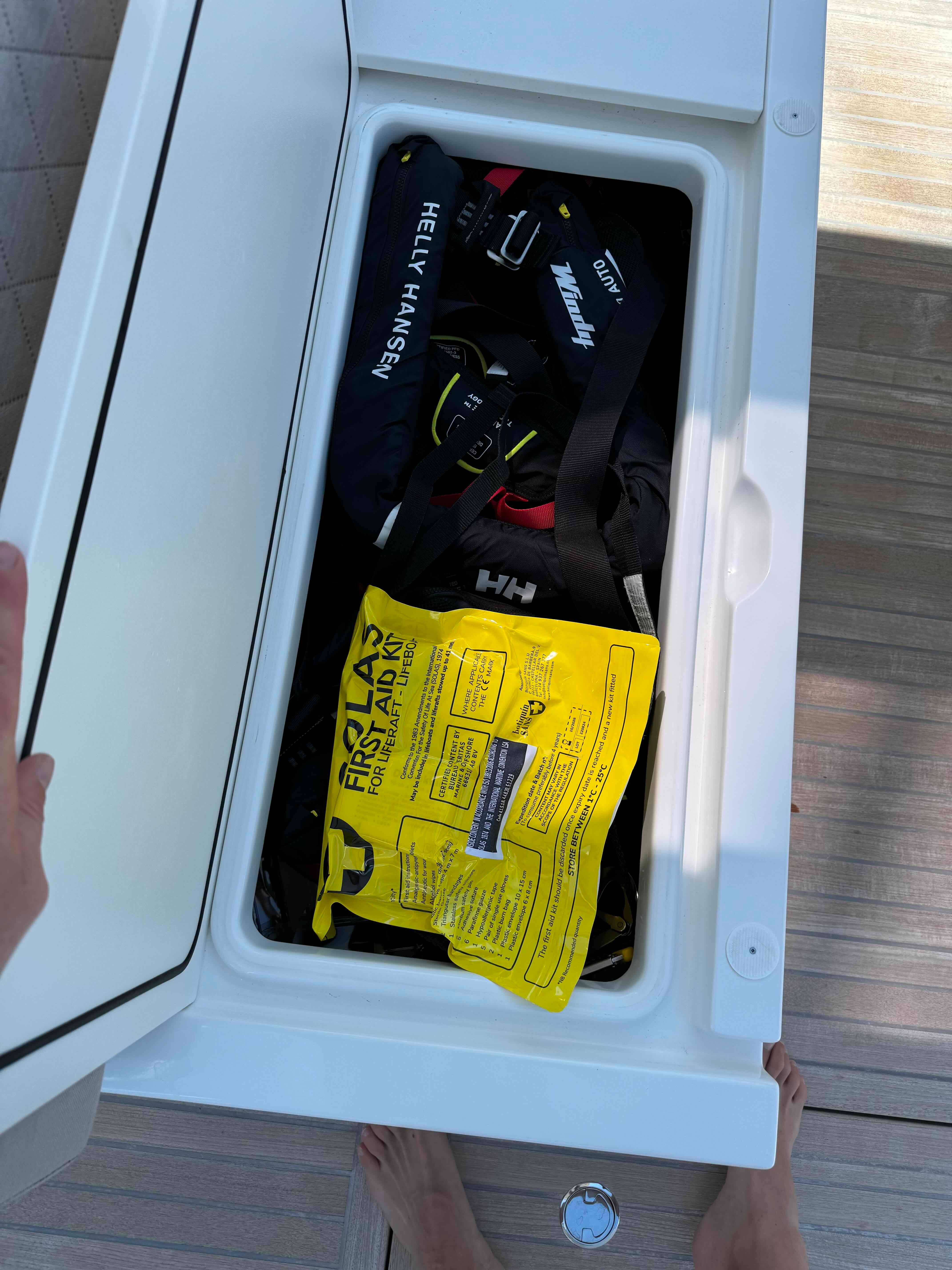 Cooling & Air: Air Conditioning 20,000 BTU, extra cold storage under cockpit floor, 3x fridges (cockpit, saloon, cold storage), Icemaker