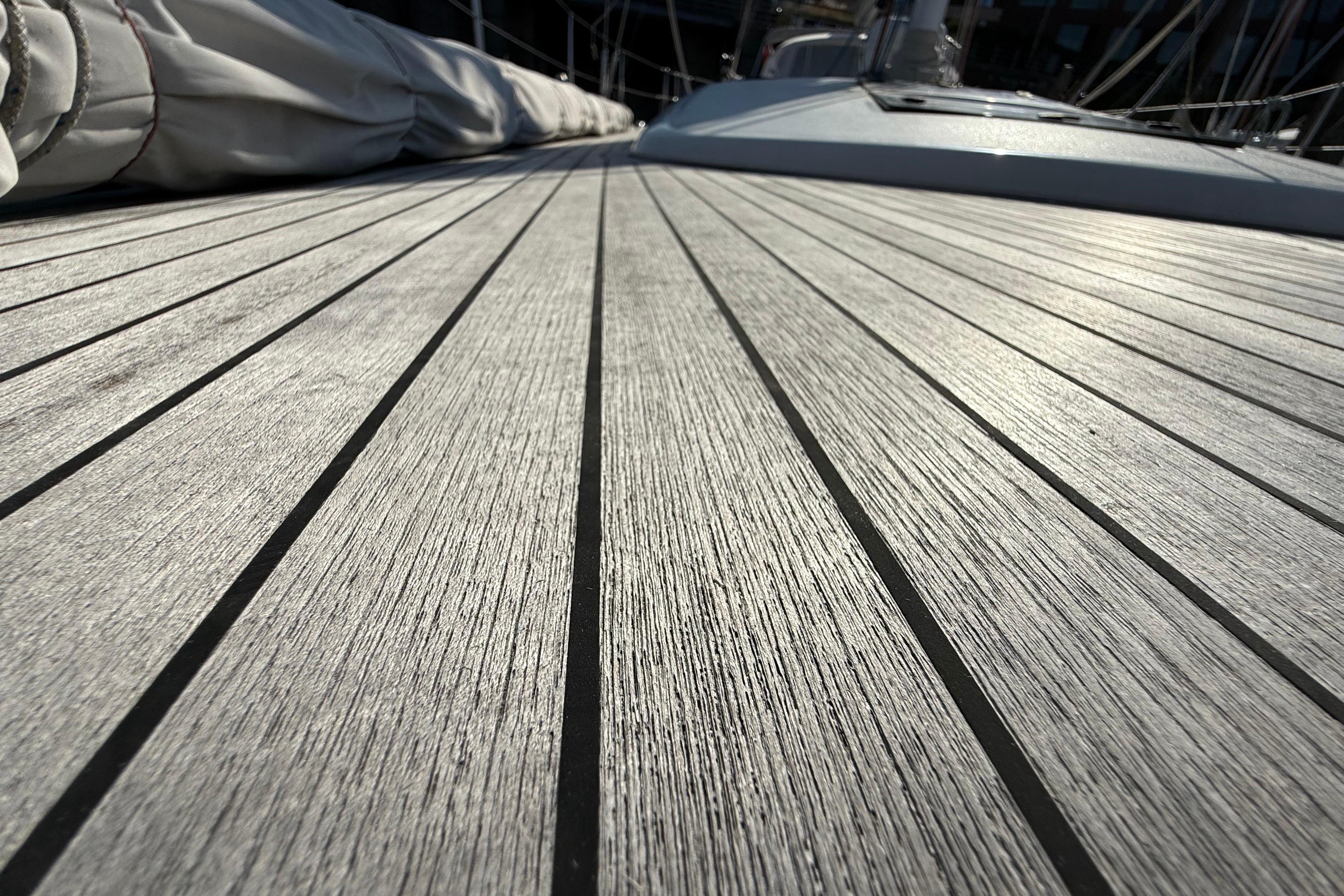 Deck construction: GRP cladded with teak