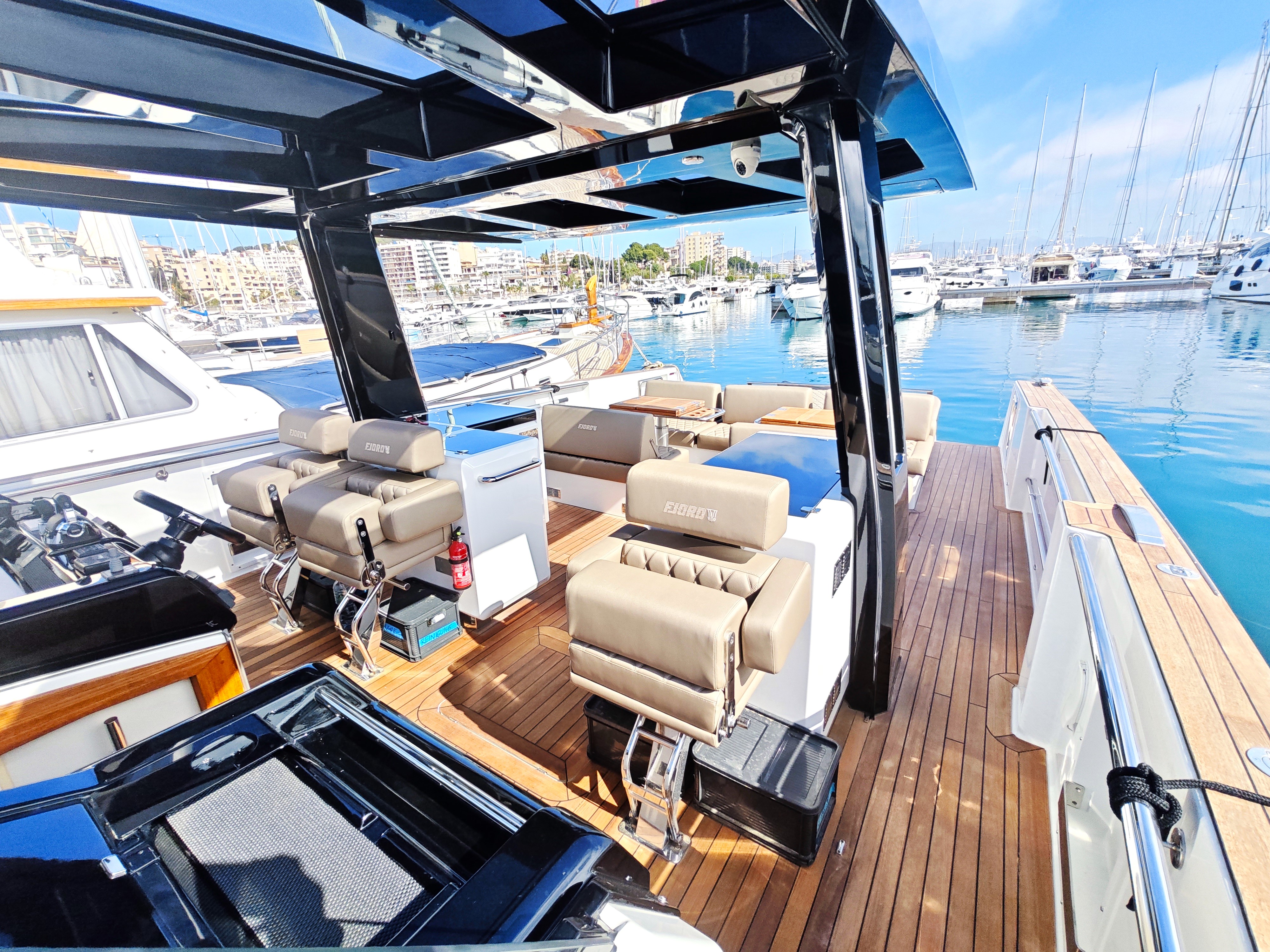 Fjord 52 Open - with berth available to take over in Club de Mar, right in the heart of Palma! This is a great example of a tender garage version of this very popular Fjord 52 Open. Well looked after by its current owner and great spec including air conditioning, hydraulic platform, generator, etc. Part exchange and finance available.