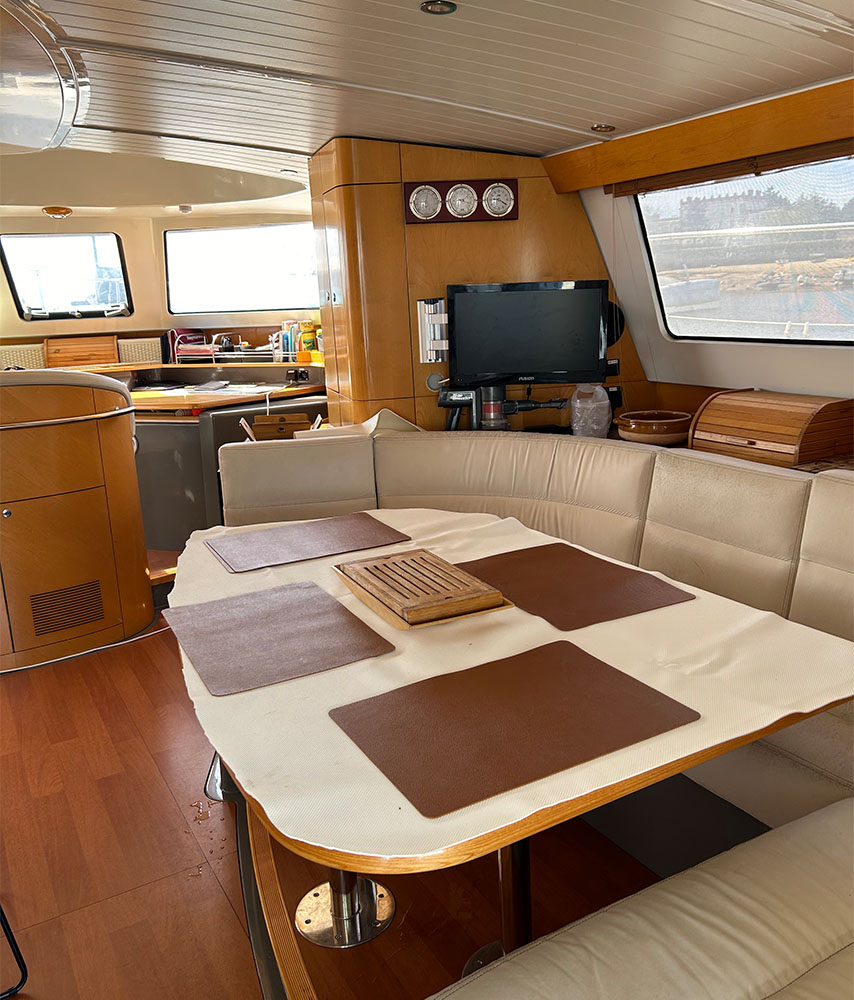 A vendre Fountaine Pajot Cumberland 44 de 2007 avec version propriétaire, 3 cabines, 3 salles d'eau. Il est entièrement équipé avec le groupe électrogène 9.5 KVA, le système de chauffage, le dessalinisateur Aquabase 90 L/H, les moteurs 310 Hp avec un service complet fait en 2024.