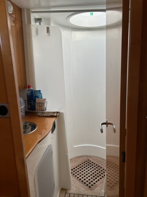 Bathing ladder + Shower (hot/cold) on bathing platform on port side