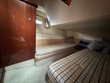 Guest cabin to starboard with two single berths, hanging locker & mirror.