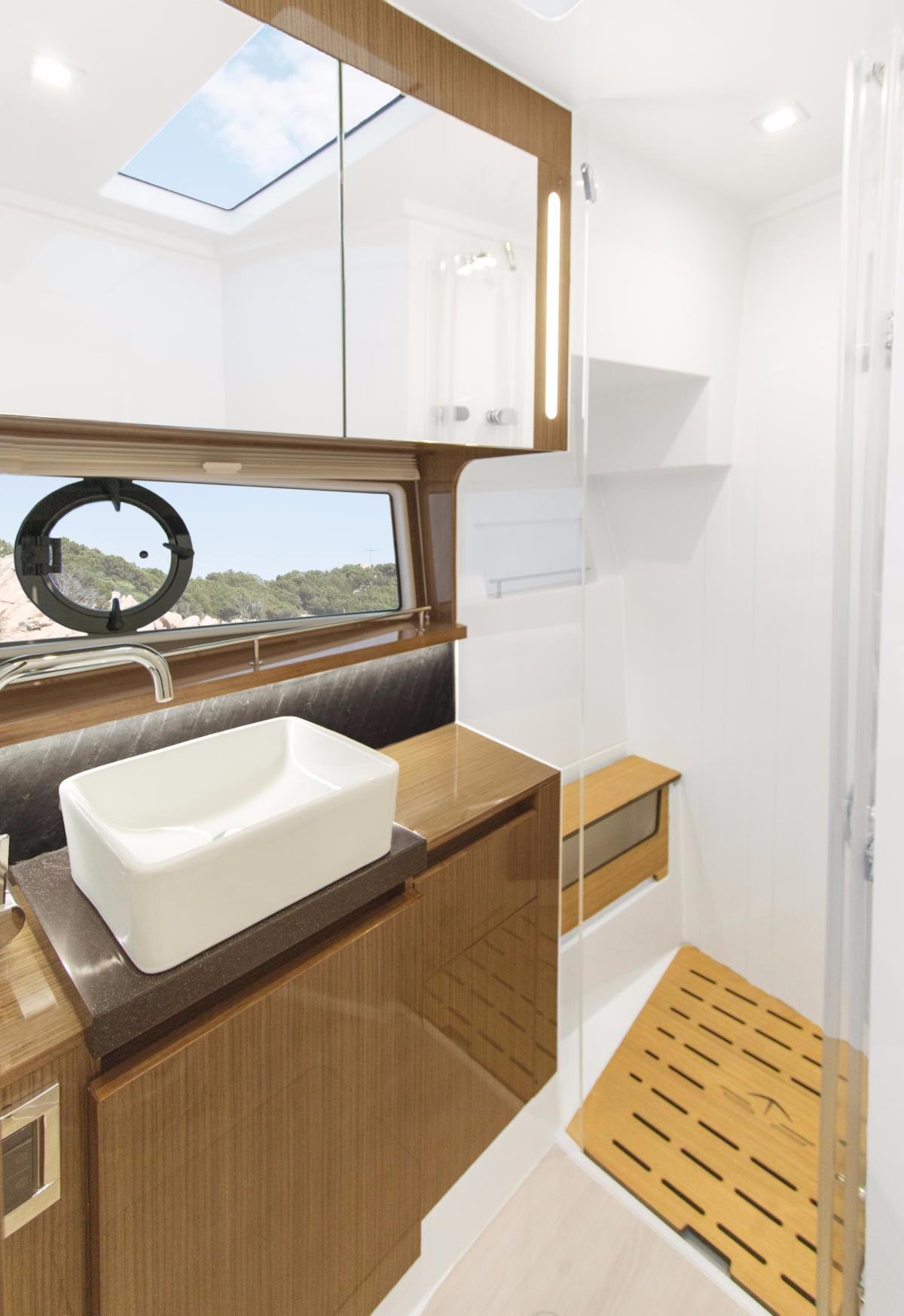 The standard layout of the Sealine C430 includes the master cabin midship and a VIP cabin in the bow area. On request, even three full double cabins are possible – perfect for cruising with friends or the whole family.
